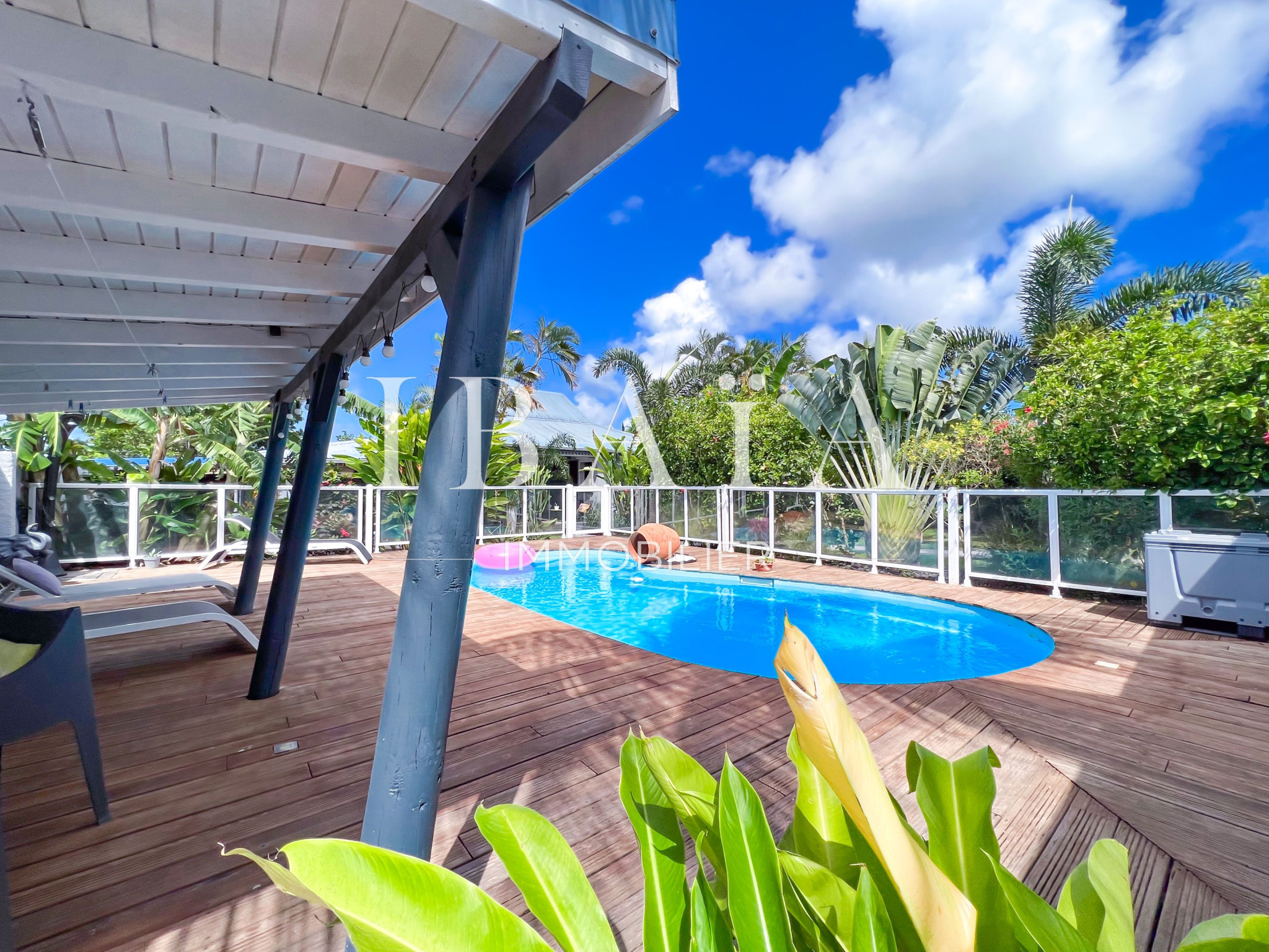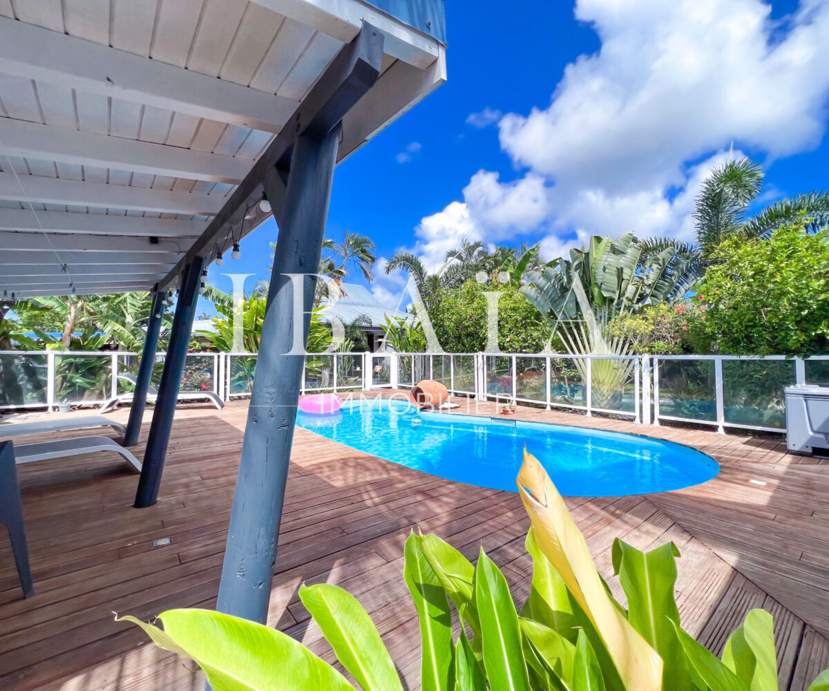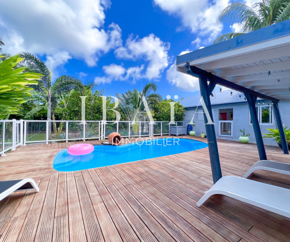 Située à égale distance entre Saint-François, Sainte-Anne et le Moule, dans une résidence bien entretenue, cette jolie villa avec piscine vous séduira par son jardin luxuriant ainsi que par son appartement 2 pièces en parfait état.