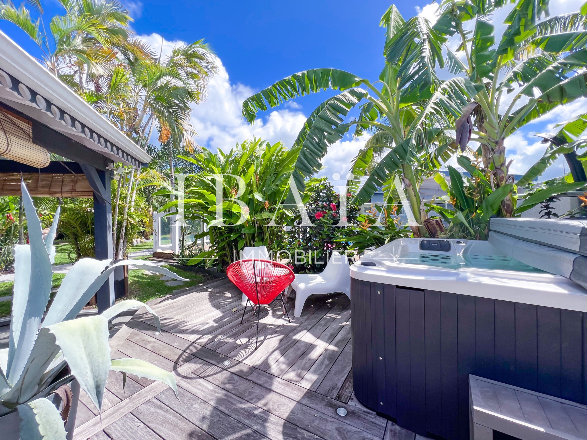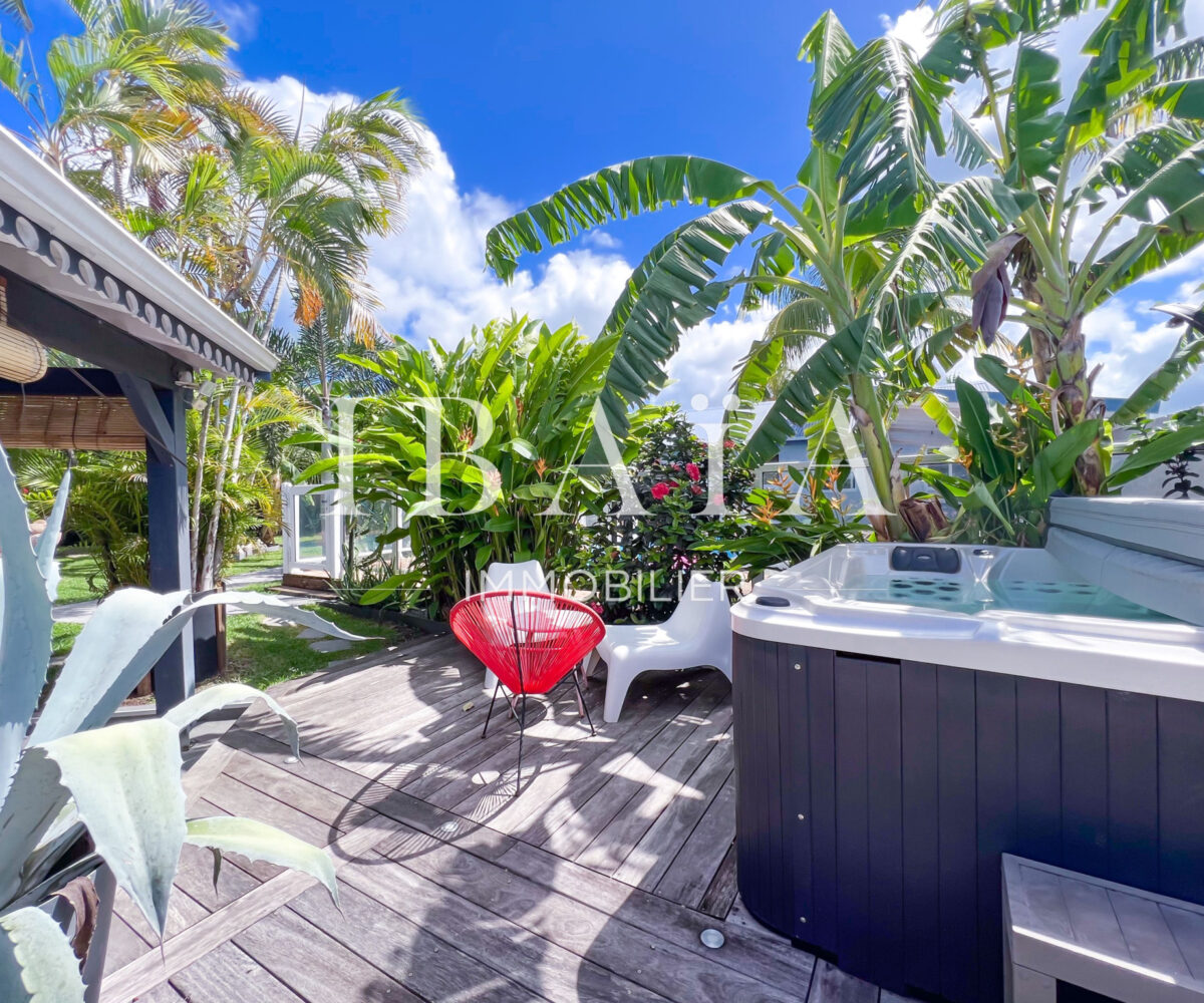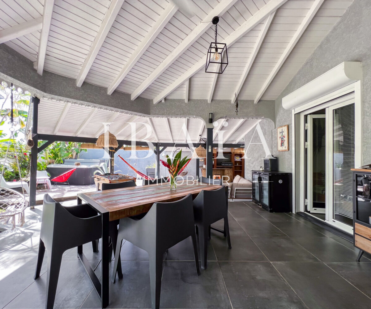 Située à égale distance entre Saint-François, Sainte-Anne et le Moule, dans une résidence bien entretenue, cette jolie villa avec piscine vous séduira par son jardin luxuriant ainsi que par son appartement 2 pièces en parfait état.
