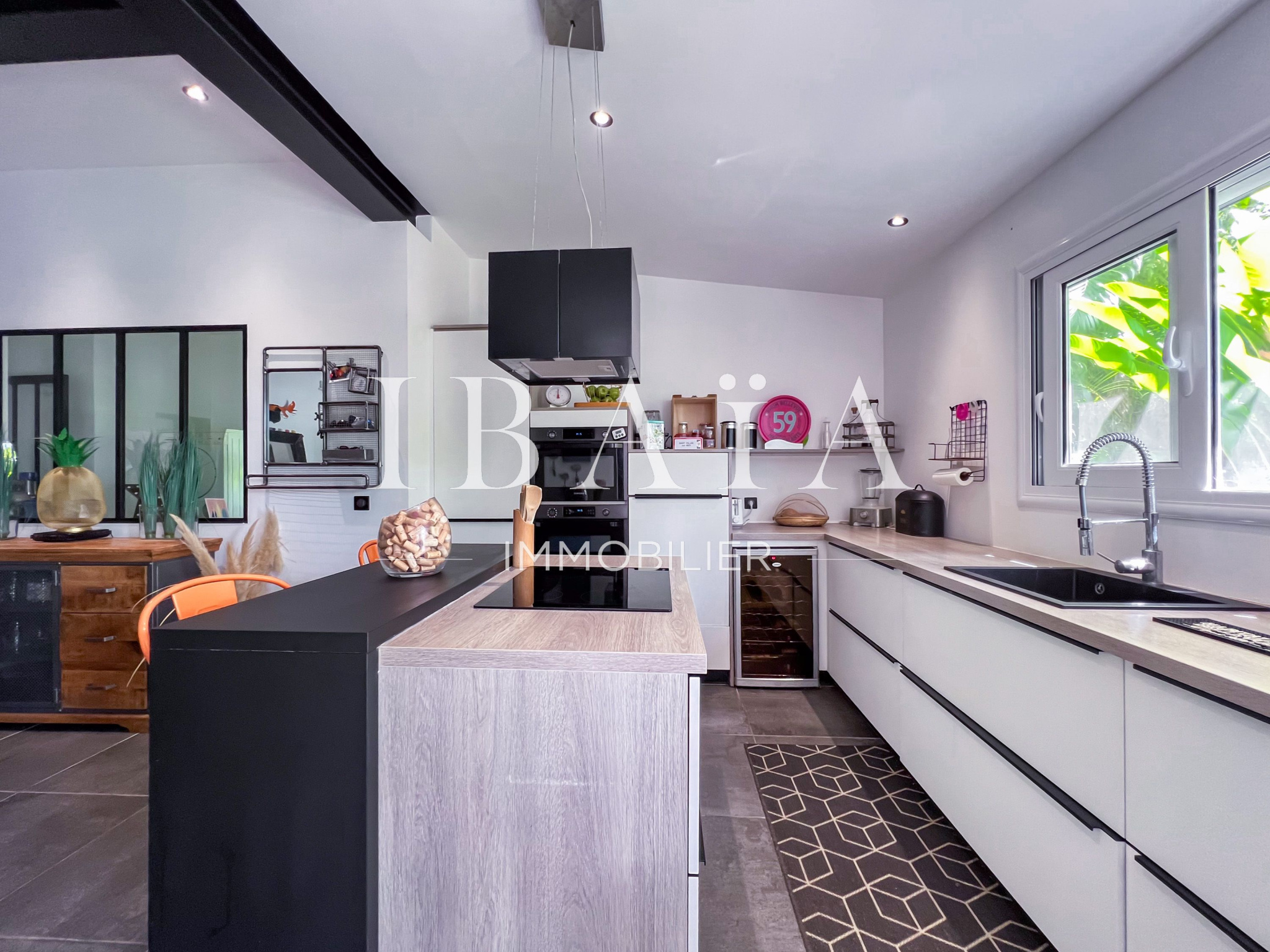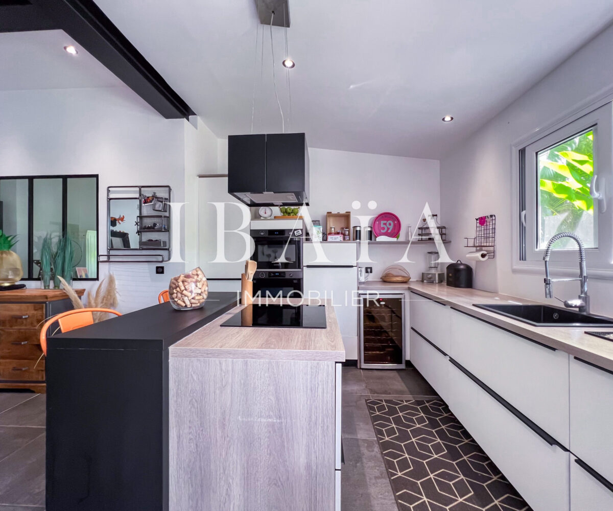– Une cuisine avec îlot bénéficiant d’une belle luminosité,