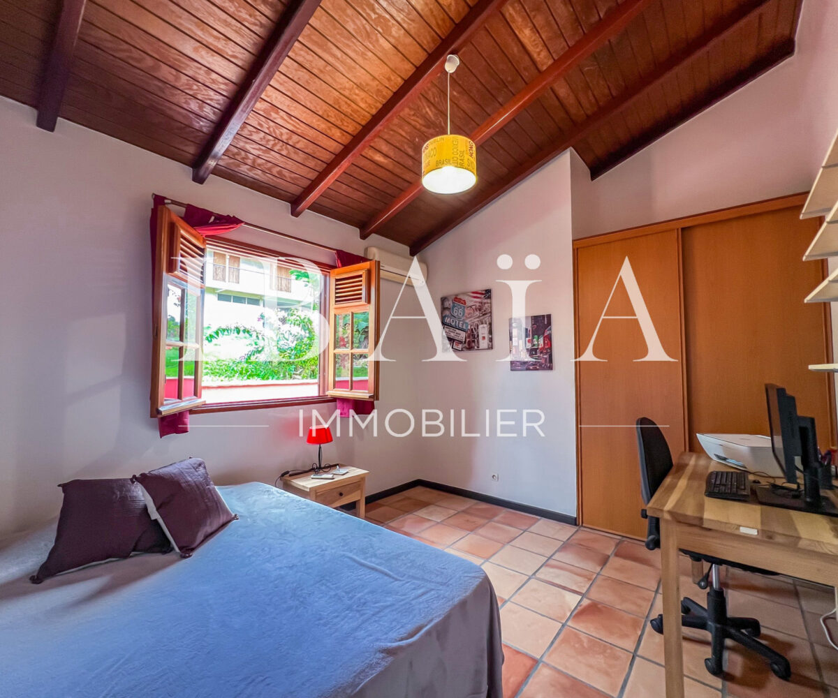 À quelques pas de l’école, du centre commercial de proximité et de Jarry, l’emplacement de cette villa en fait un bien rare sur le marché.