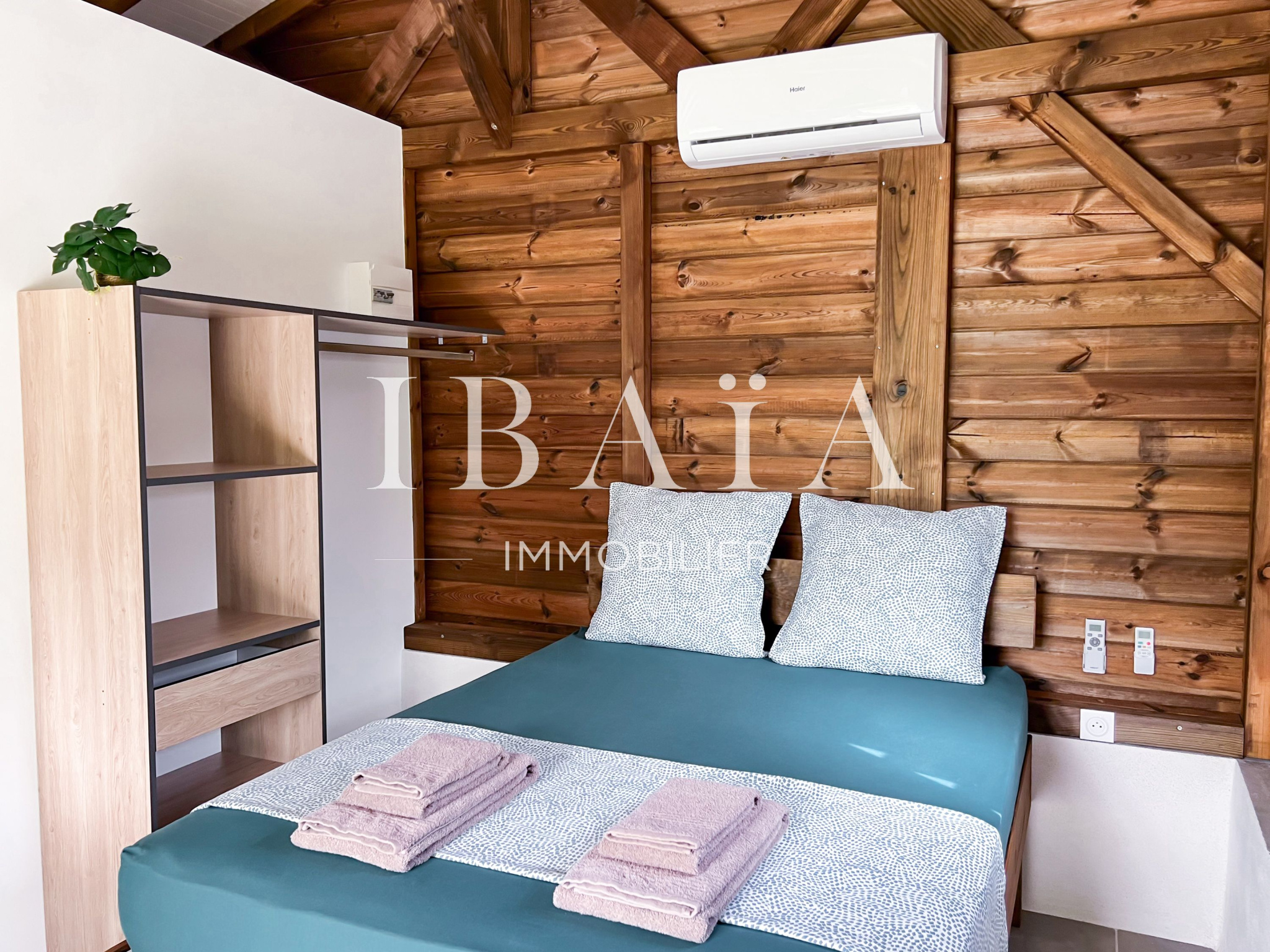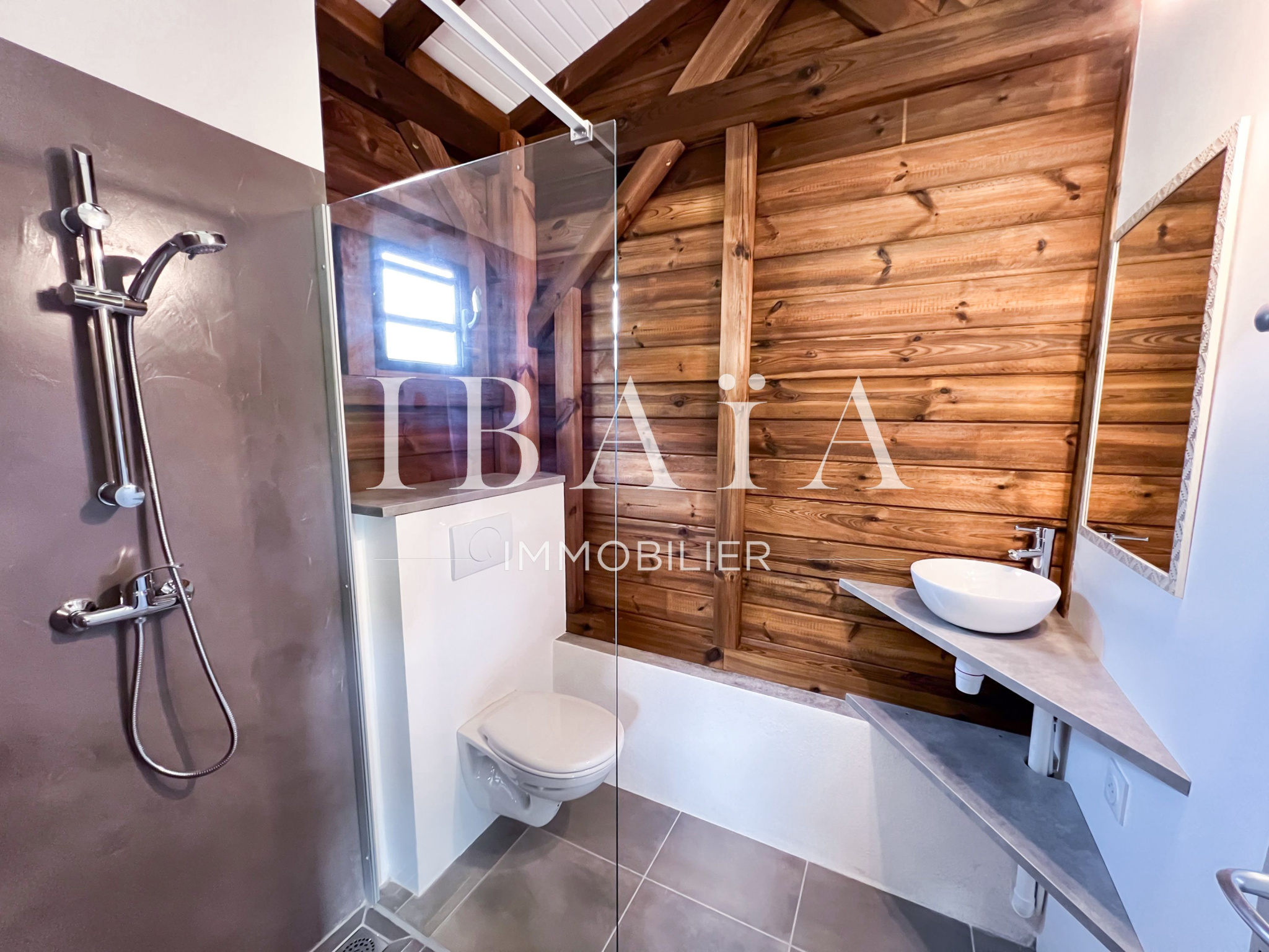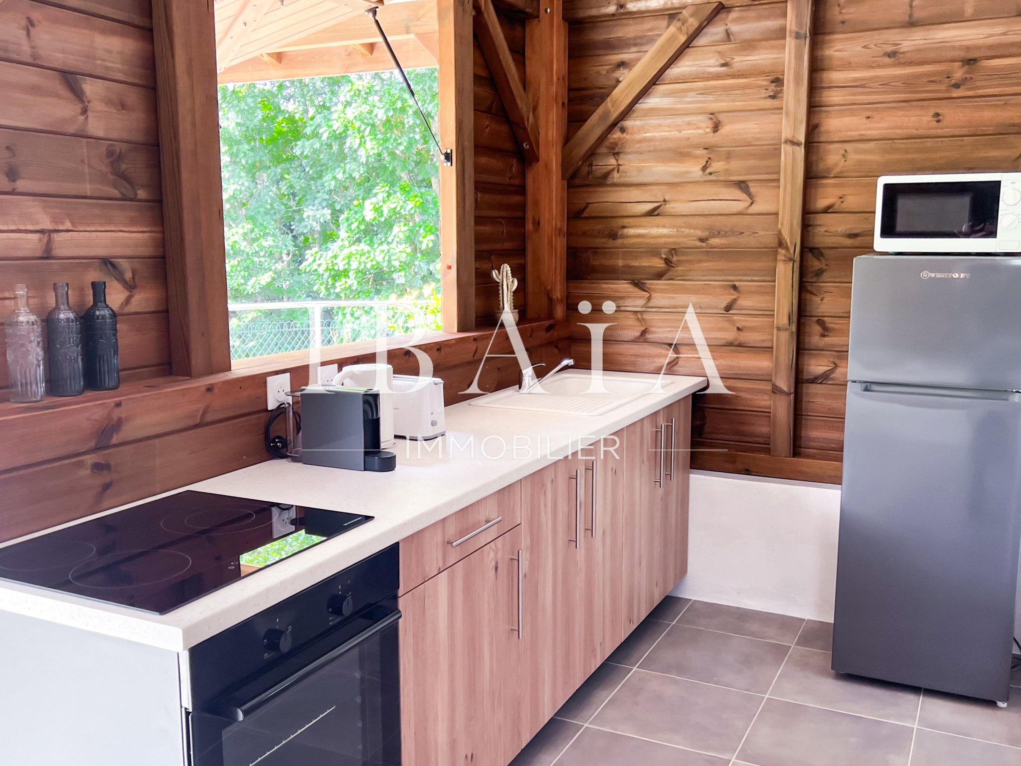 L’ensemble du bien a été conçu avec des matériaux de qualité, notamment le bois rouge, qui confère chaleur et authenticité à l’ensemble architectural.