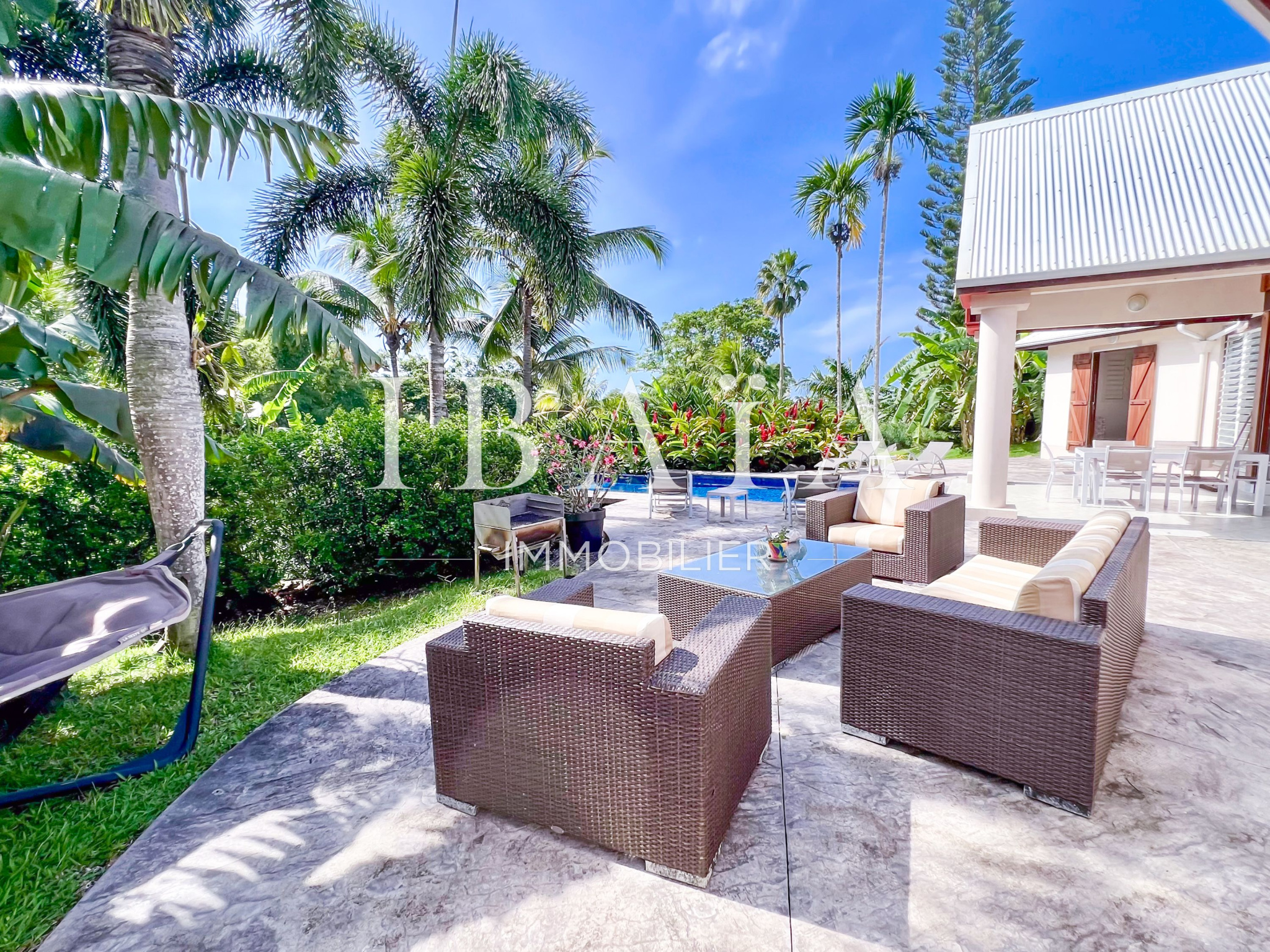Le jardin, véritable havre de paix, complète ce tableau idyllique, faisant de cette adresse un lieu de vie d’exception au coeur de l’île.