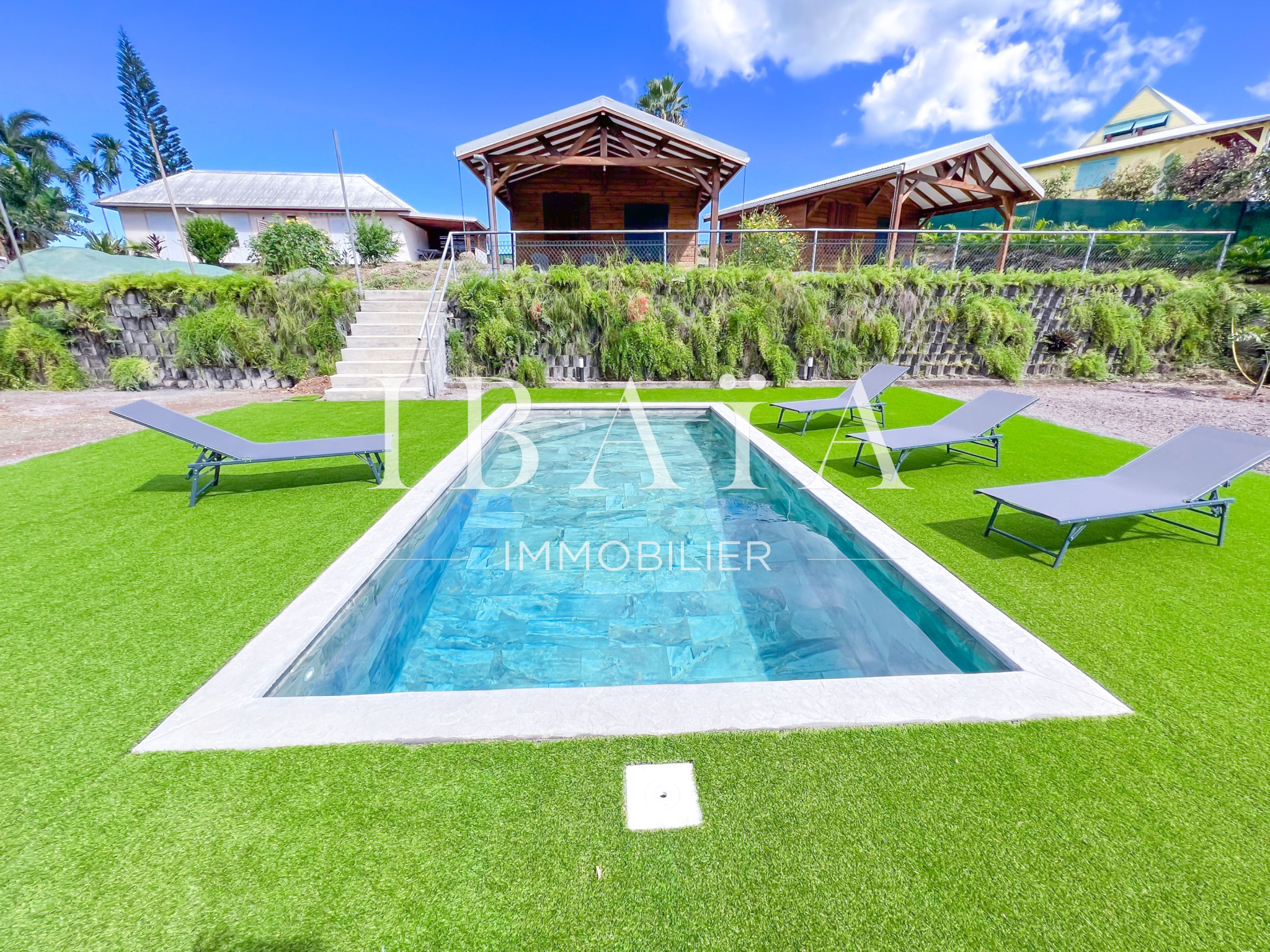 Sur un terrain clos d’environ 4 200 m2, la maison principale s’intègre harmonieusement dans un jardin luxuriant, garantissant intimité et sérénité.