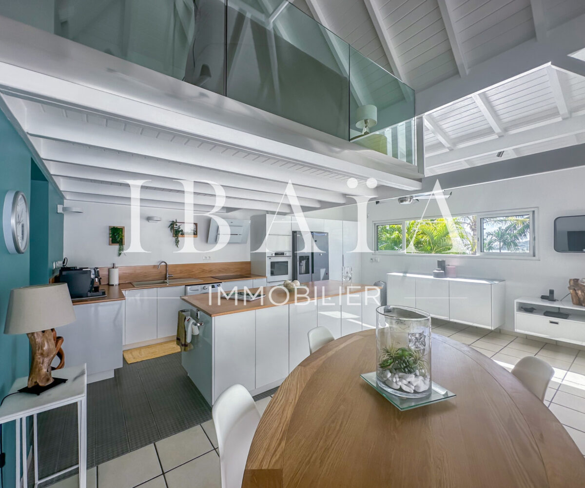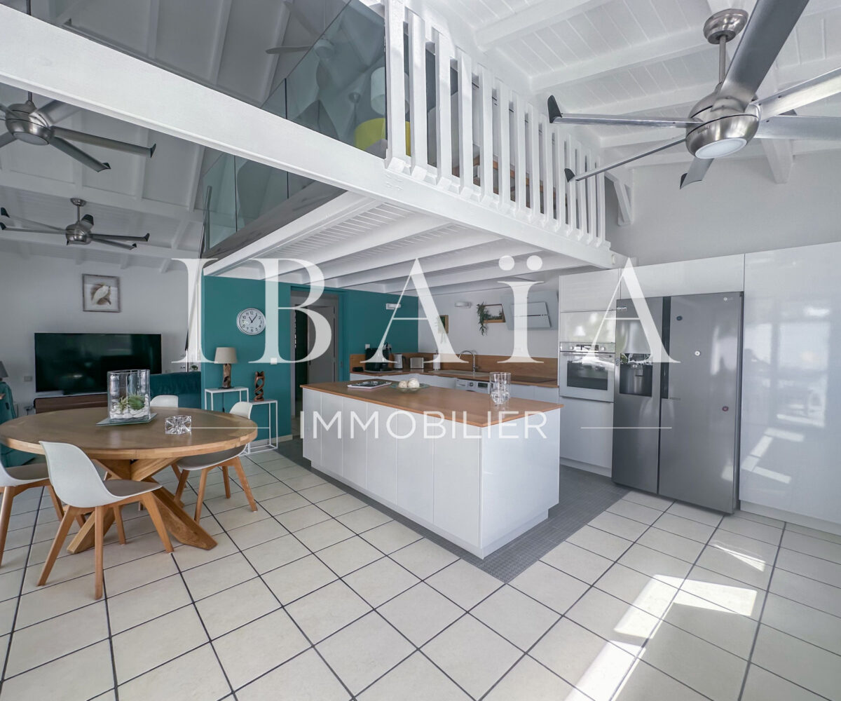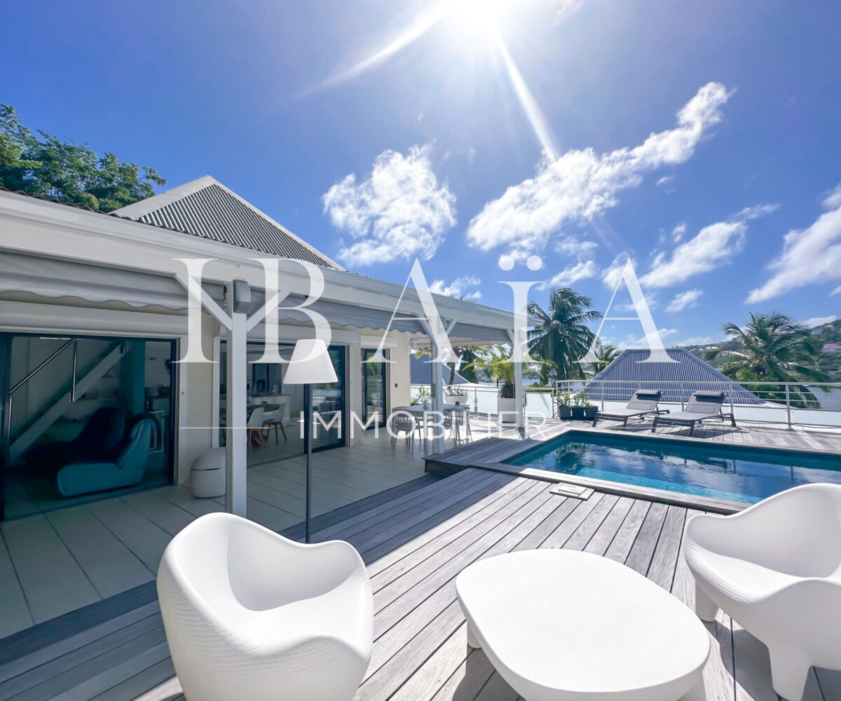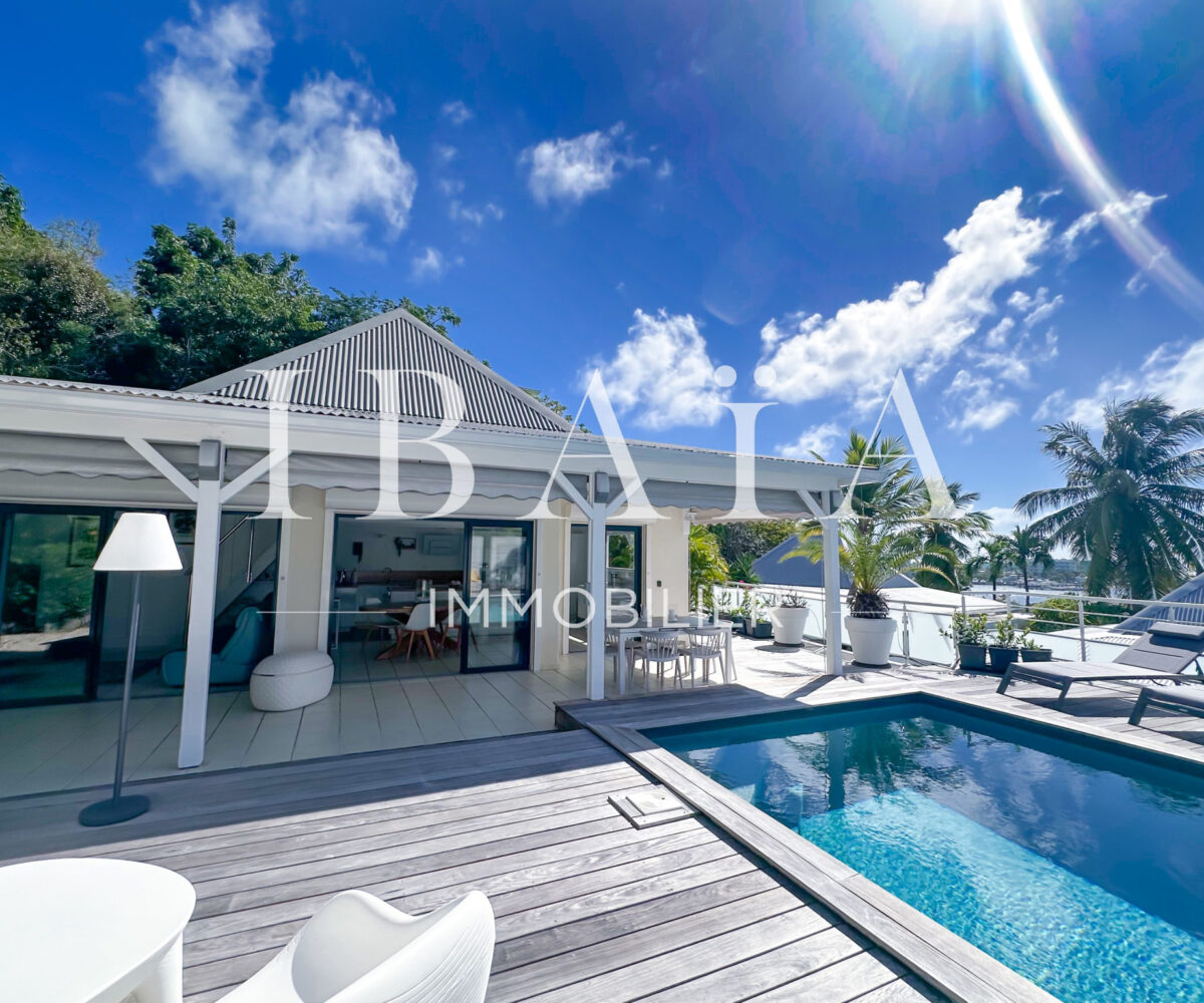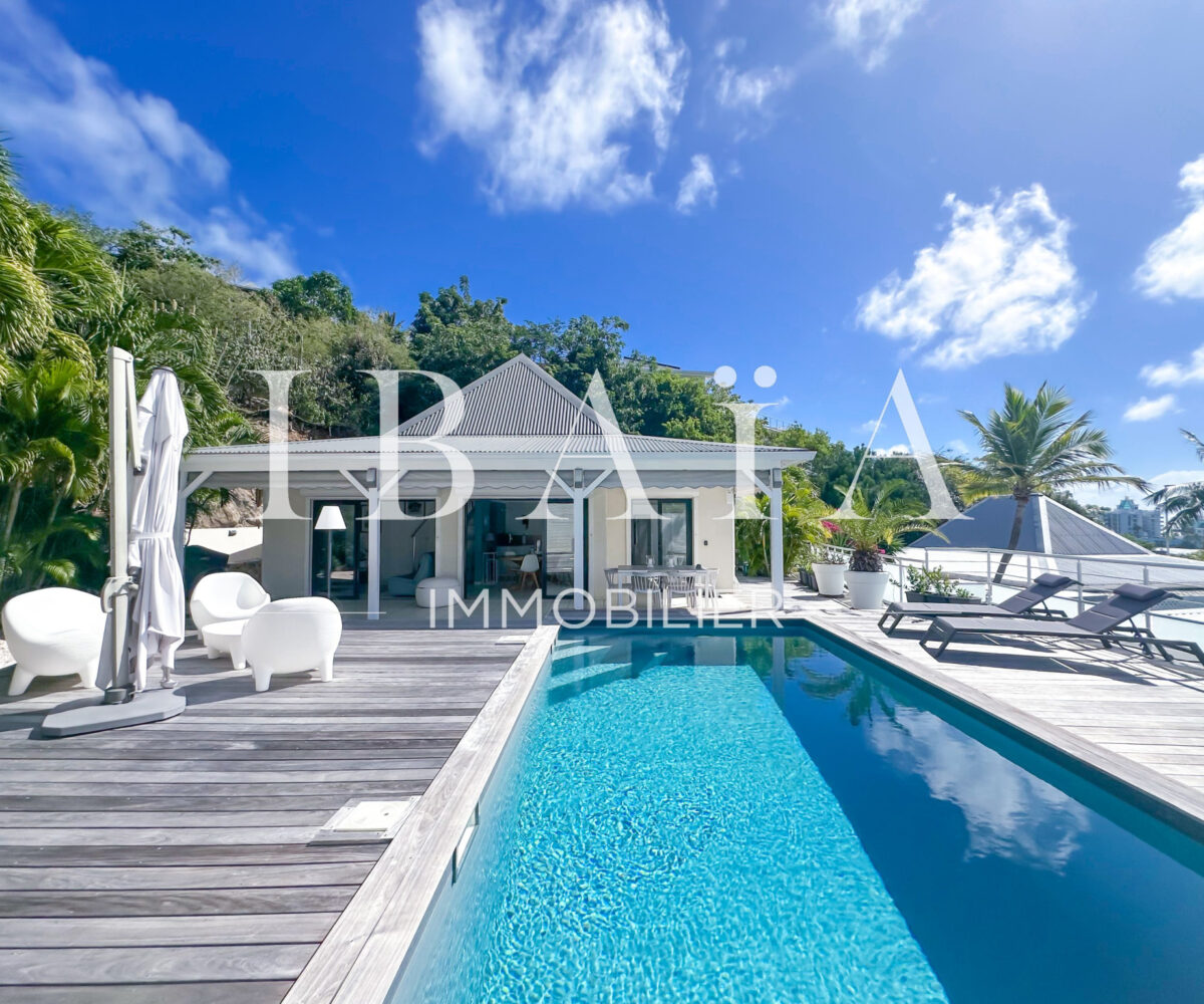 Idéalement située en partie française, à proximité immédiate de la partie hollandaise, la villa bénéficie d’une exposition remarquable face à la marina et offre une vue dégagée sur l’île de Saint-Barthélemy.