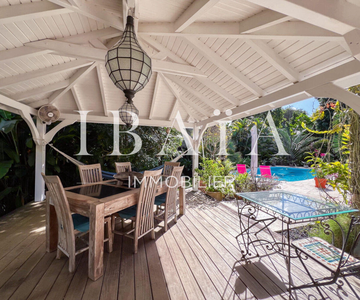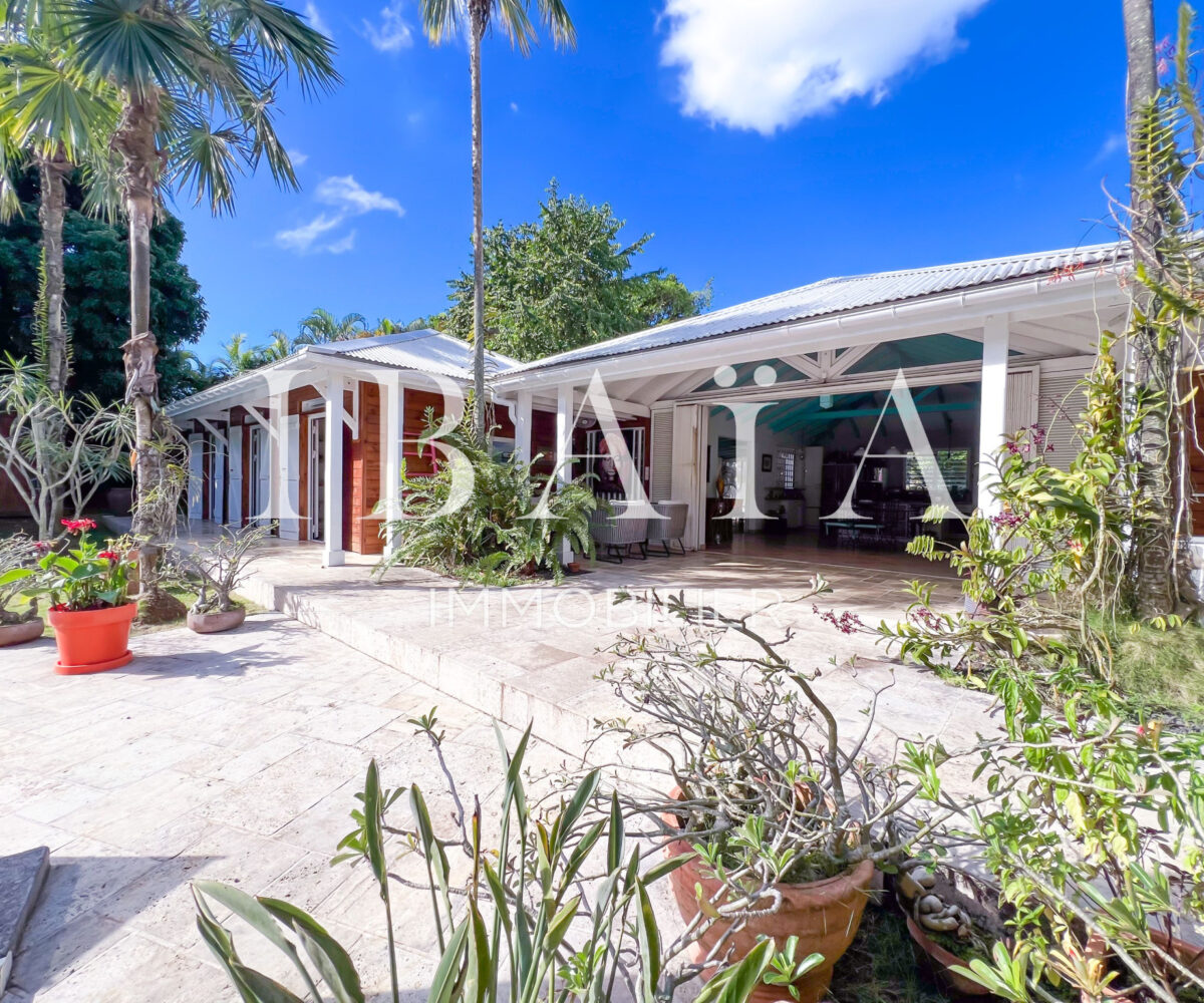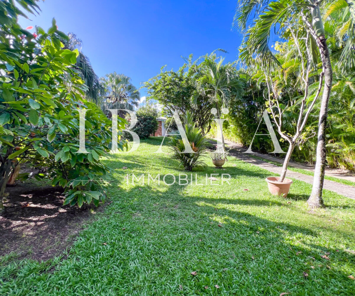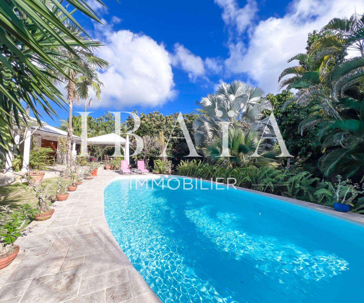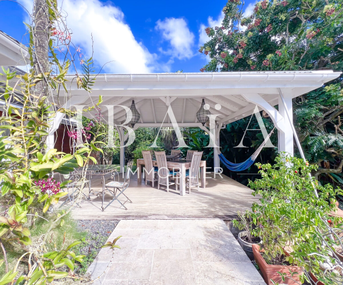Située sur un terrain arboré d’environ 1 800 m2, cette villa de plain-pied d’une superficie de 151 m2 (hors terrasses et carbet) est en parfait état.