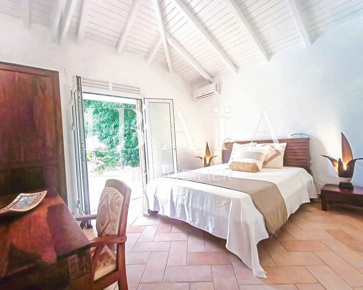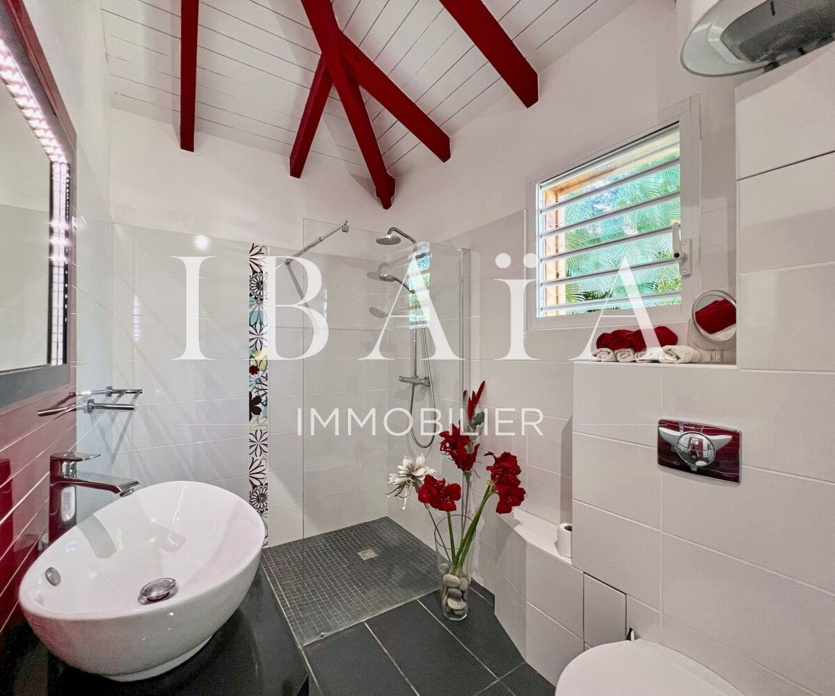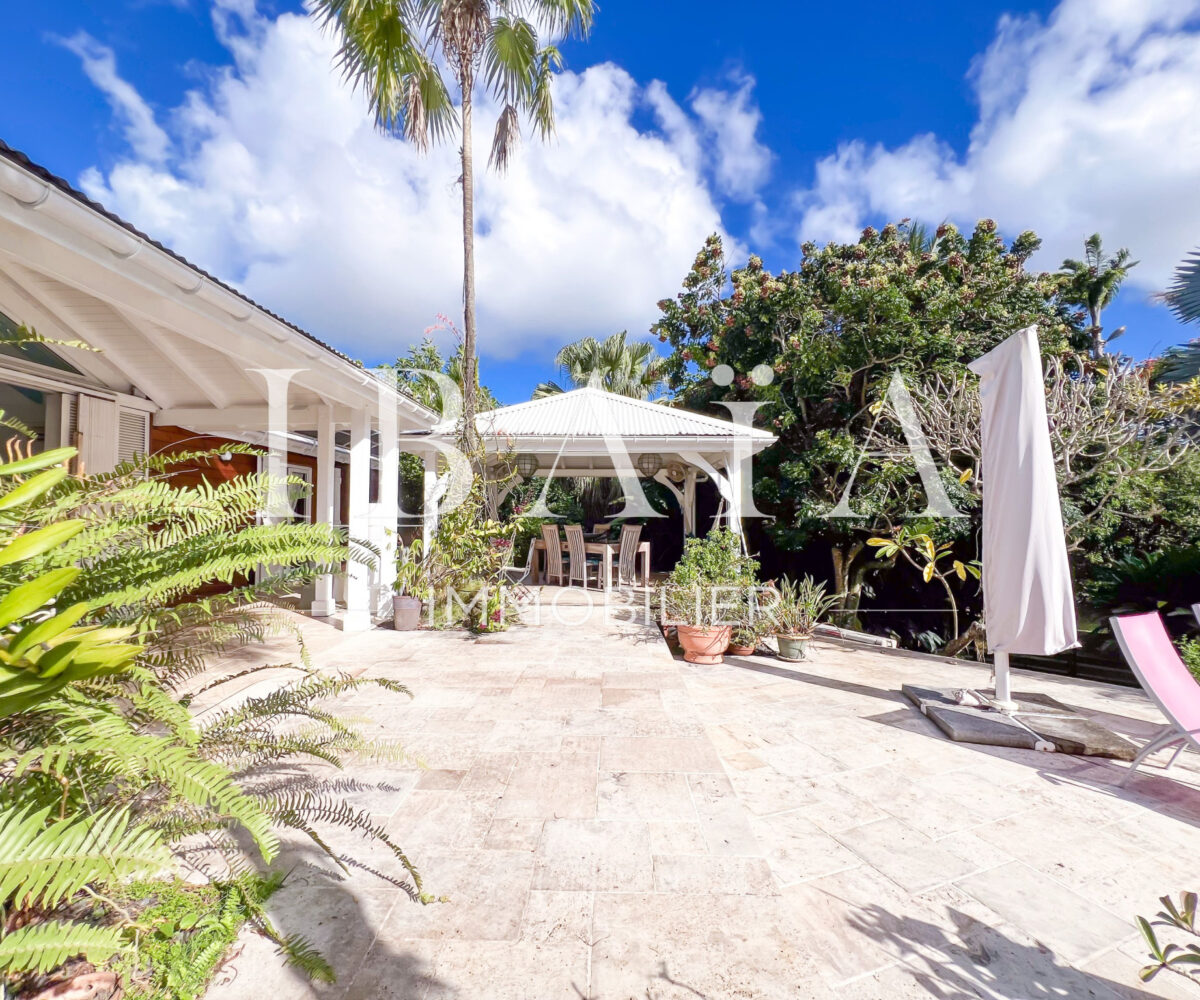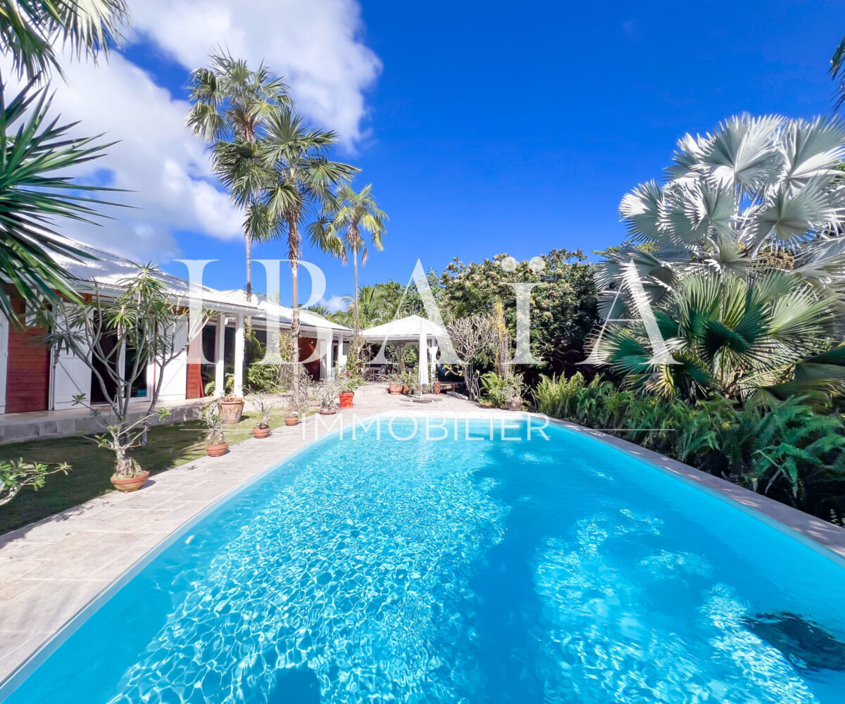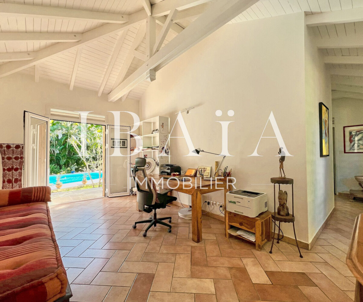 Située sur un terrain arboré d’environ 1 800 m2, cette villa de plain-pied d’une superficie de 151 m2 (hors terrasses et carbet) est en parfait état.