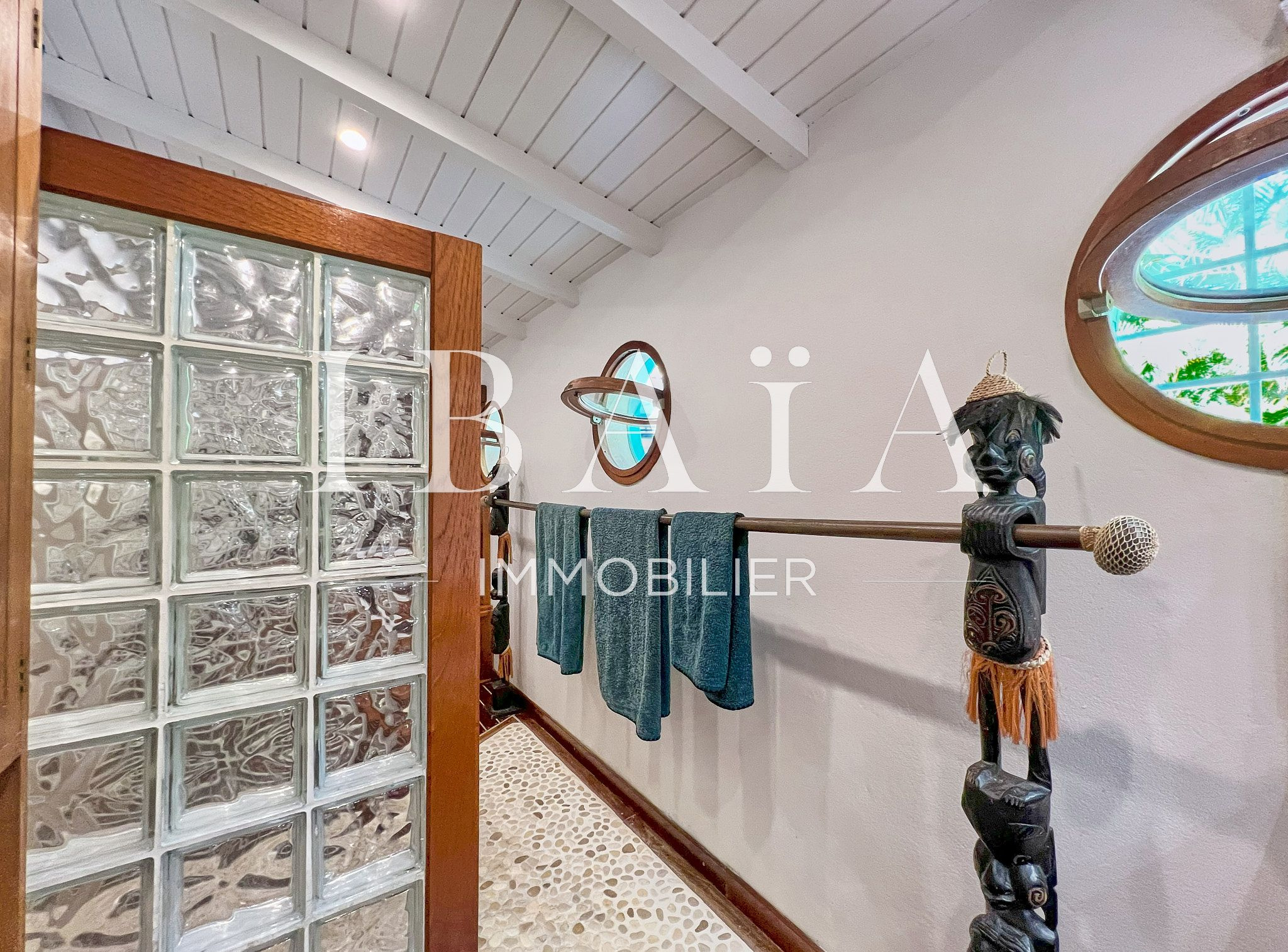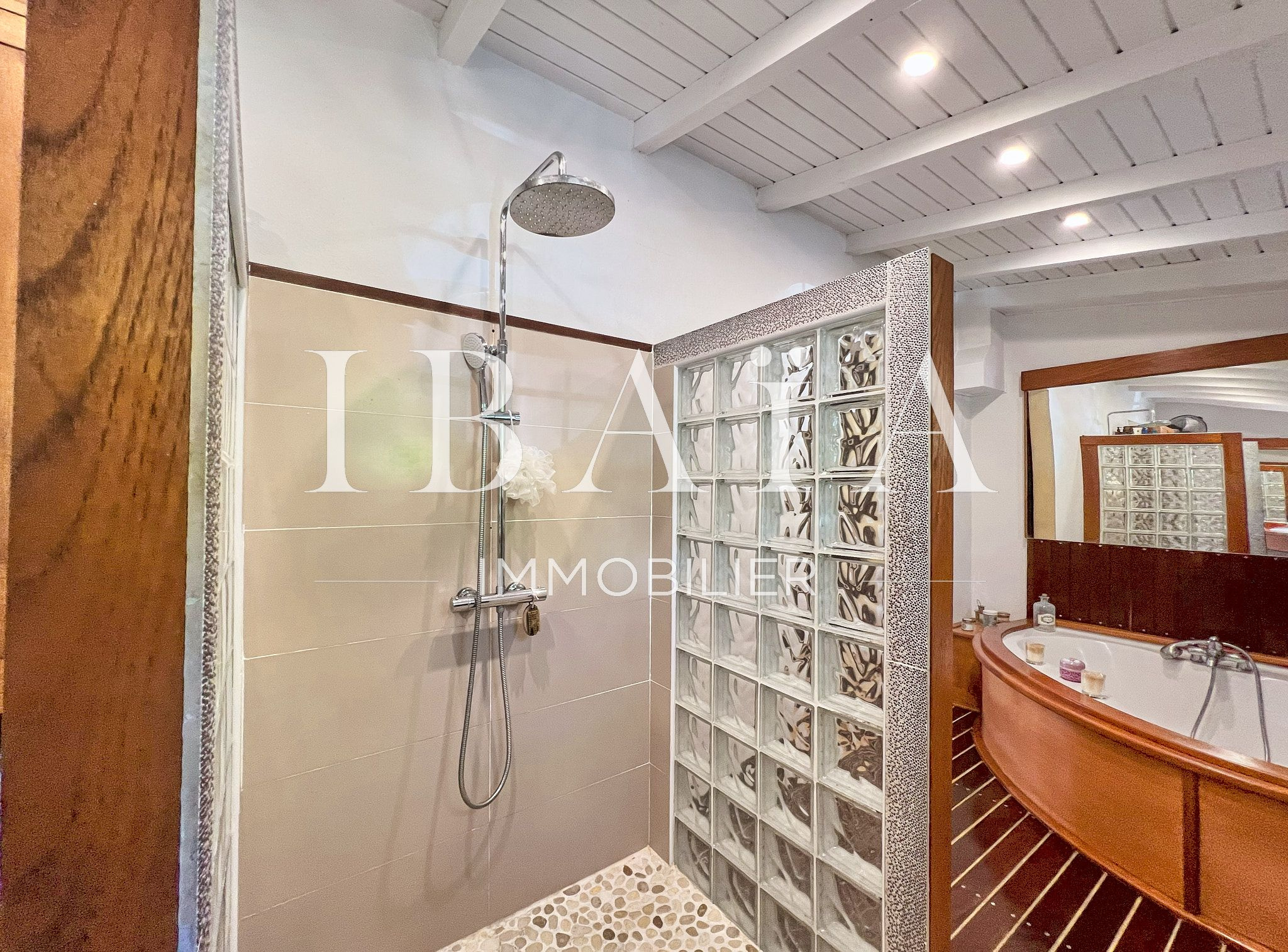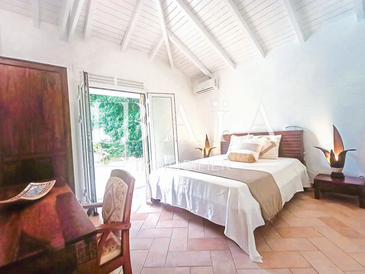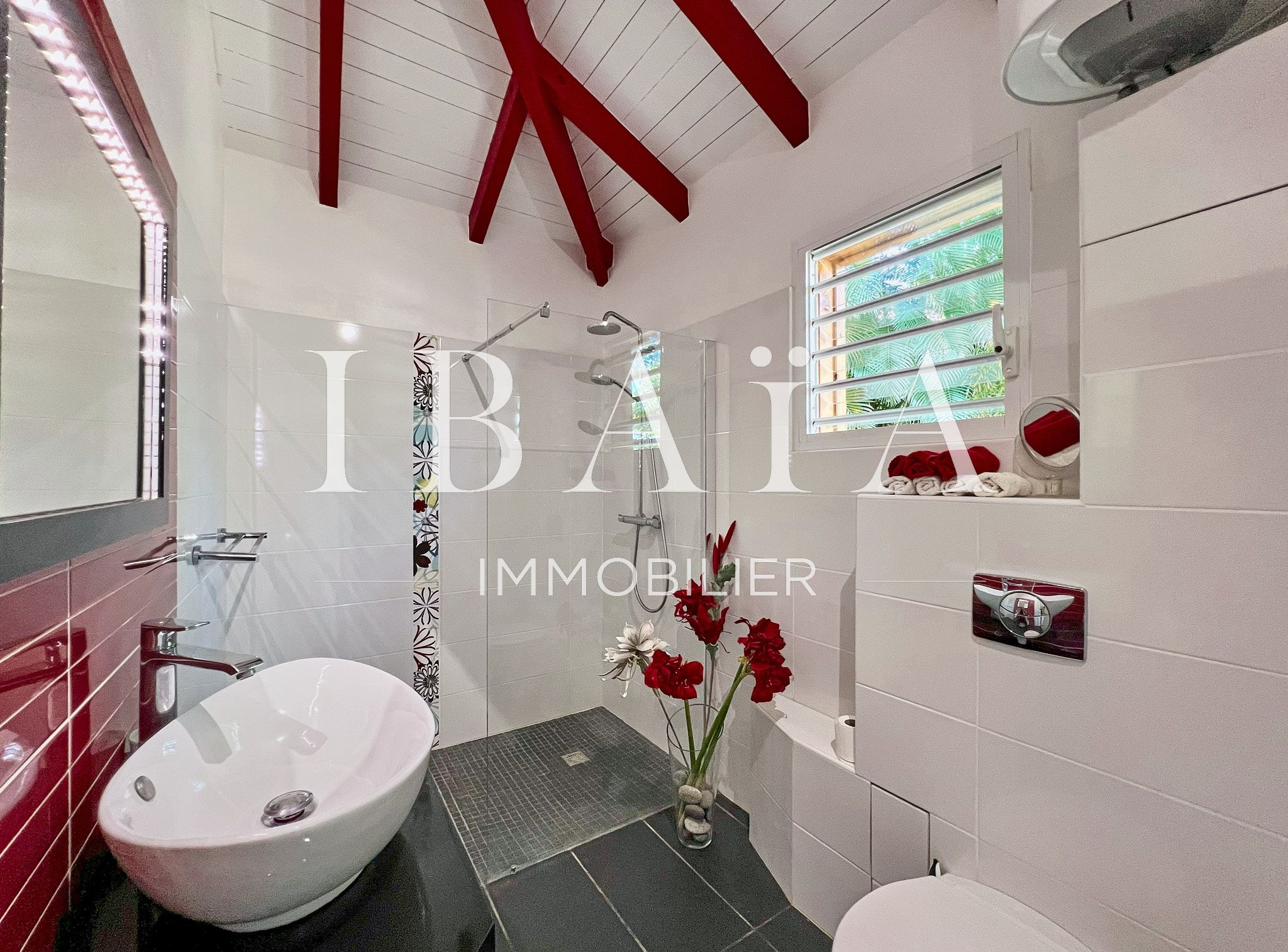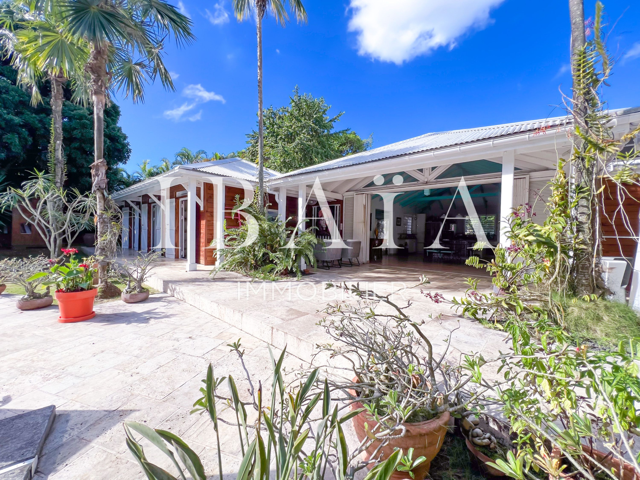 Située sur un terrain arboré d’environ 1 800 m2, cette villa de plain-pied d’une superficie de 151 m2 (hors terrasses et carbet) est en parfait état.