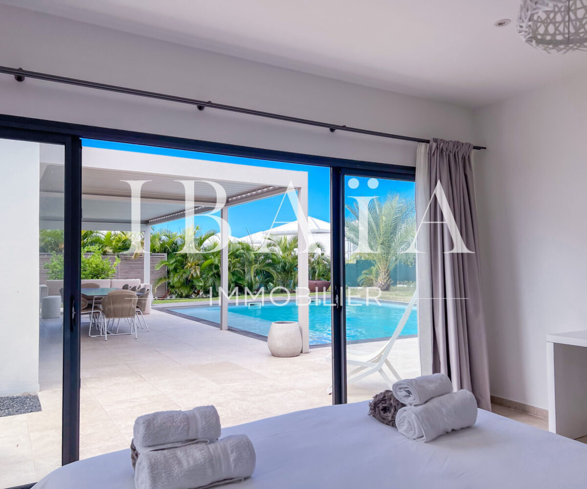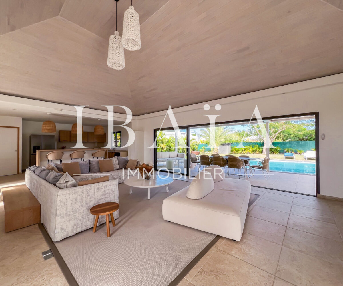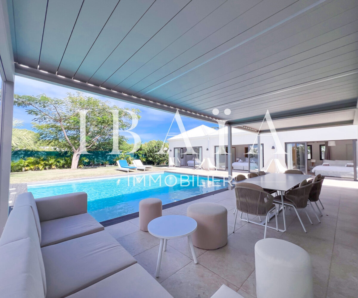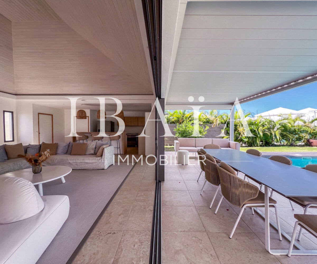 Découvrez cette sublime villa d’architecte, au coeur de Saint-François, vendue entièrement meublée et équipée.