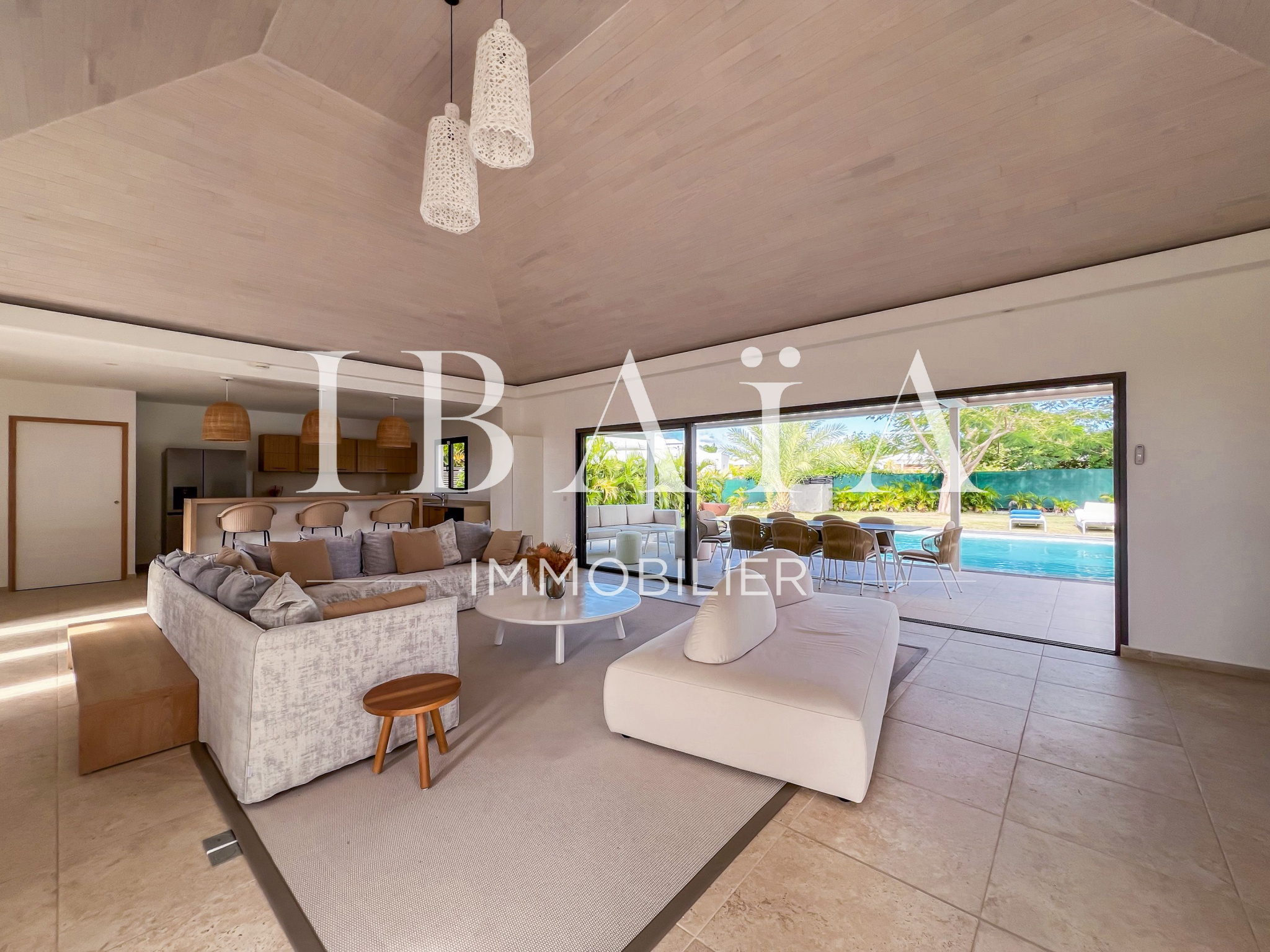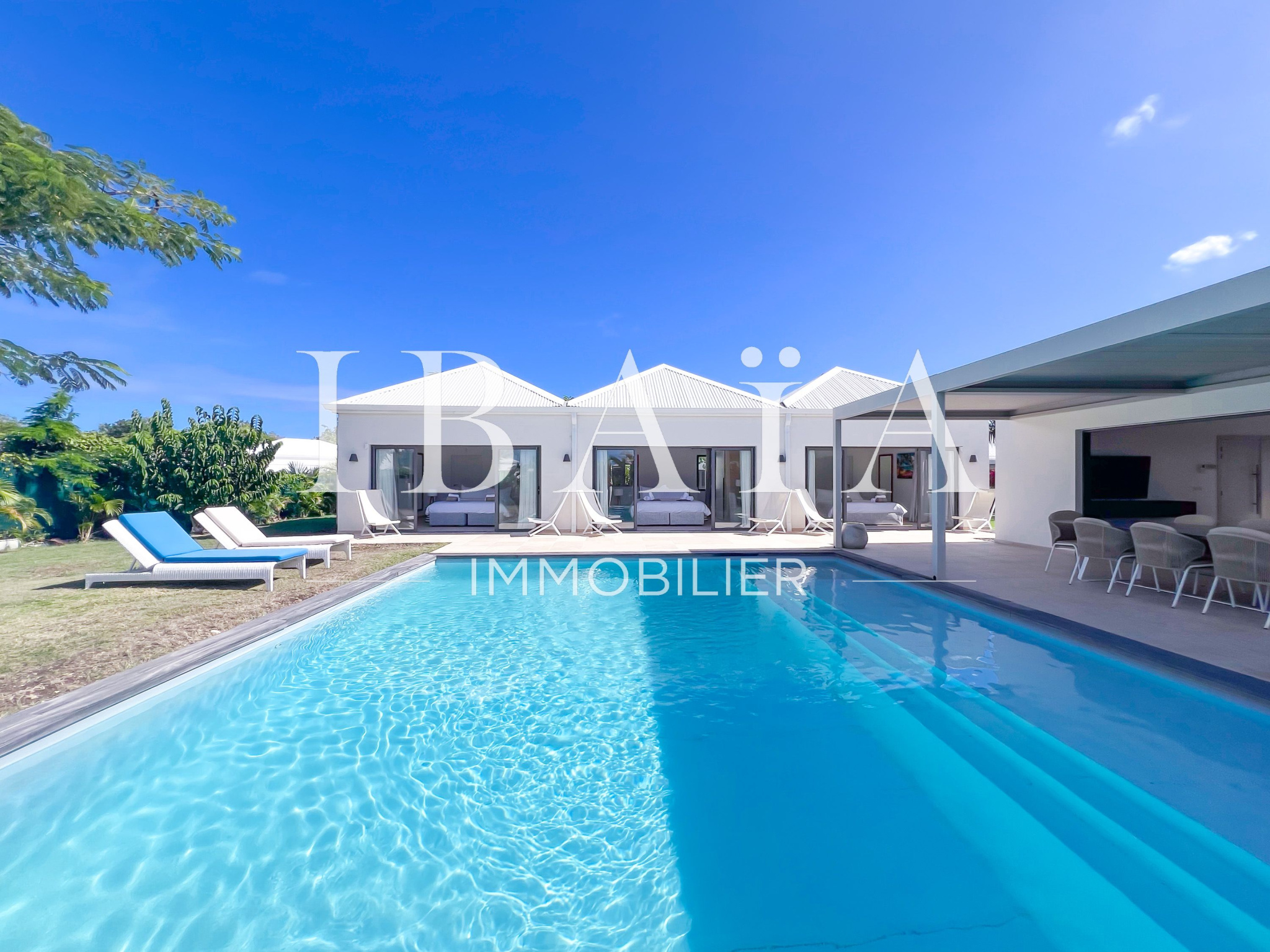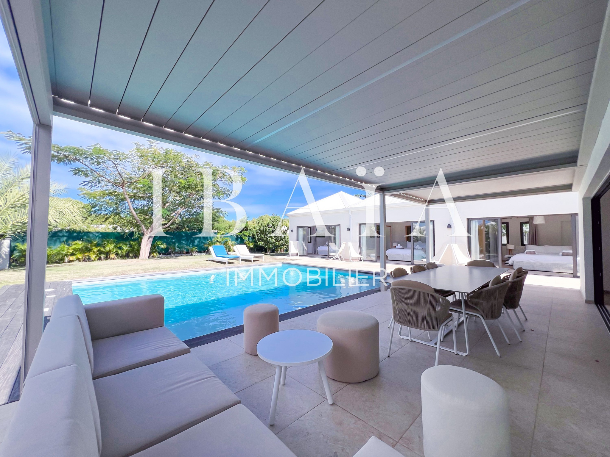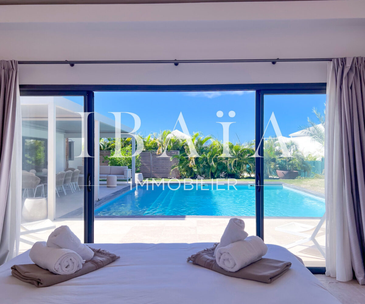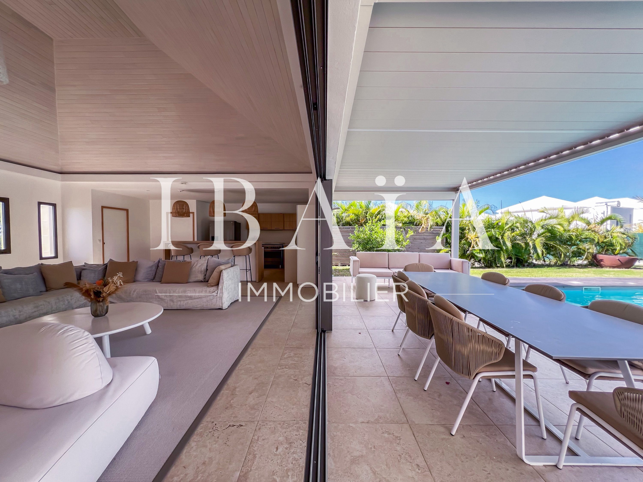 Découvrez cette sublime villa d’architecte, au coeur de Saint-François, vendue entièrement meublée et équipée.