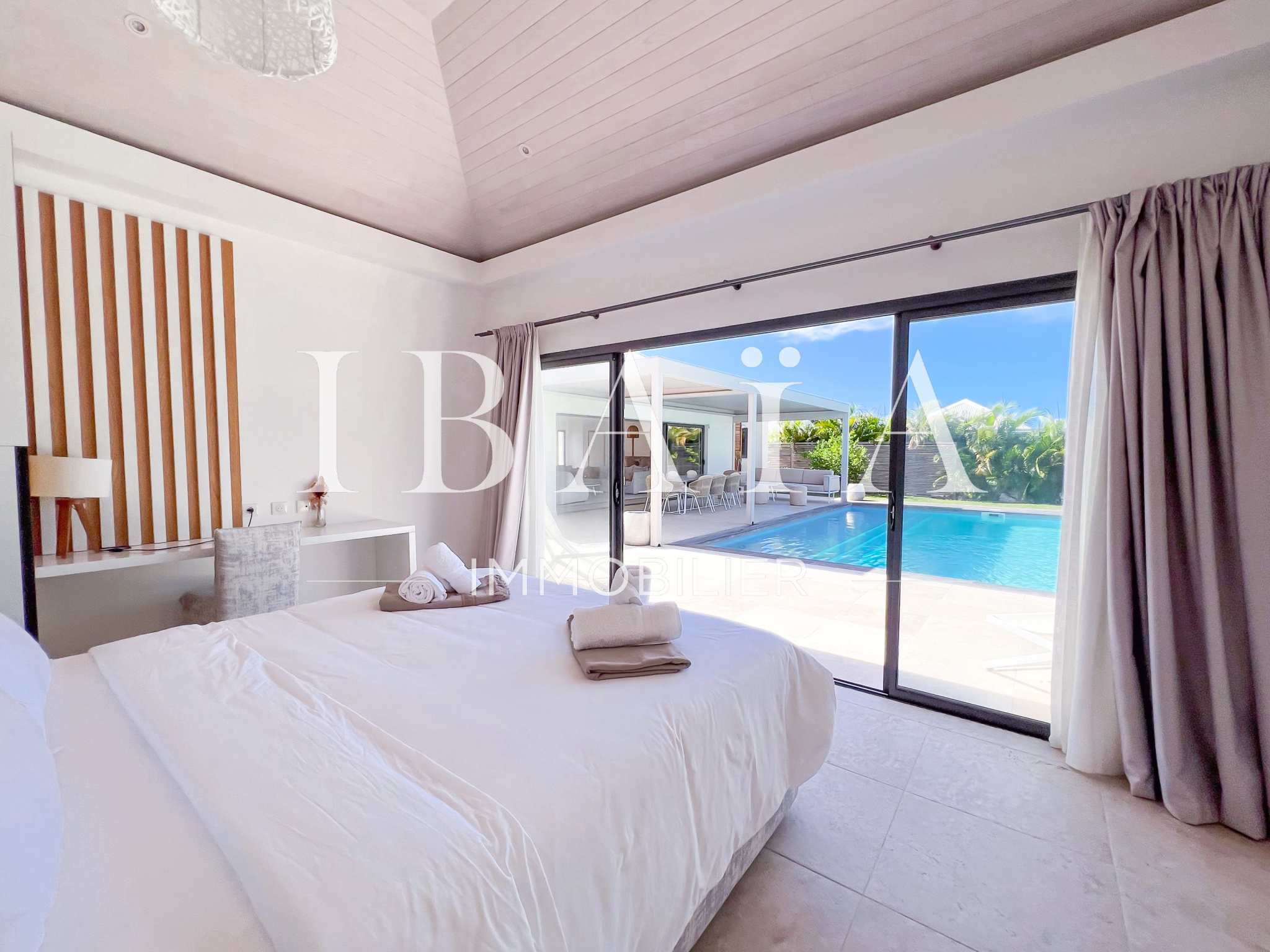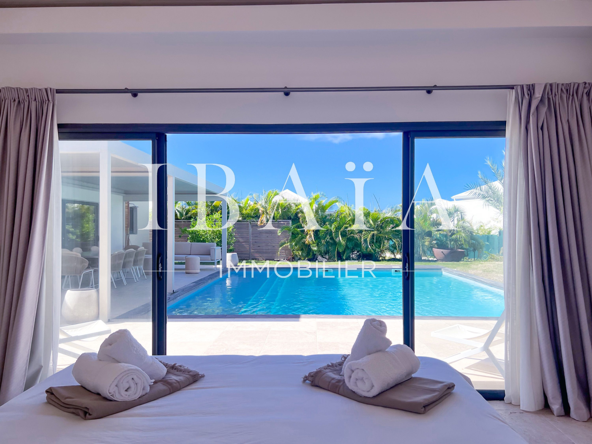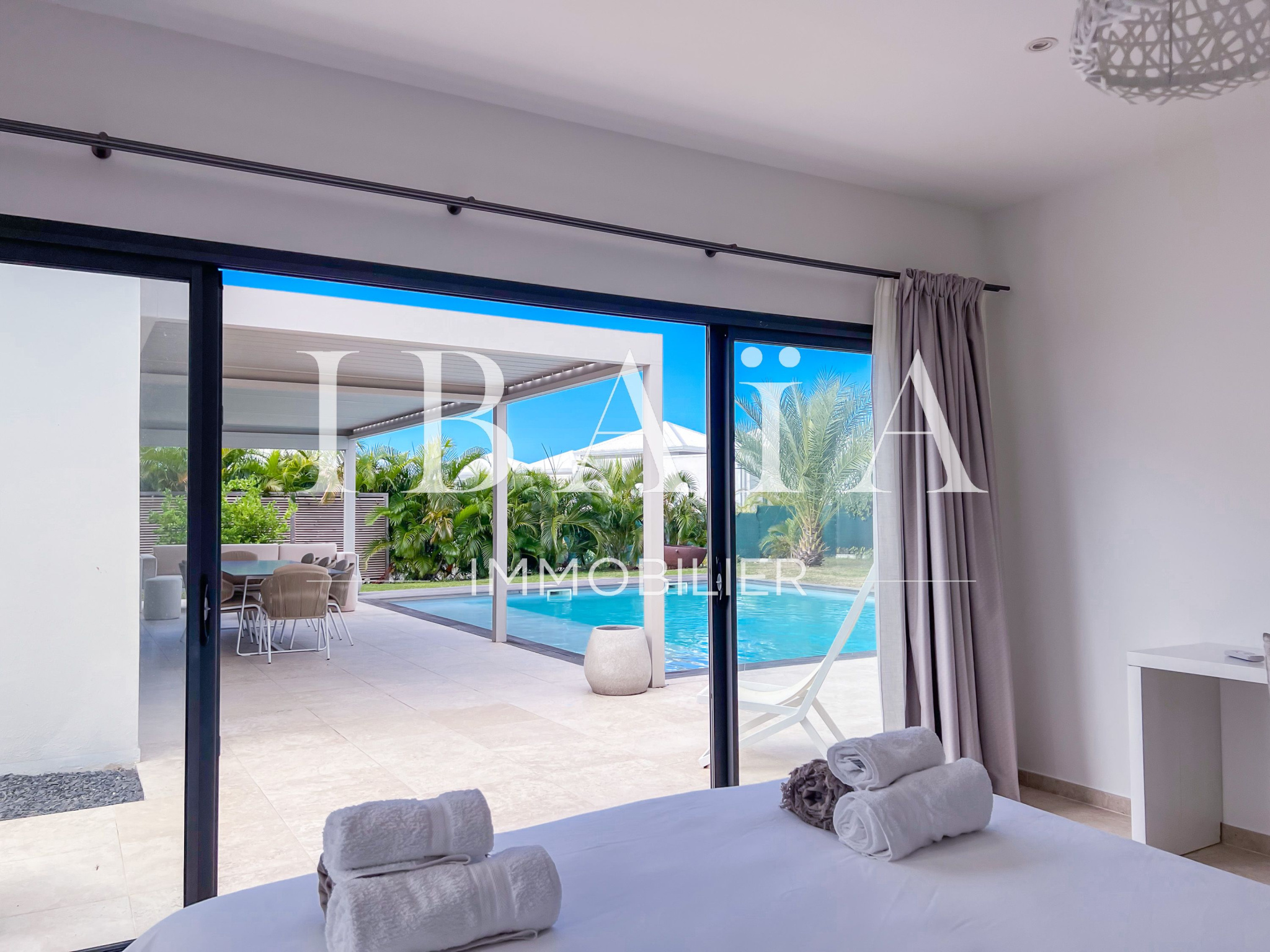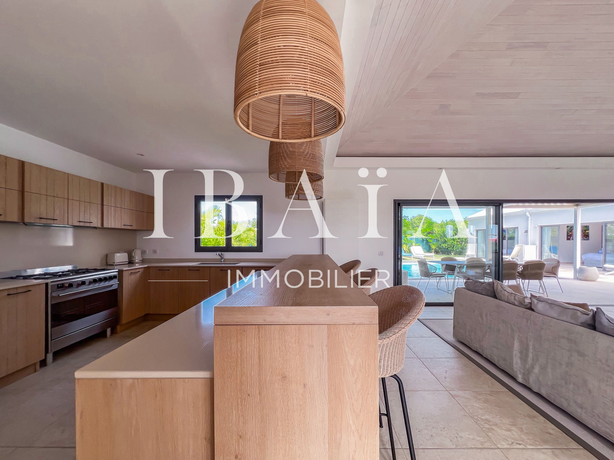 Découvrez cette sublime villa d’architecte, au coeur de Saint-François, vendue entièrement meublée et équipée.