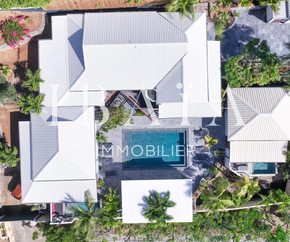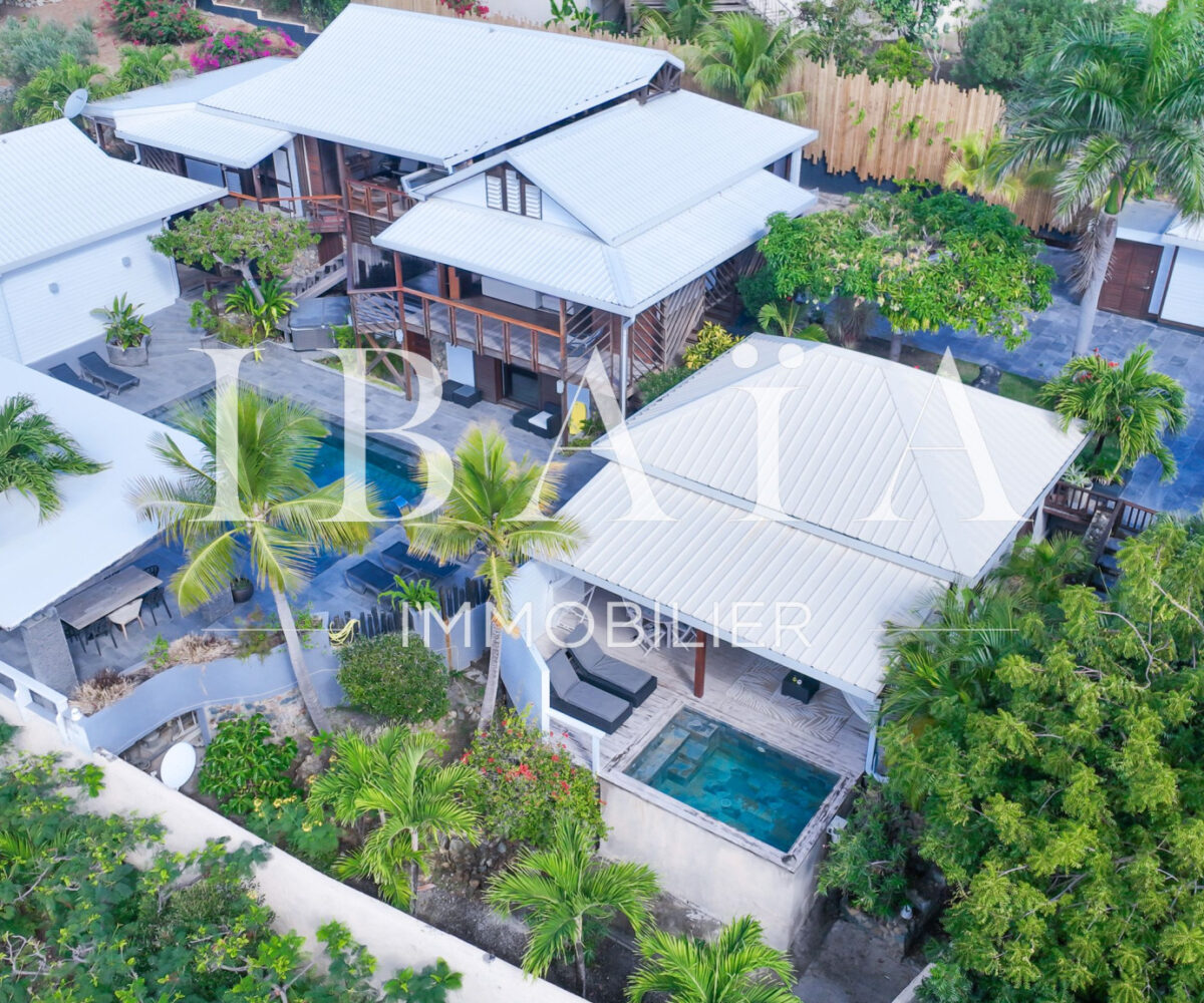 La villa principale, actuellement utilisée comme résidence principale par les propriétaires, est complétée par trois bungalows dont deux exploités en location saisonnière, générant des revenus locatifs très intéressants. Cette configuration en fait un investissement de choix.