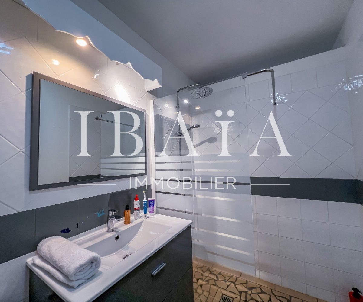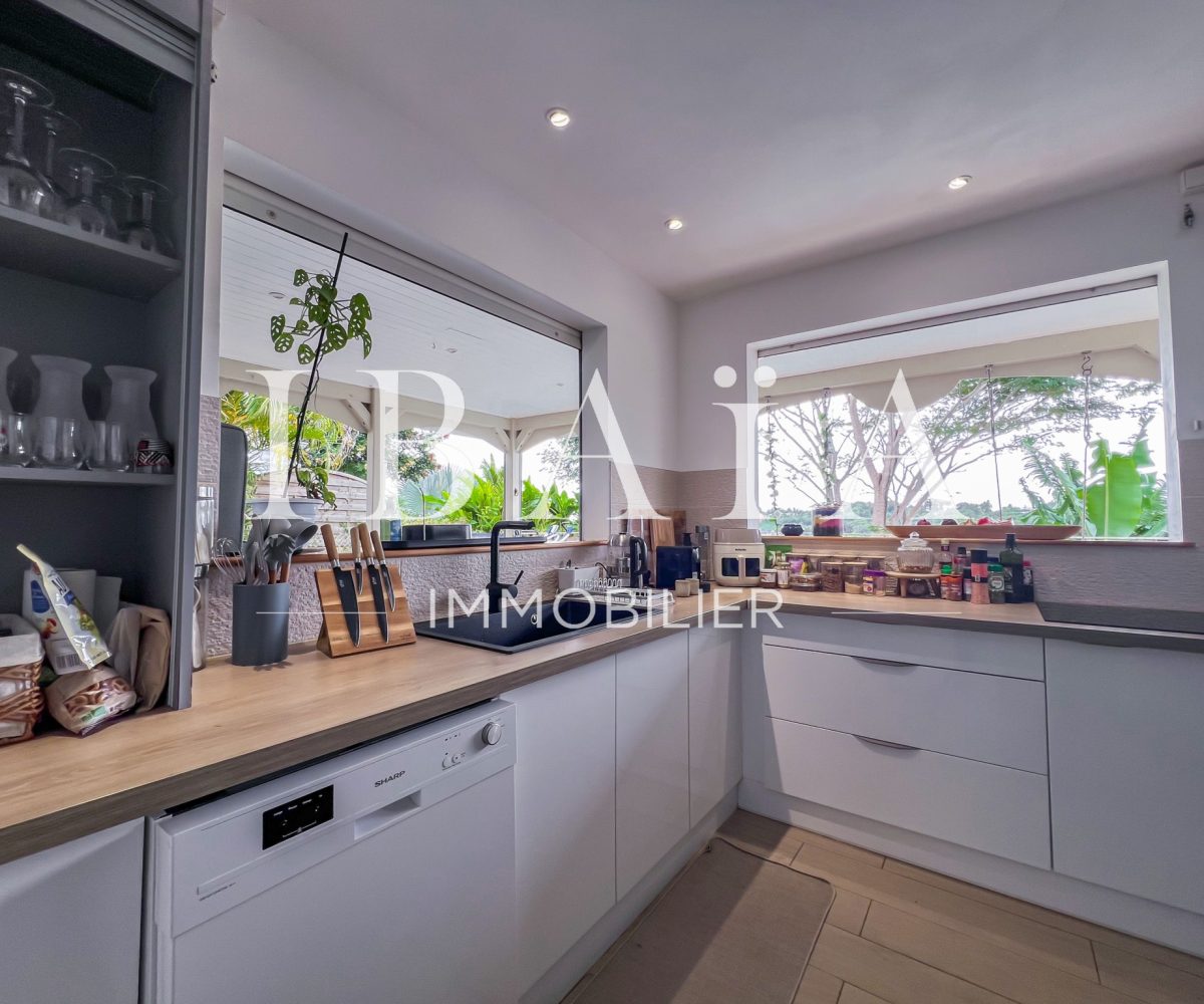 Bénéficiant d’une petite vue mer ainsi que d’une belle vue sur la montagne, cette villa se compose comme suit : une entrée, un séjour climatisé, une cuisine équipée ouvrant sur la terrasse extérieure, une arrière-cuisine / cellier, trois chambres, ainsi que deux salles d’eau avec WC.