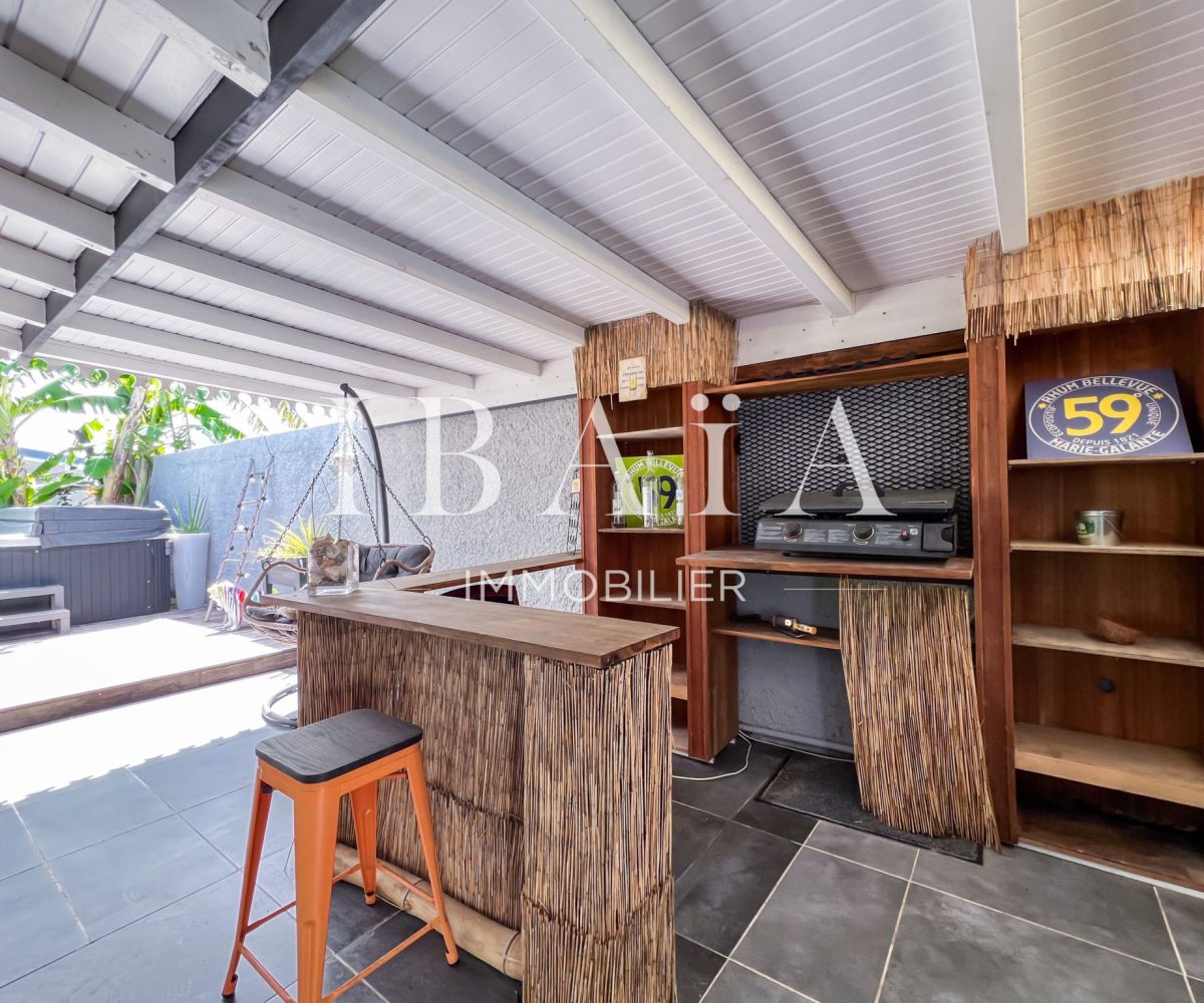 – Une grande terrasse couverte de 70 mètres carrés comprenant un espace salle à manger et un deuxième espace de détente où vous trouverez un salon extérieur, un bar avec plancha, un espace de jeu avec baby-foot ainsi qu’un espace de relaxation avec un jacuzzi 6 places.