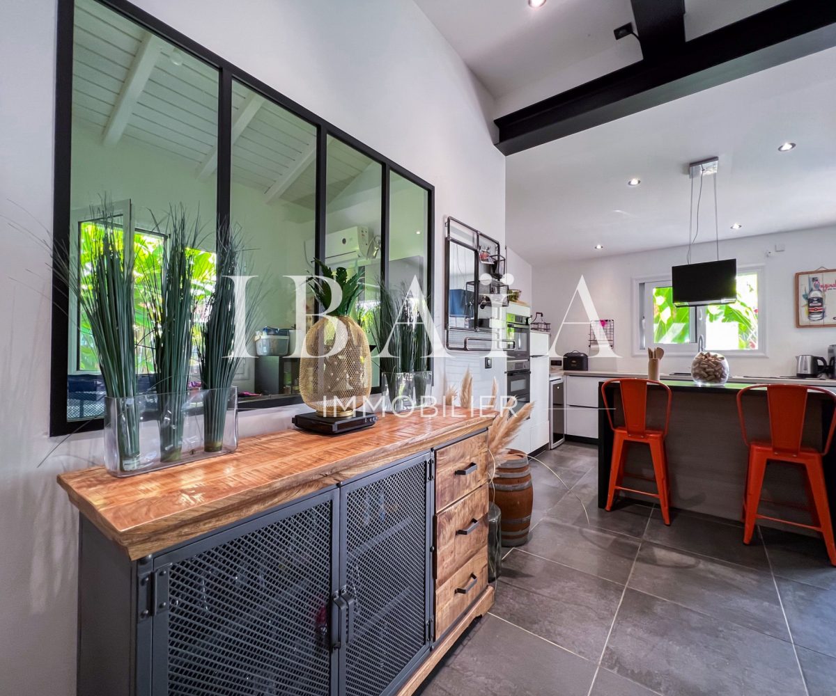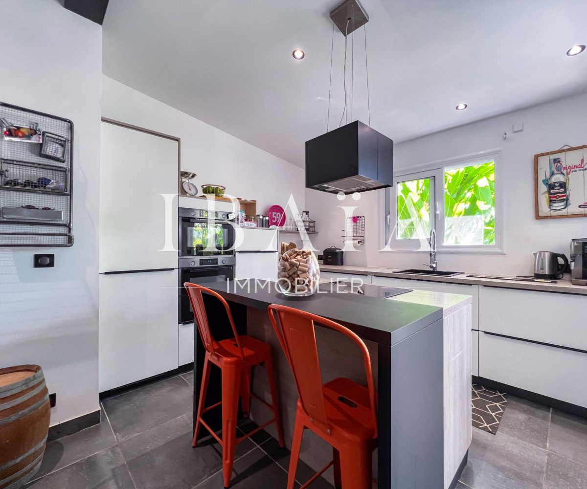 – Une cuisine avec îlot bénéficiant d’une belle luminosité,