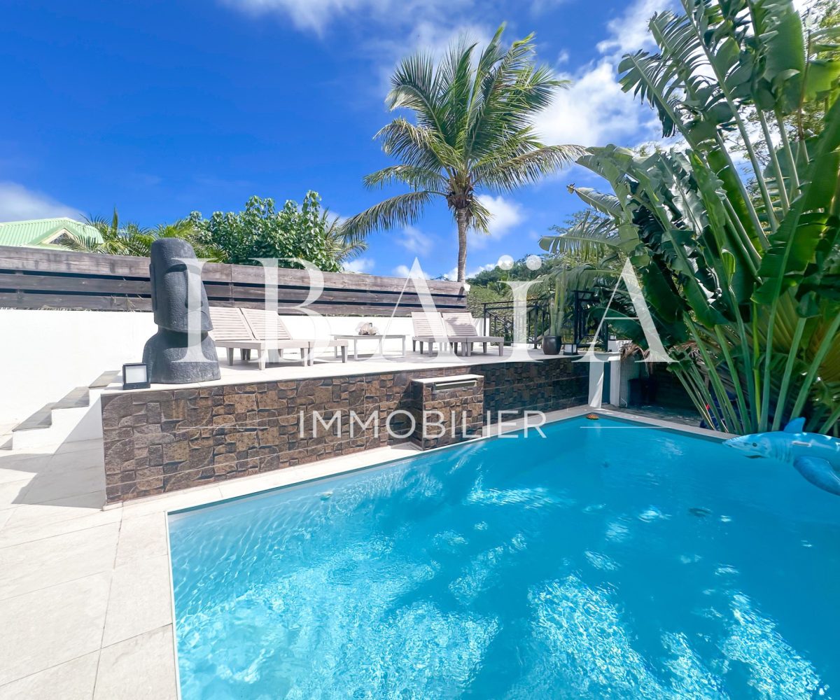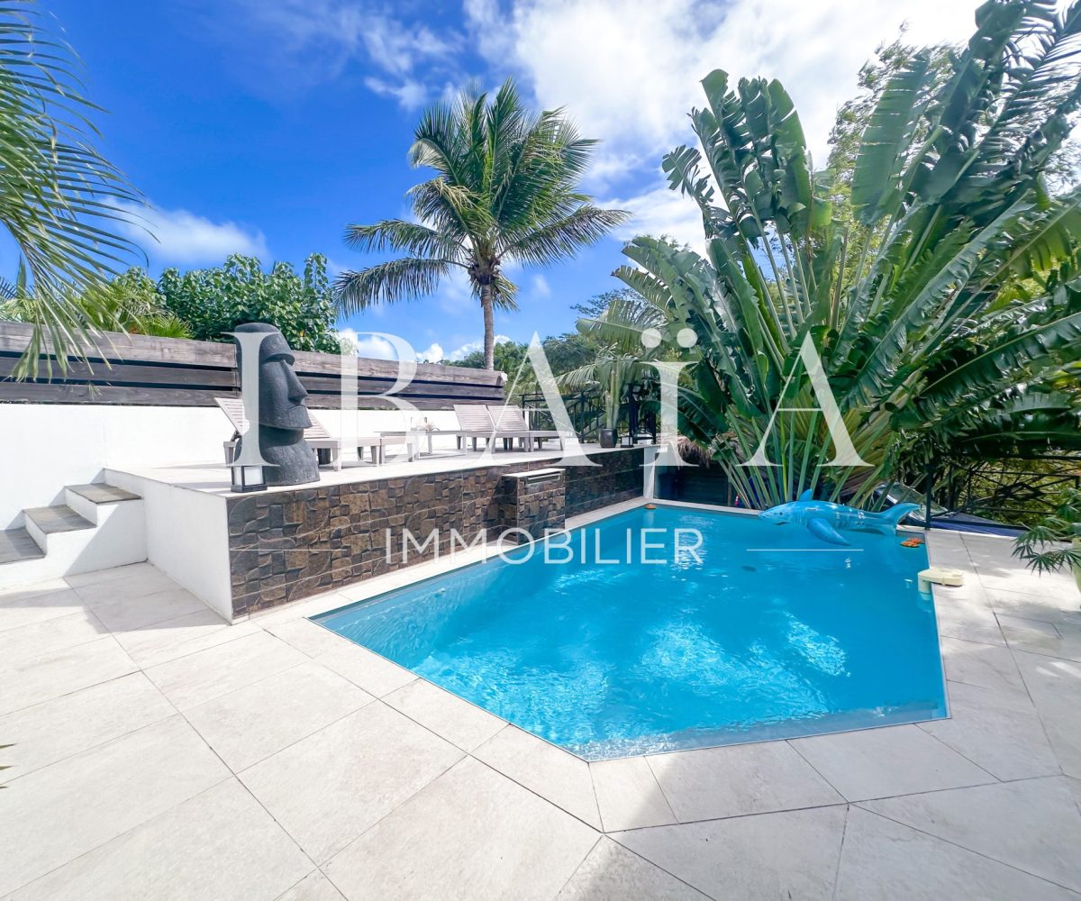 Une piscine vient compléter cet espace extérieur idyllique, bercé par les alizés qui diffusent une agréable brise tout au long de la journée.