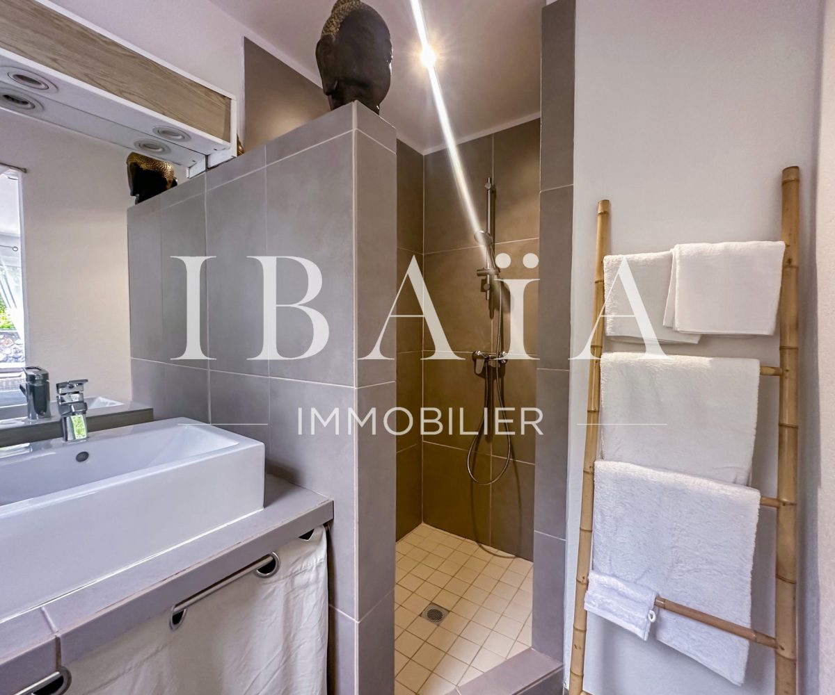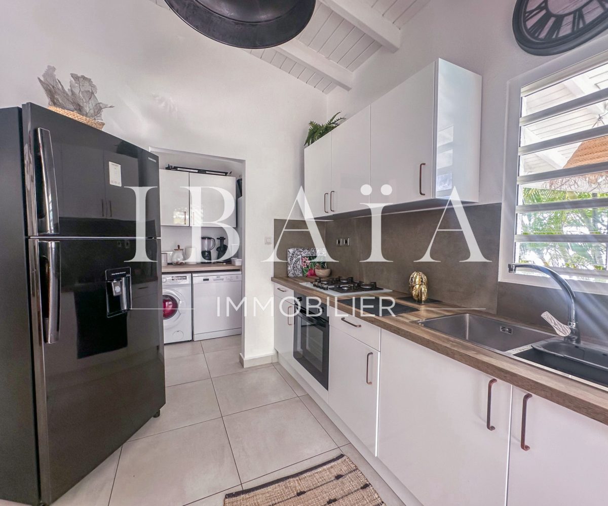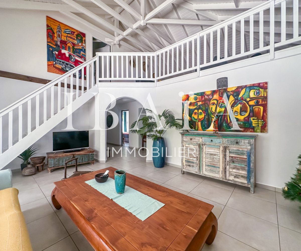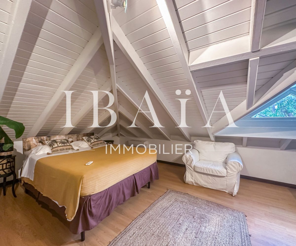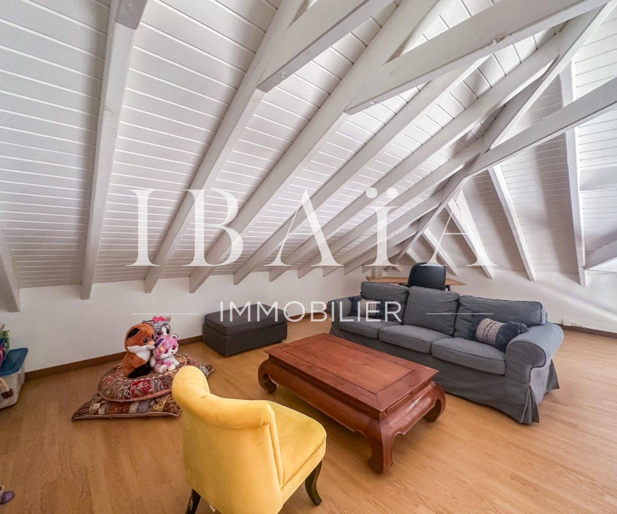 À l’intérieur, la villa séduit par sa cuisine américaine fonctionnelle avec cellier, ouverte sur un séjour lumineux doté d’un superbe toit cathédrale, offrant une sensation d’espace et de volume remarquable.