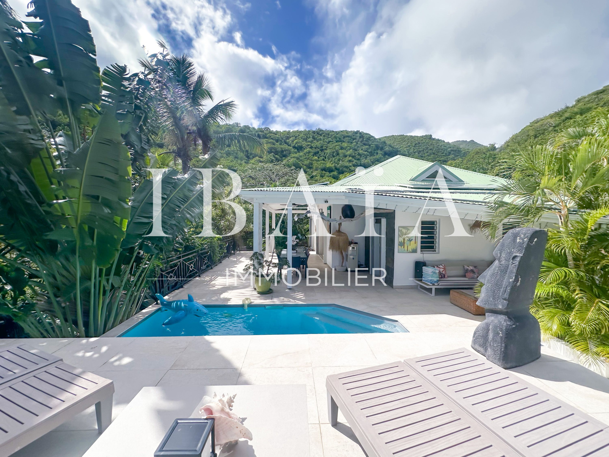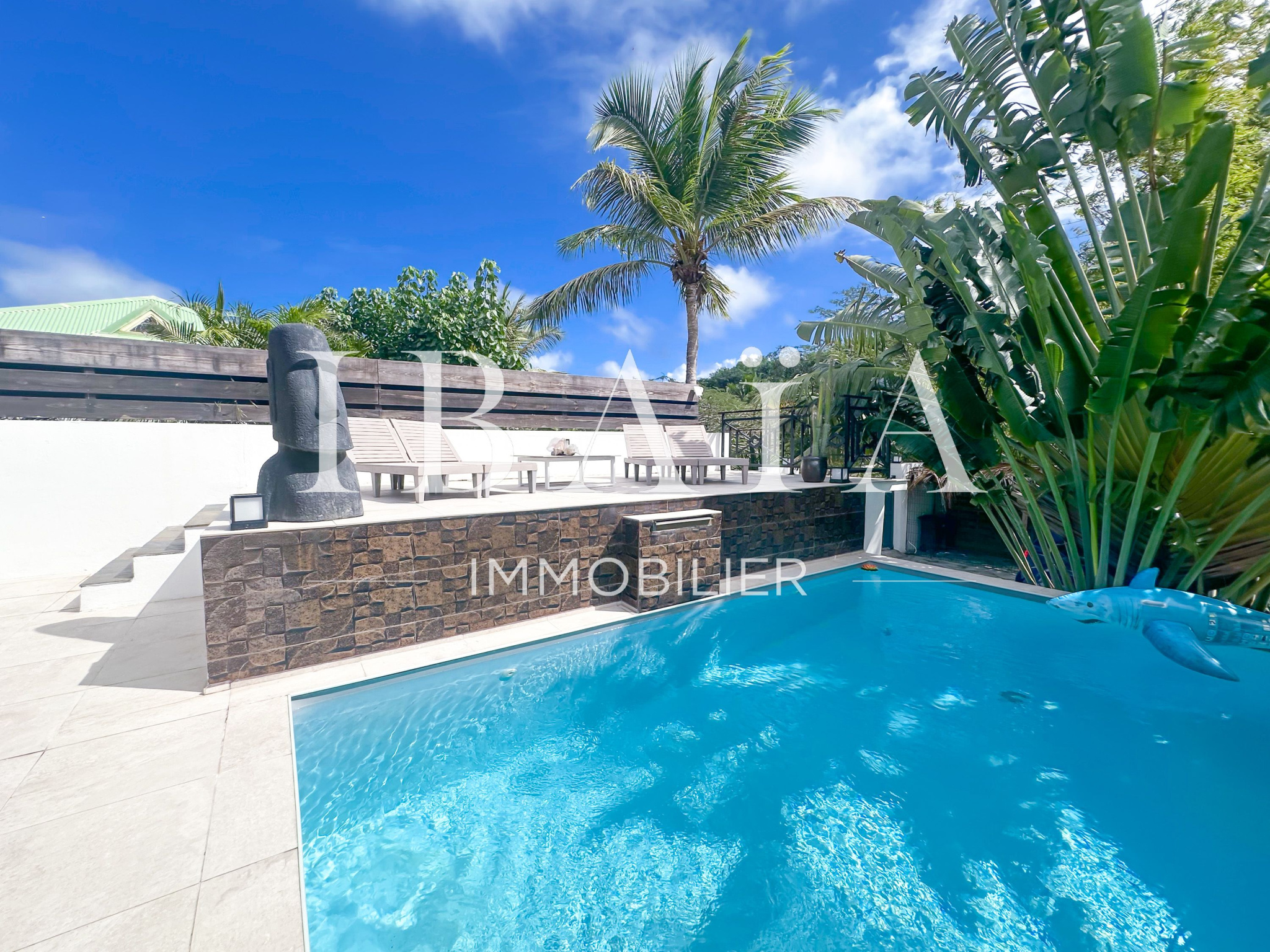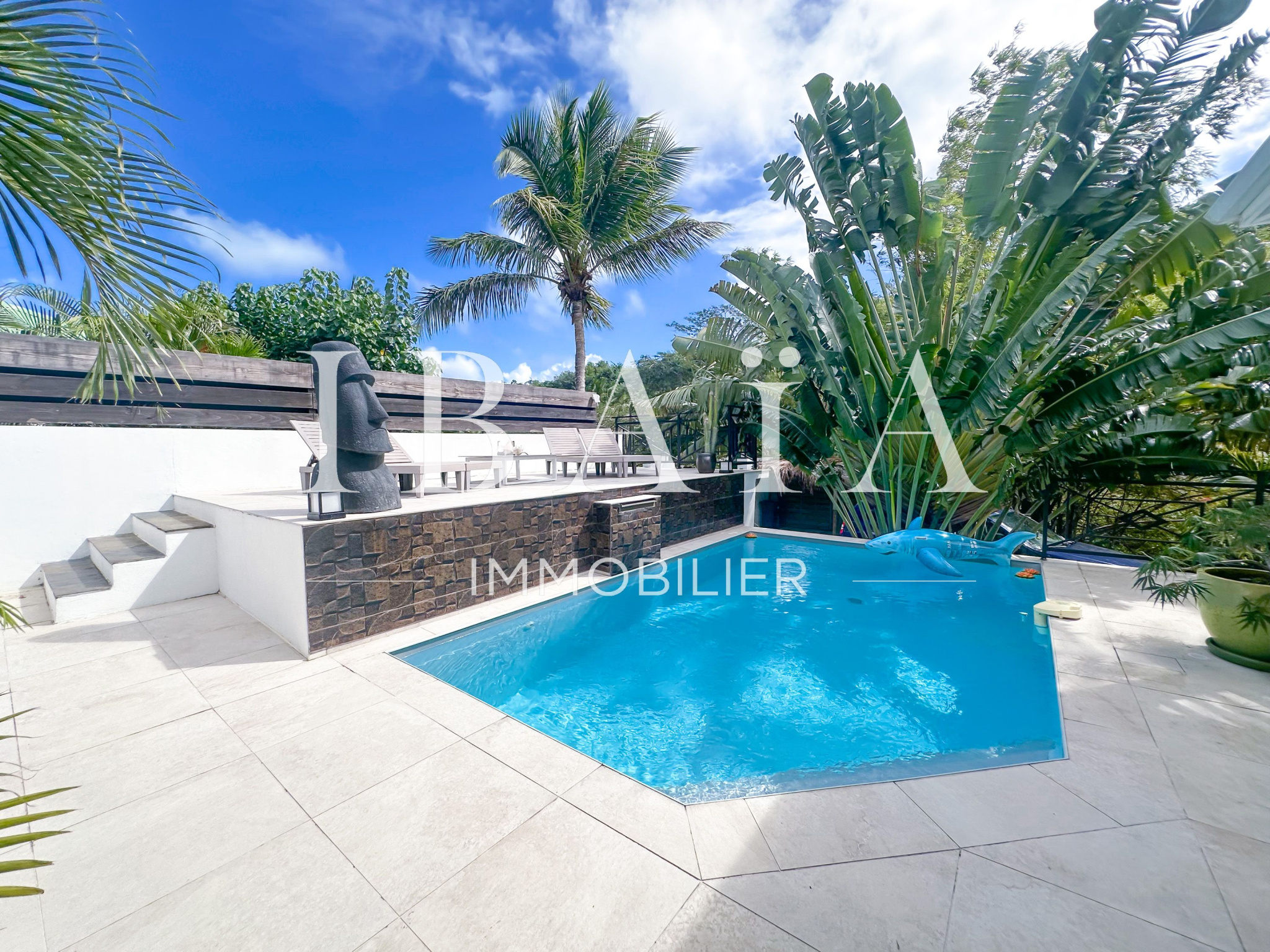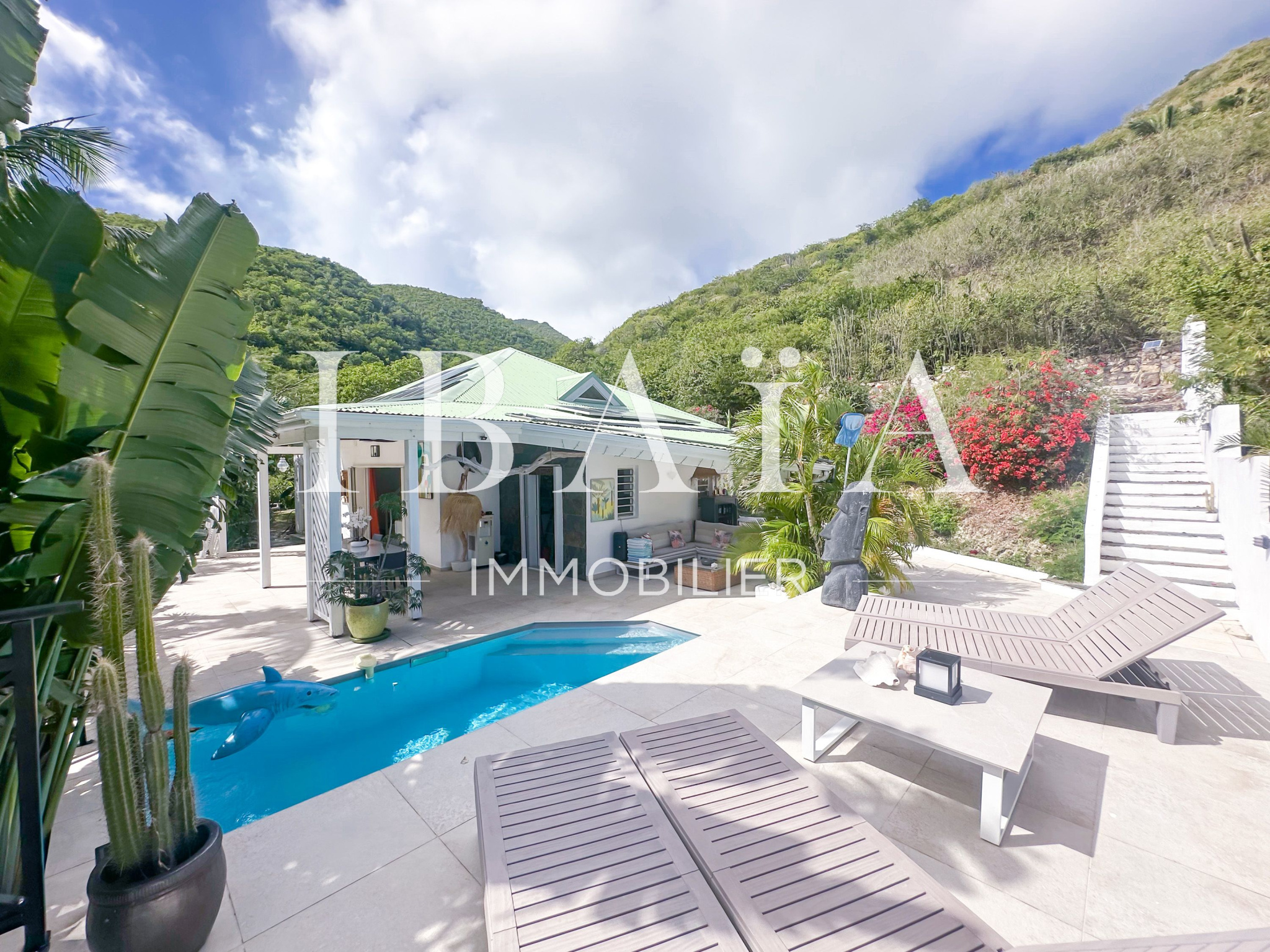 Une piscine vient compléter cet espace extérieur idyllique, bercé par les alizés qui diffusent une agréable brise tout au long de la journée.