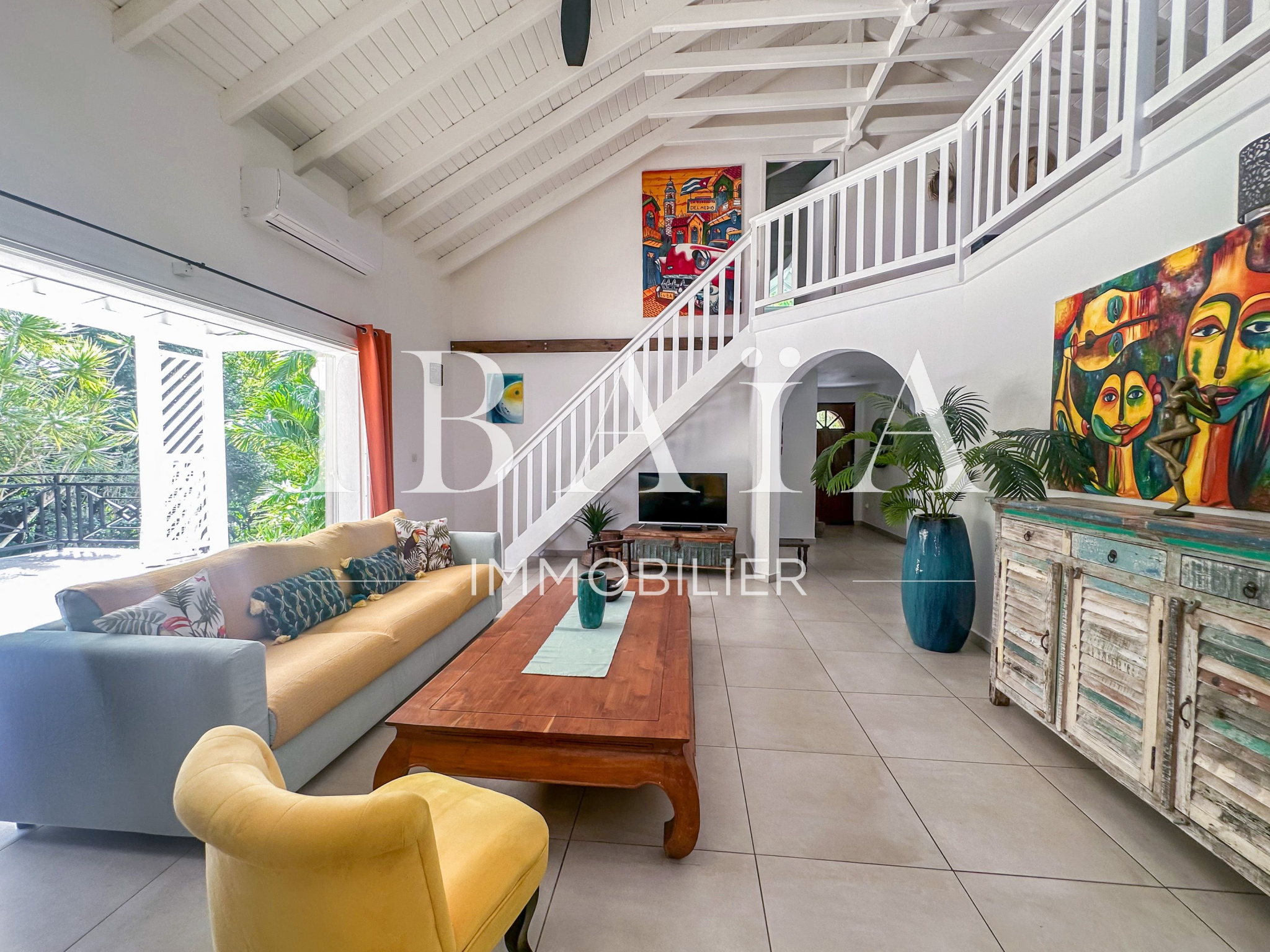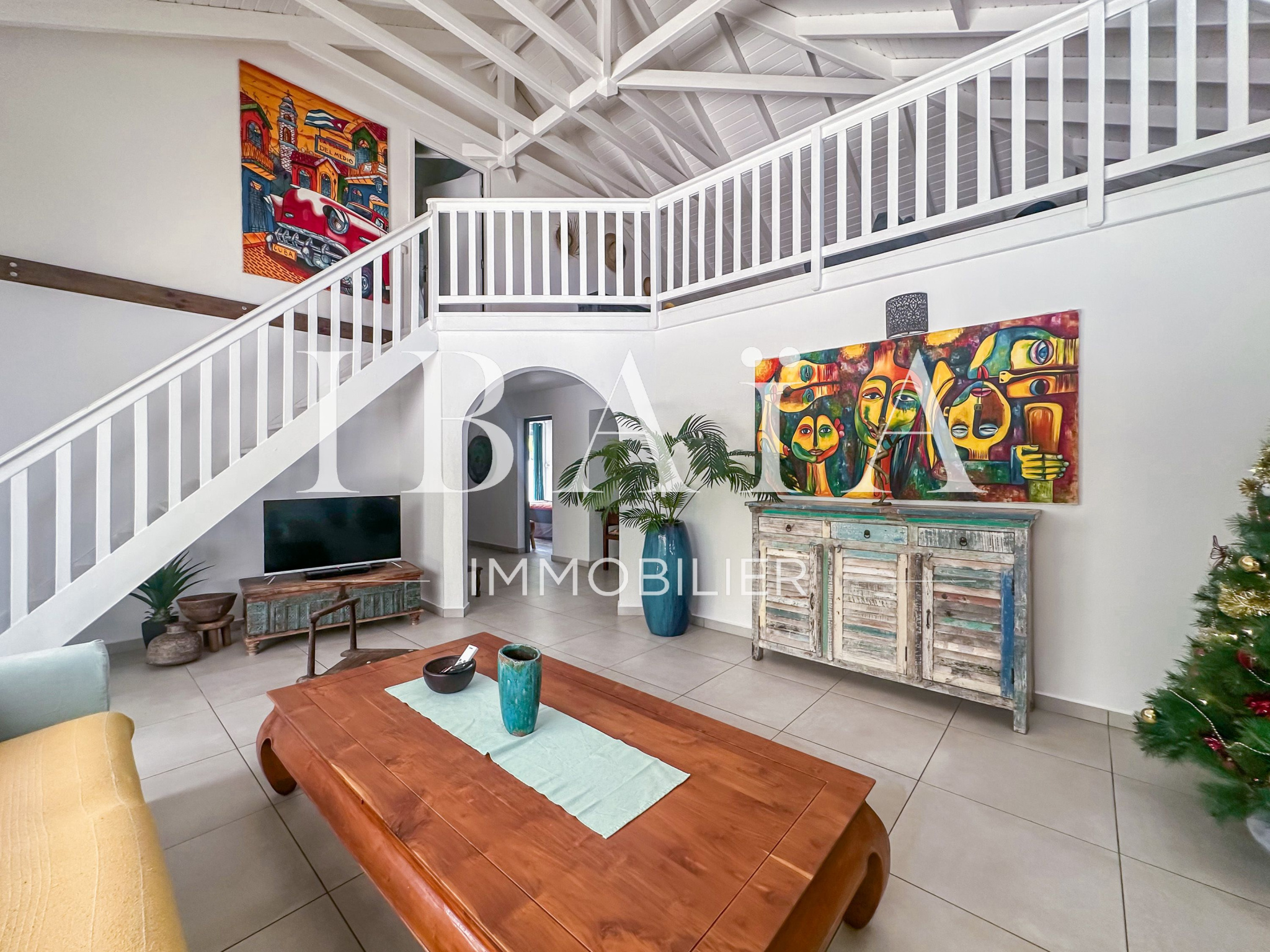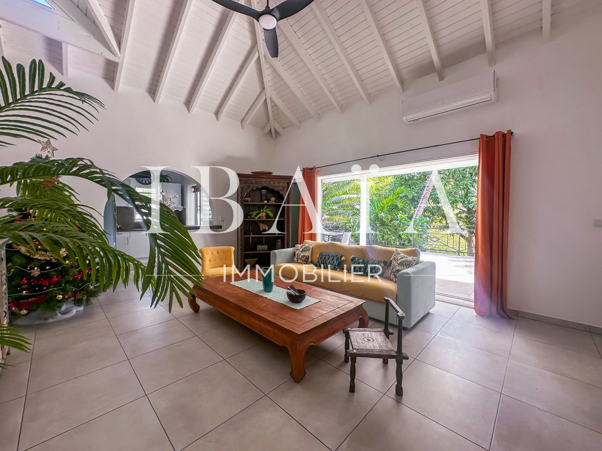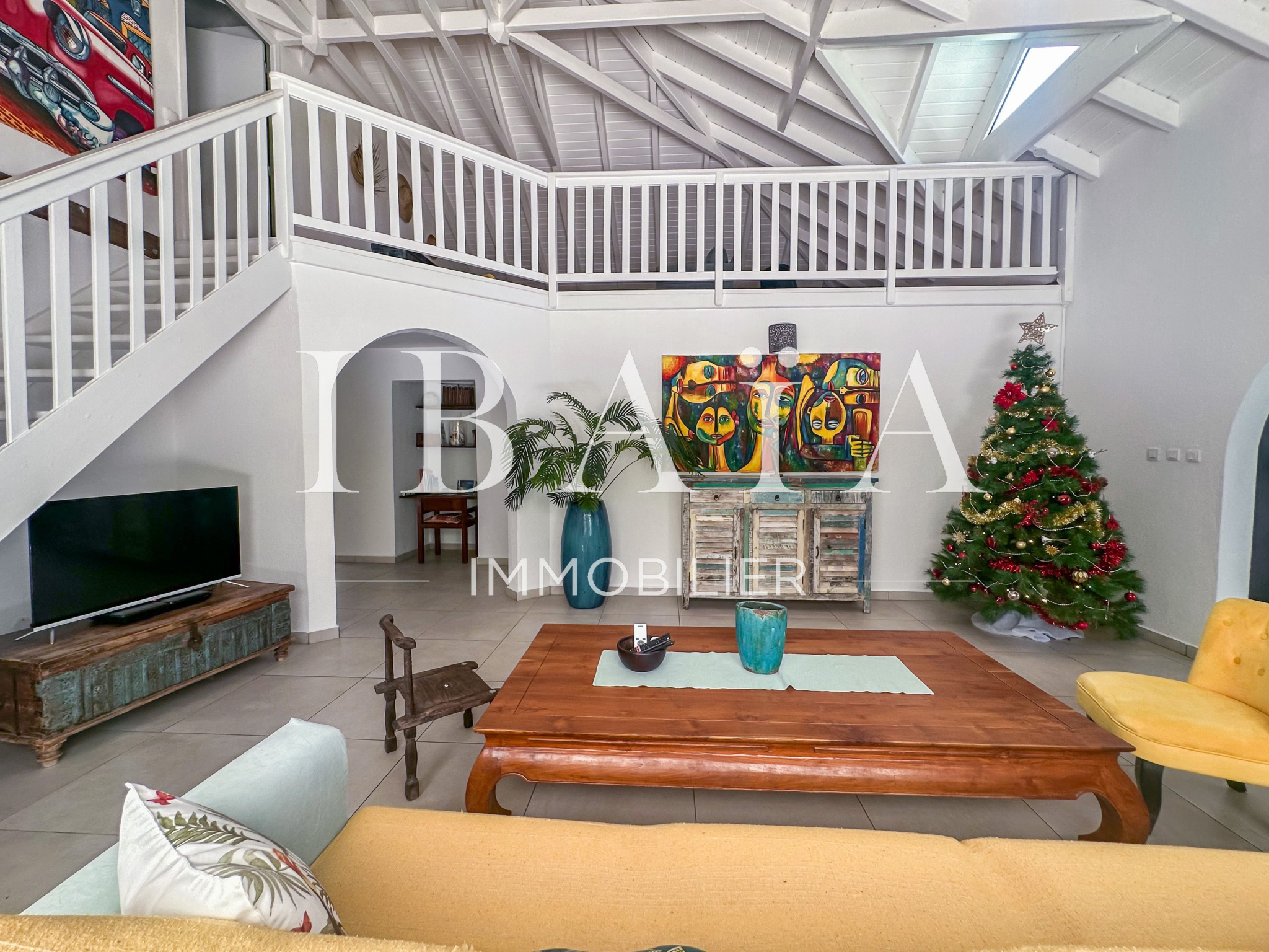 À l’intérieur, la villa séduit par sa cuisine américaine fonctionnelle avec cellier, ouverte sur un séjour lumineux doté d’un superbe toit cathédrale, offrant une sensation d’espace et de volume remarquable.
