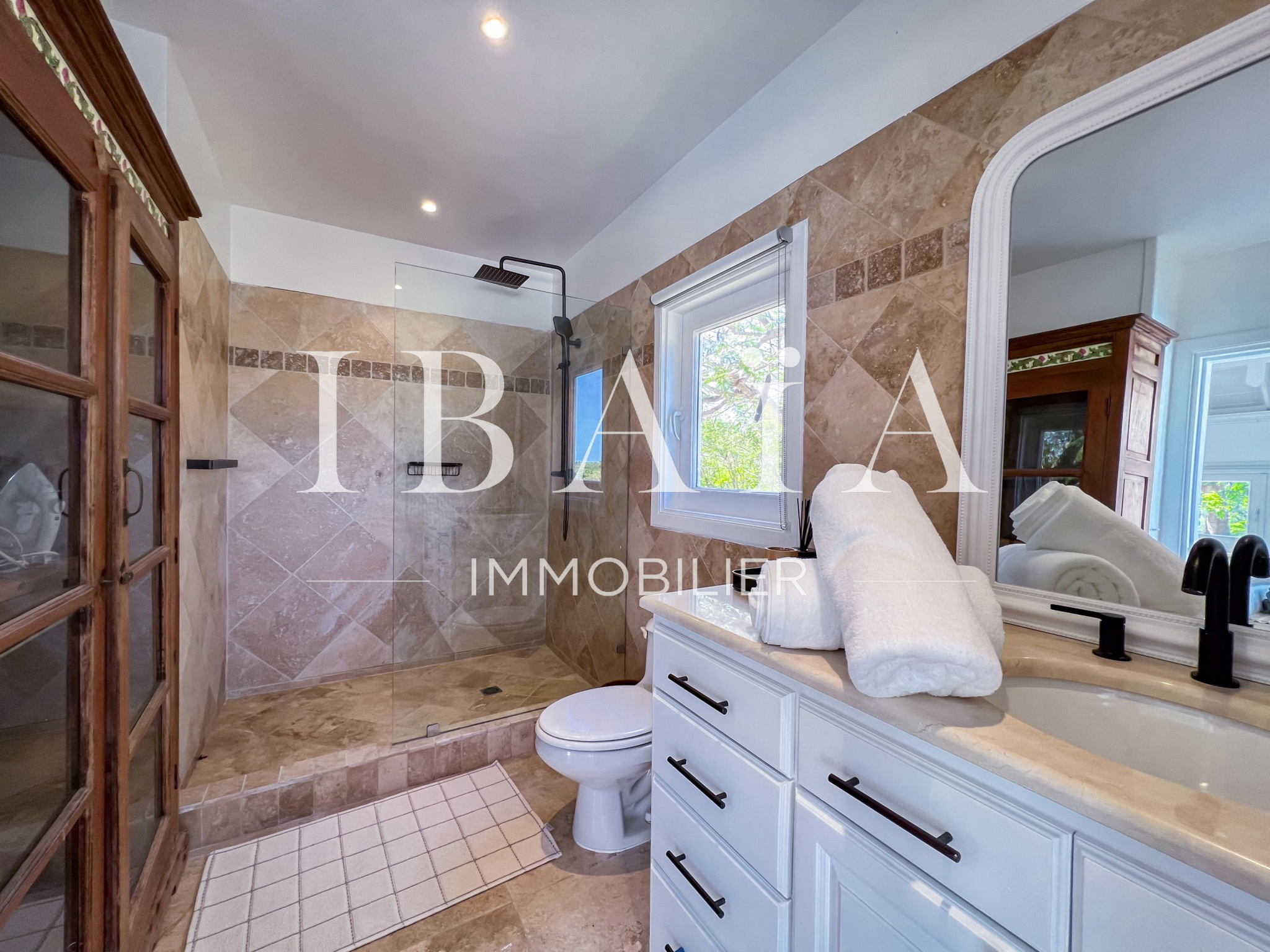 Édifiée sur un terrain clos de 10 000 mètres carrés bénéficiant d’une belle vue, cette villa ne vous laissera pas indifférent dès que vous en franchirez le seuil.