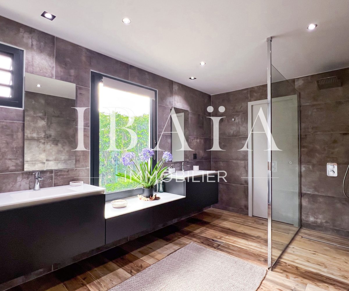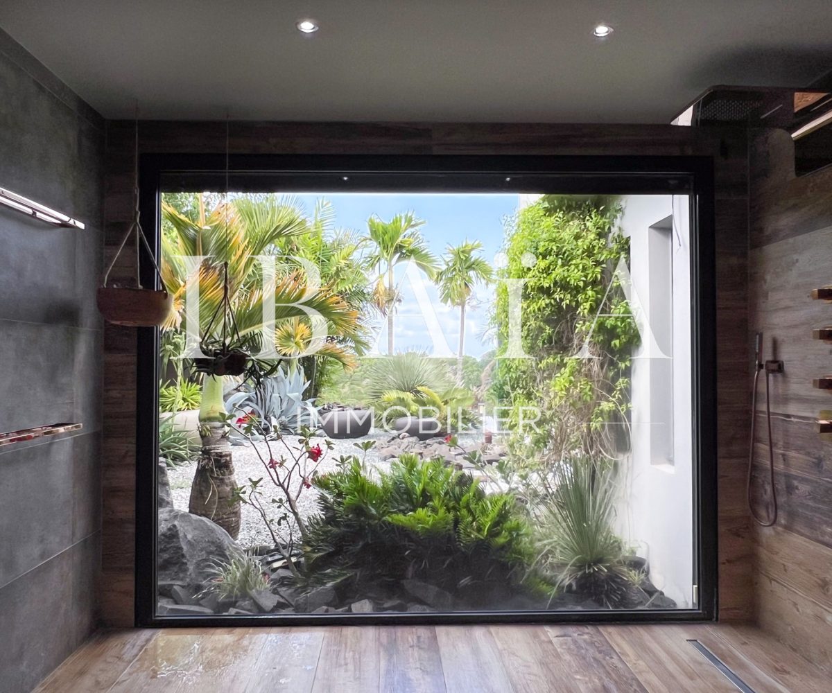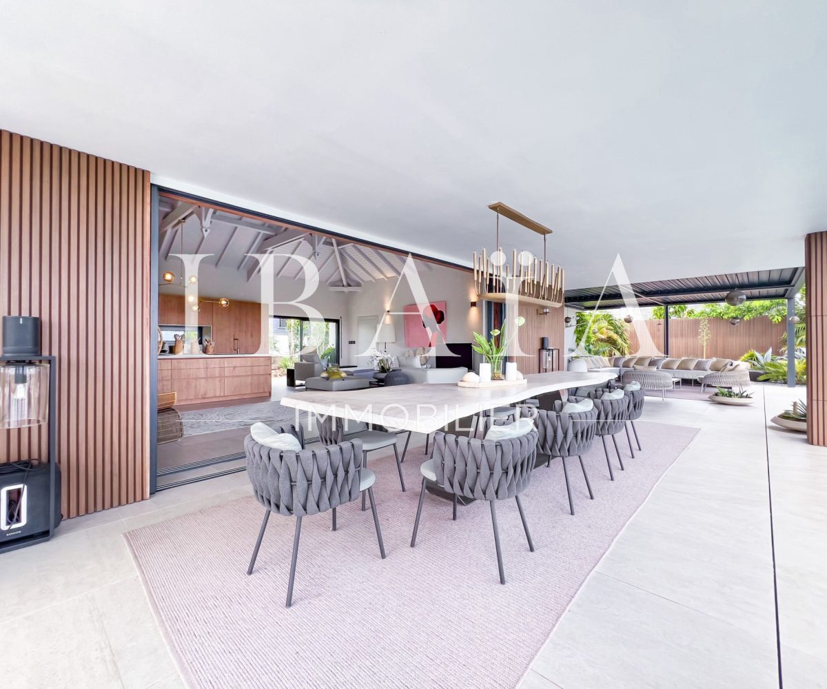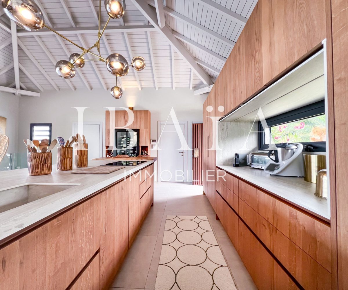 IBAÏA IMMOBILIER a le privilège de vous proposer à la vente cette somptueuse villa d’architecte d’environ 270 mètres carrés, vendue entièrement meublée, et bénéficiant d’une vue imprenable sur la mer et un environnement verdoyant.