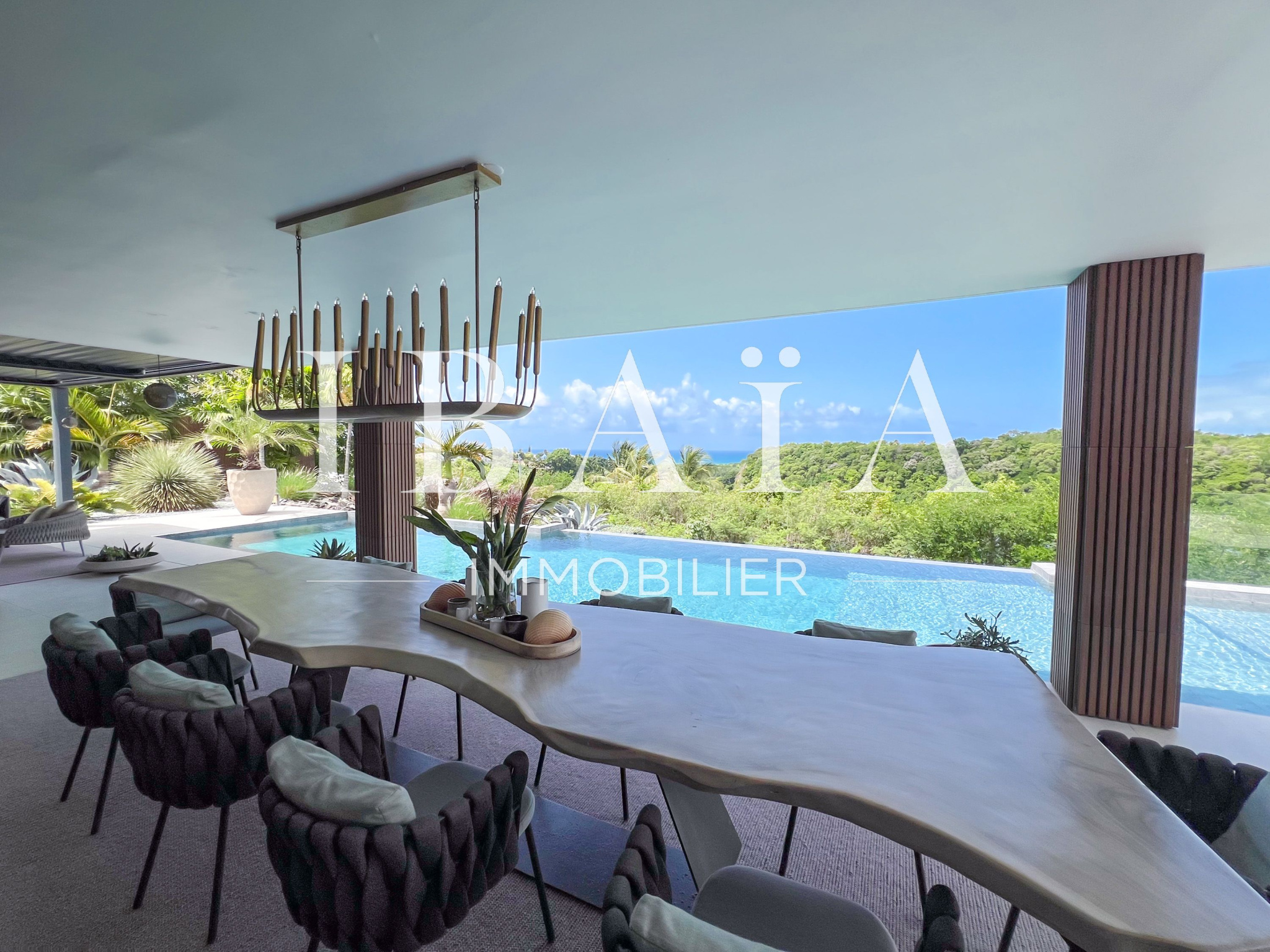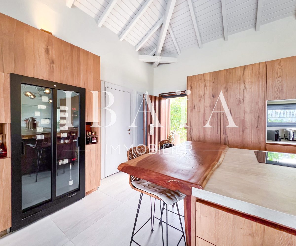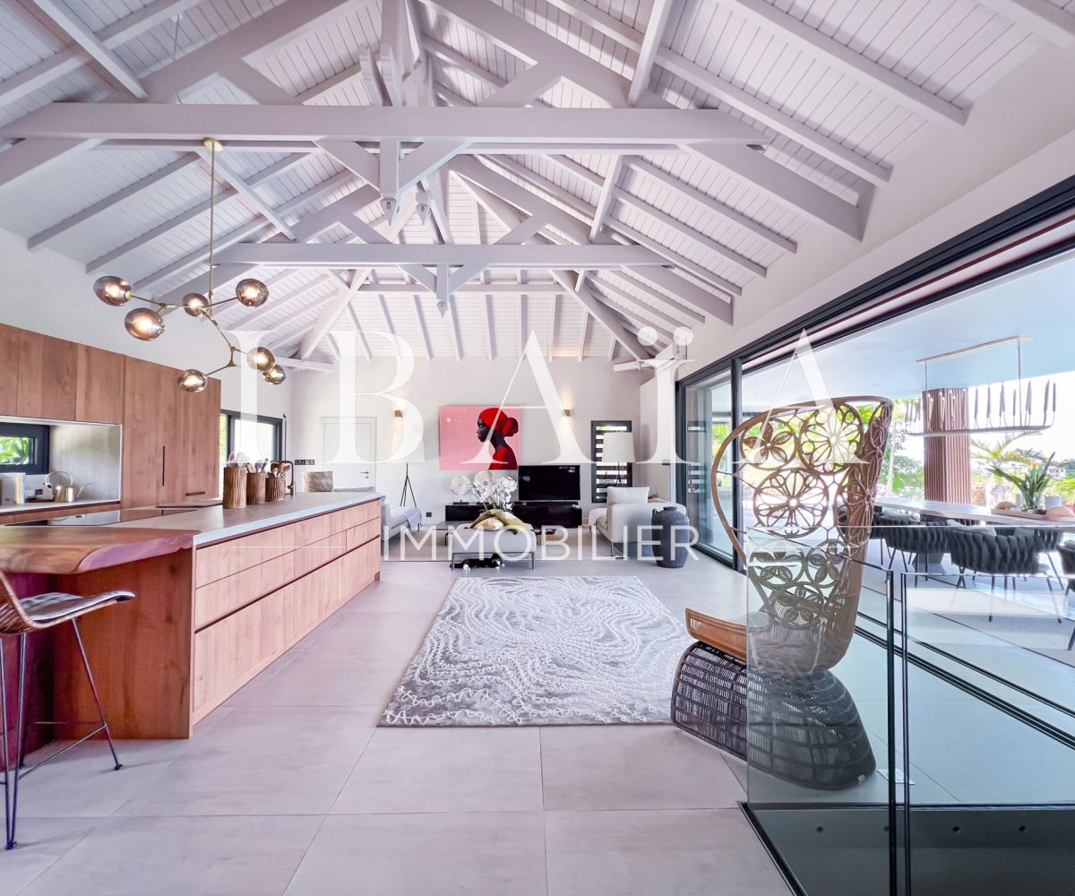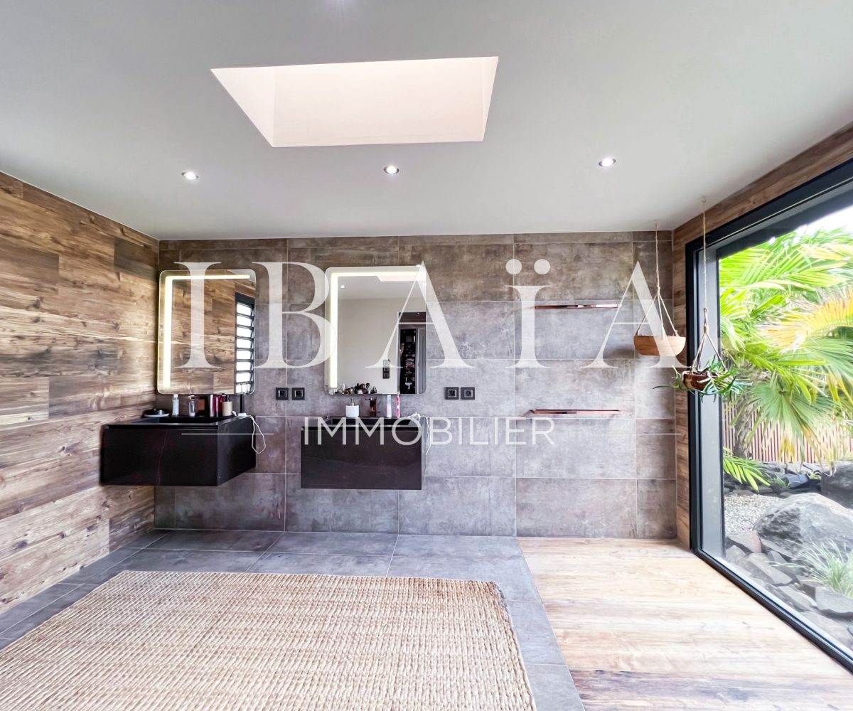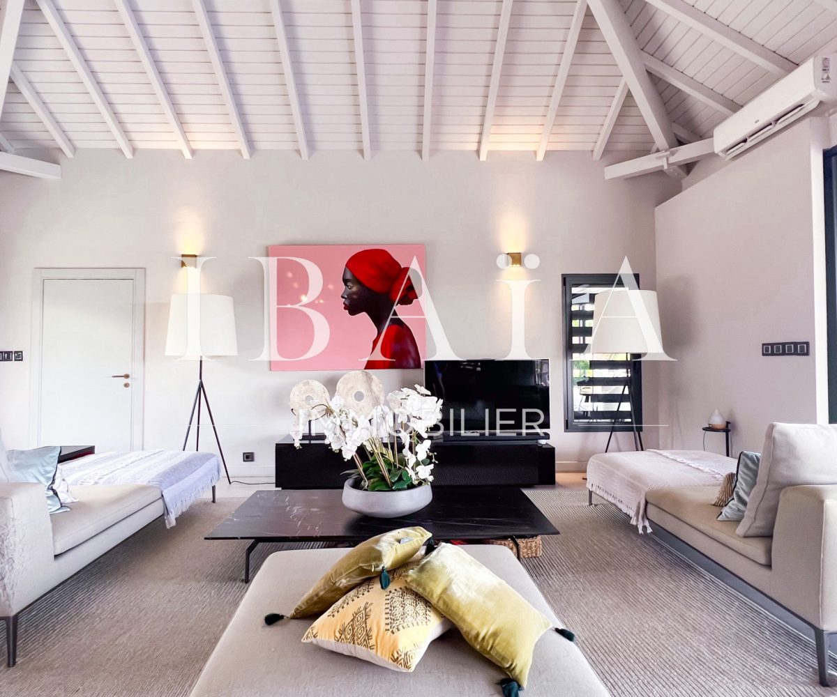 IBAÏA IMMOBILIER a le privilège de vous proposer à la vente cette somptueuse villa d’architecte d’environ 270 mètres carrés, vendue entièrement meublée, et bénéficiant d’une vue imprenable sur la mer et un environnement verdoyant.