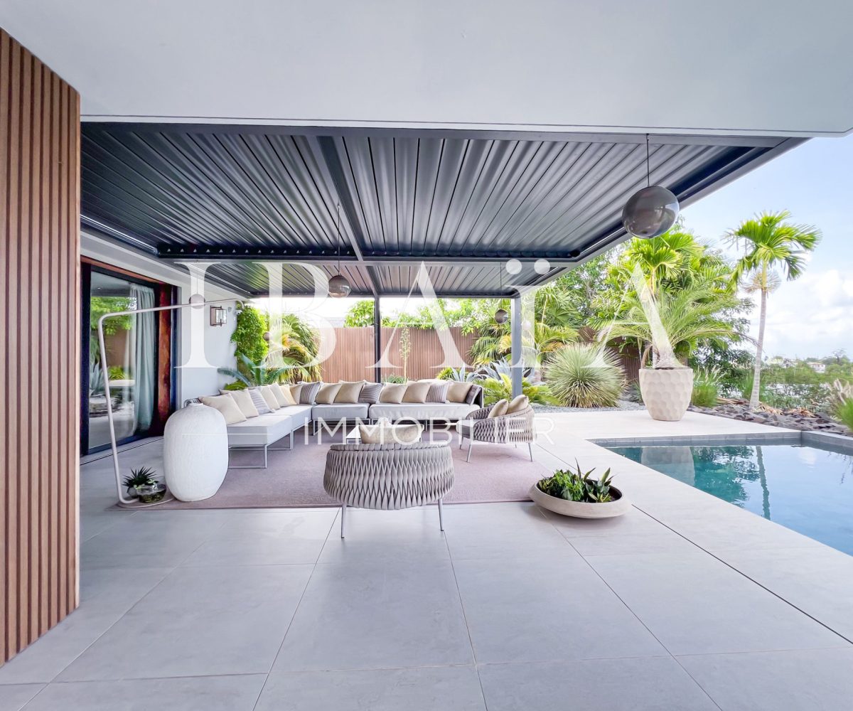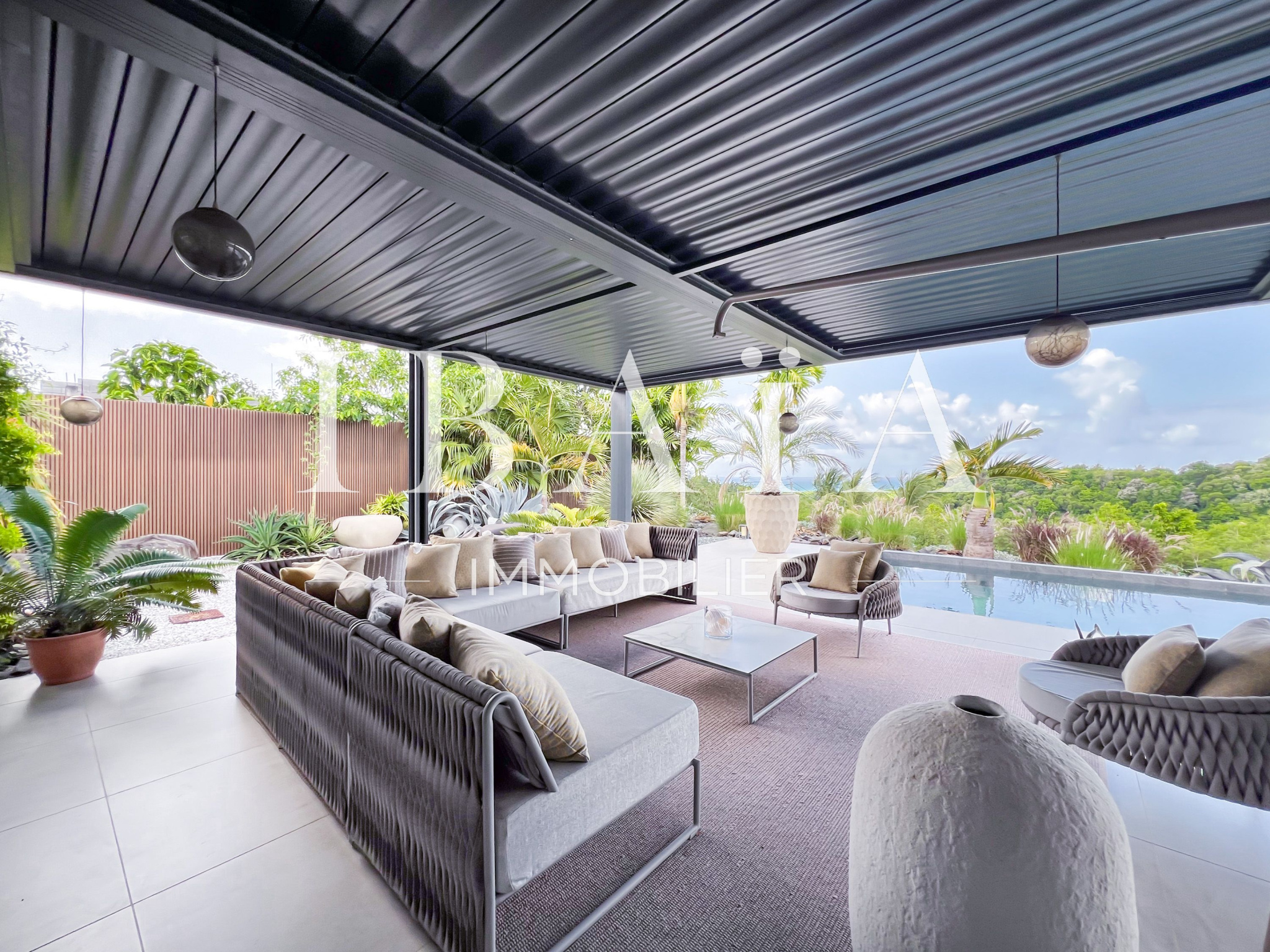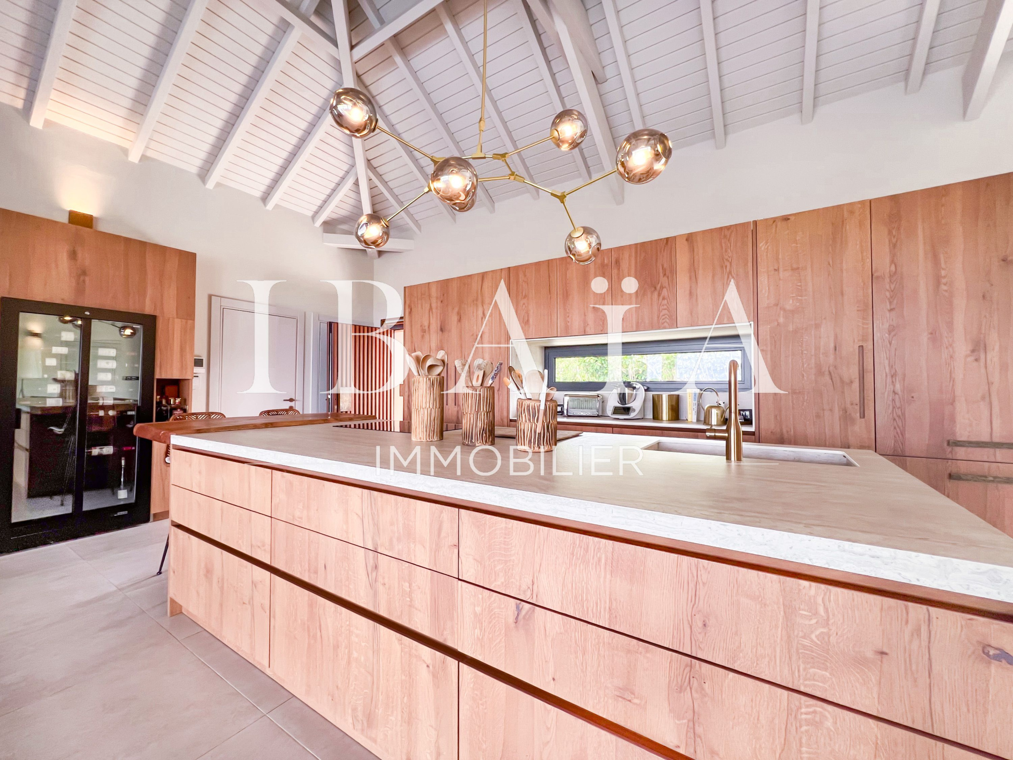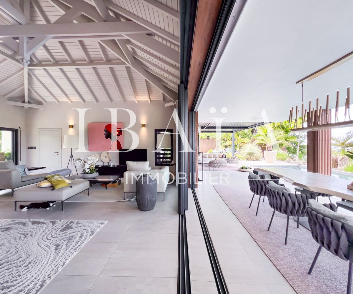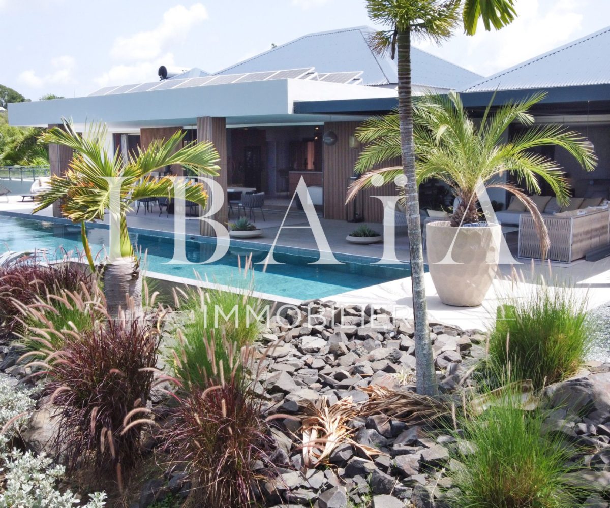 IBAÏA IMMOBILIER a le privilège de vous proposer à la vente cette somptueuse villa d’architecte d’environ 270 mètres carrés, vendue entièrement meublée, et bénéficiant d’une vue imprenable sur la mer et un environnement verdoyant.