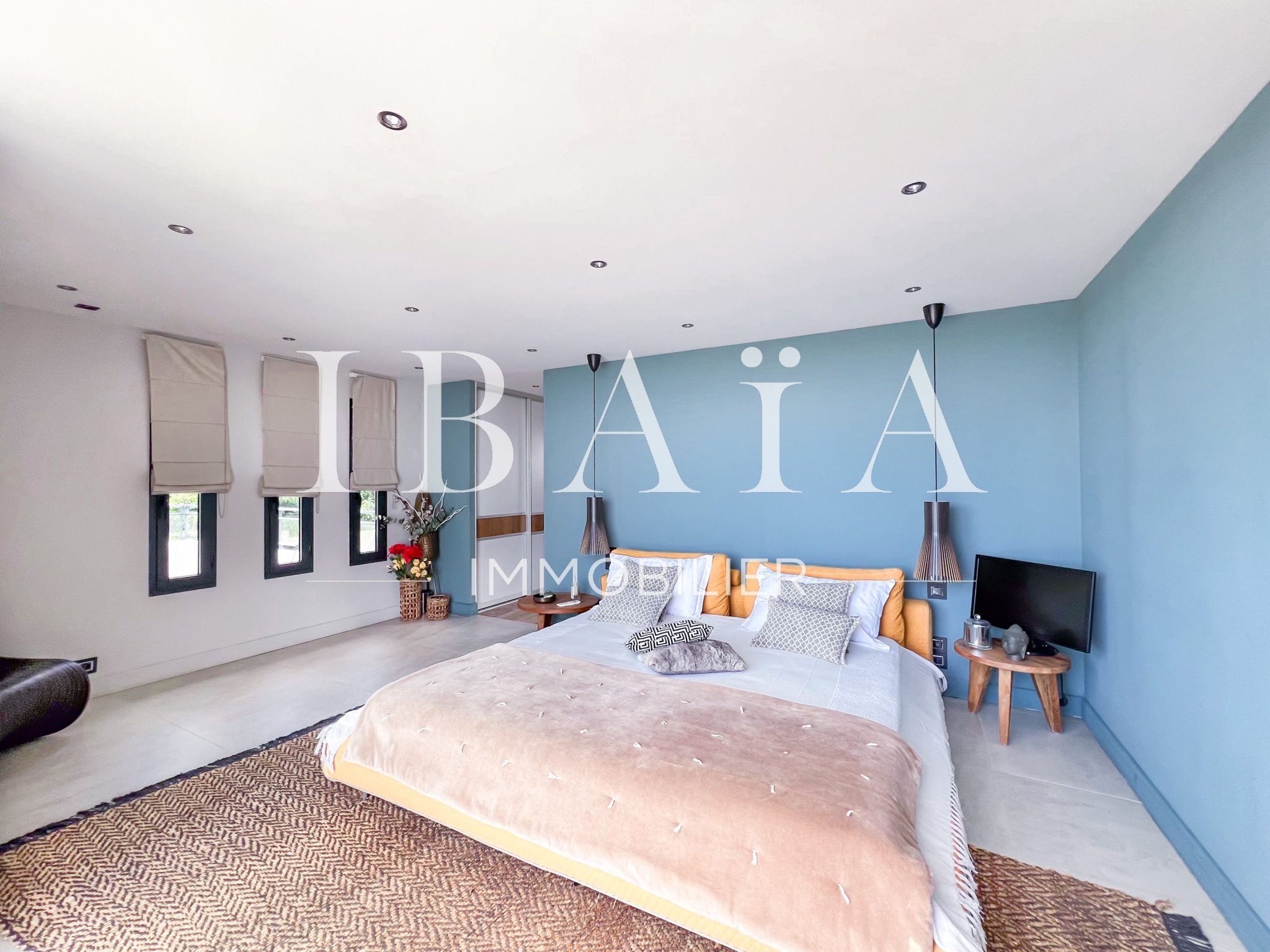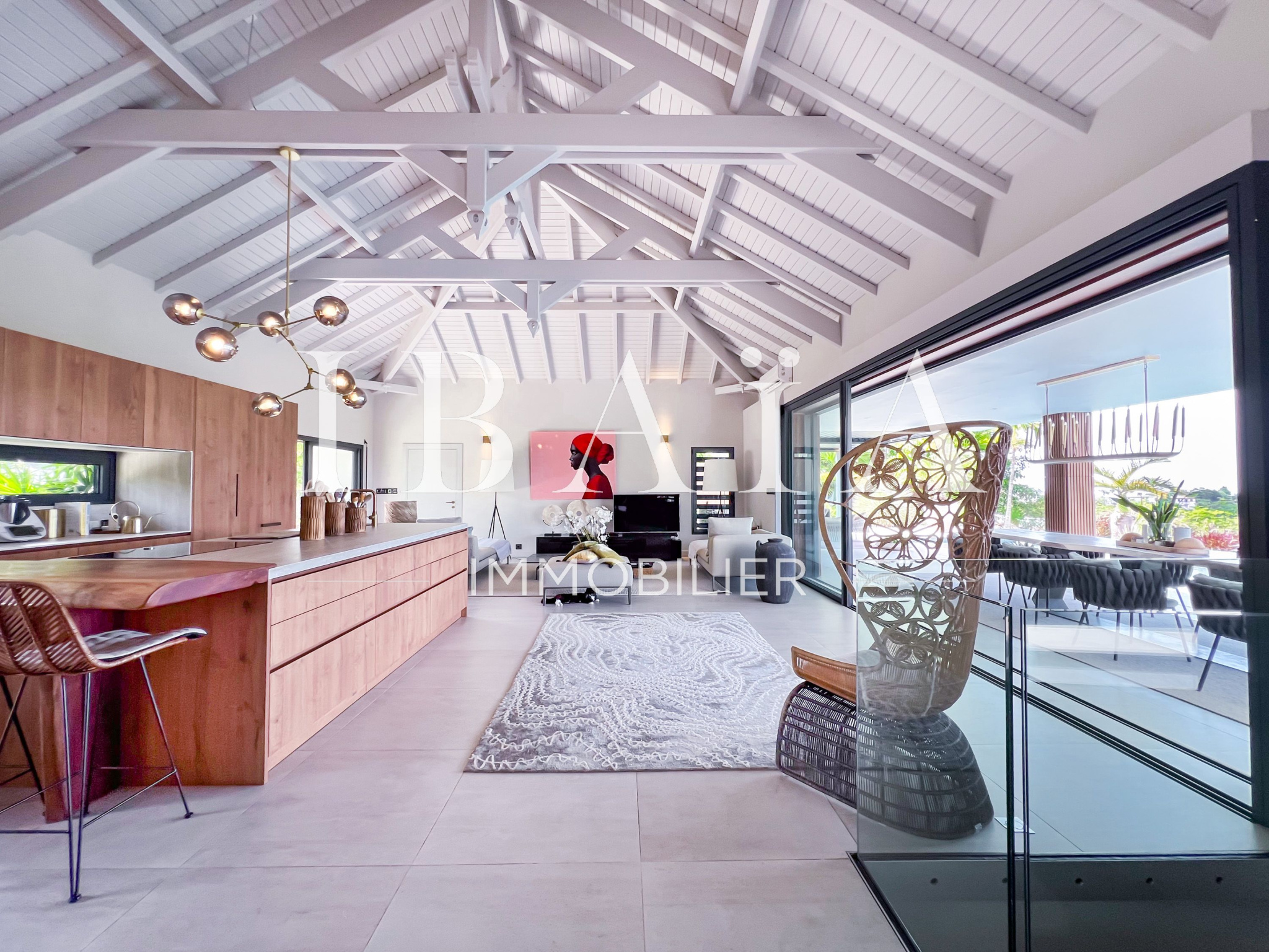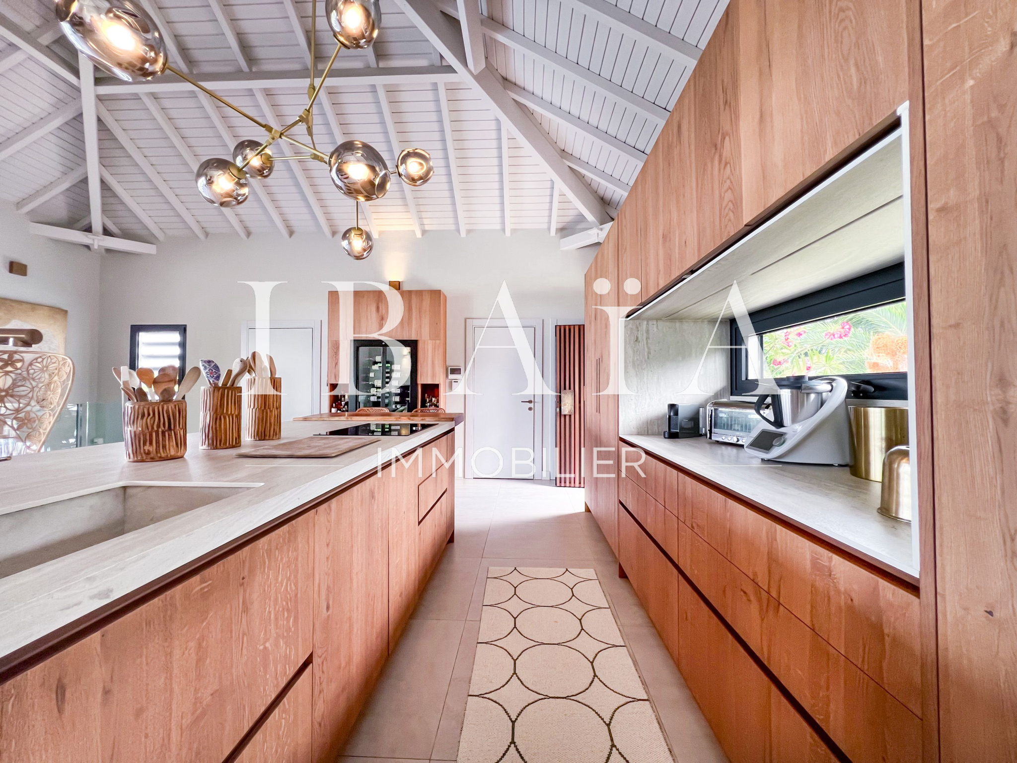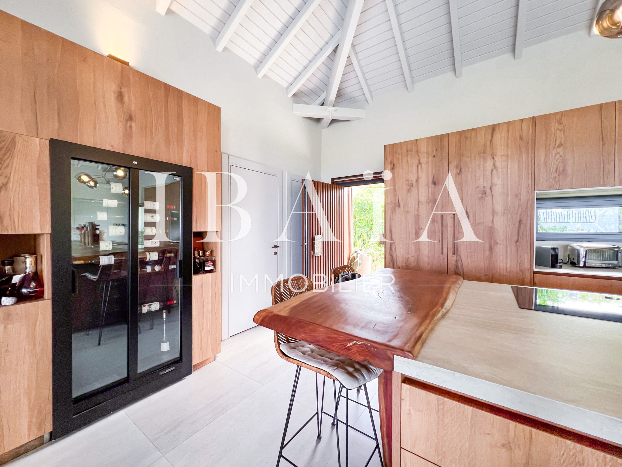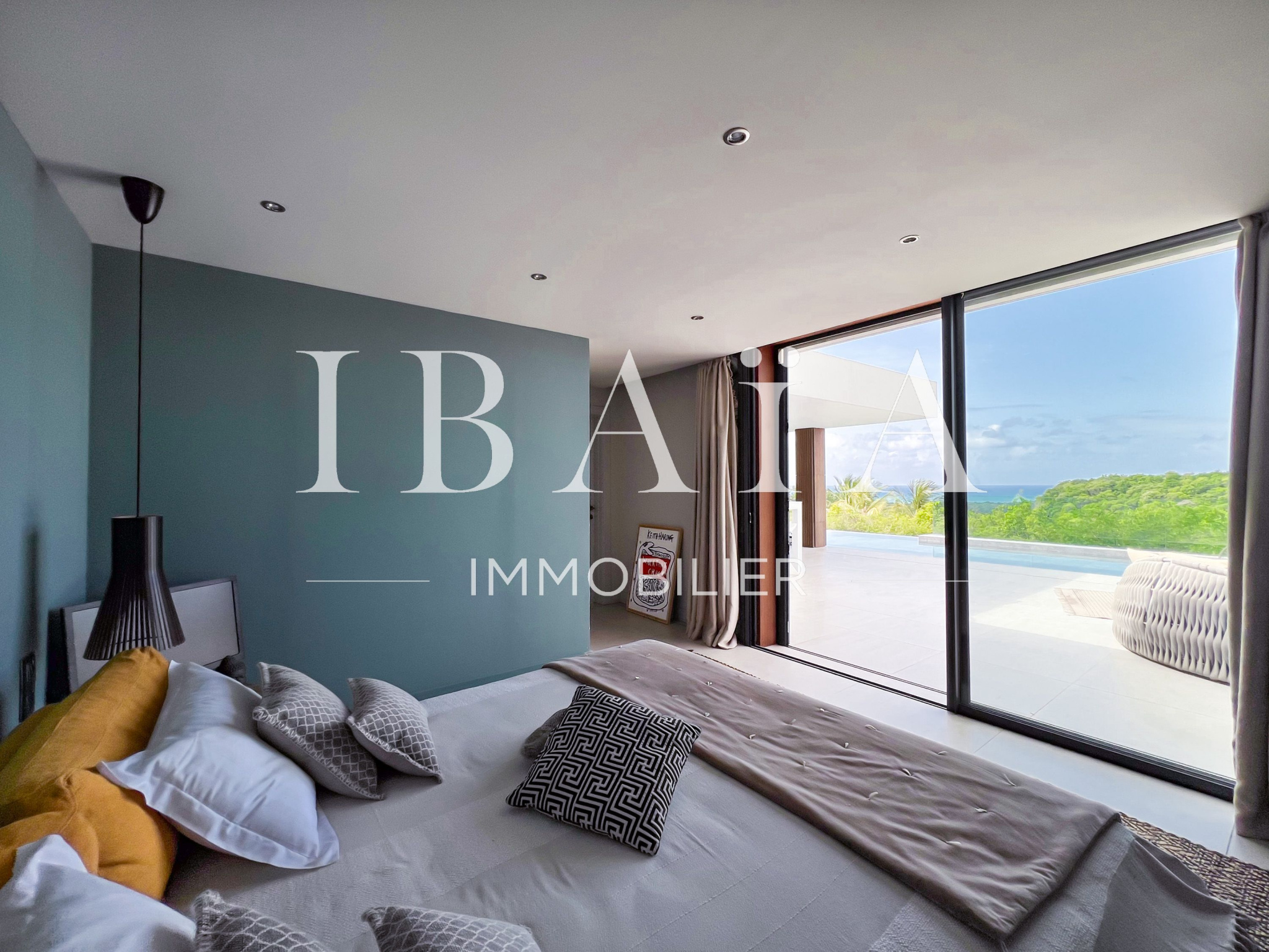 IBAÏA IMMOBILIER a le privilège de vous proposer à la vente cette somptueuse villa d’architecte d’environ 270 mètres carrés, vendue entièrement meublée, et bénéficiant d’une vue imprenable sur la mer et un environnement verdoyant.