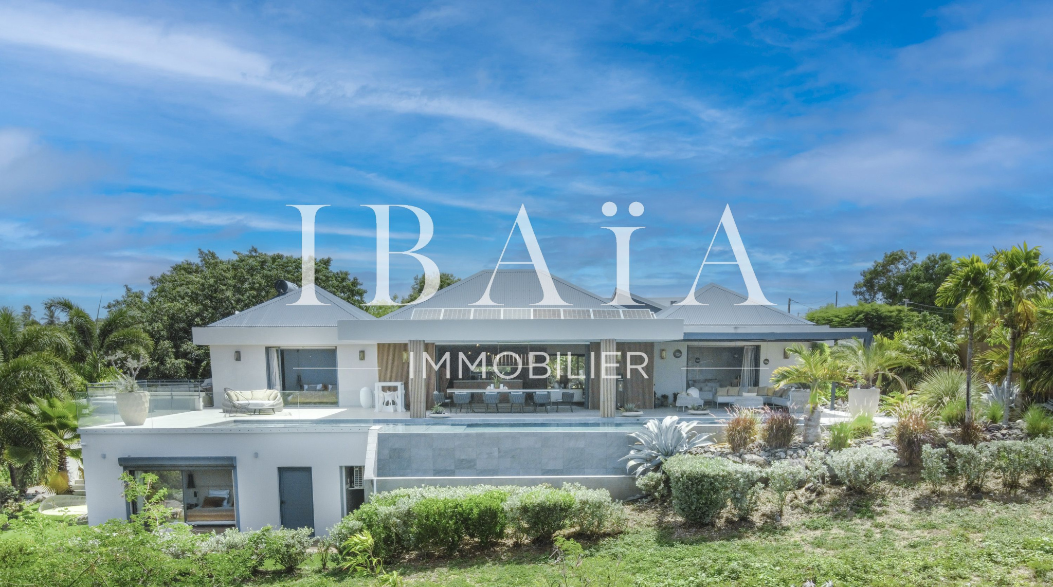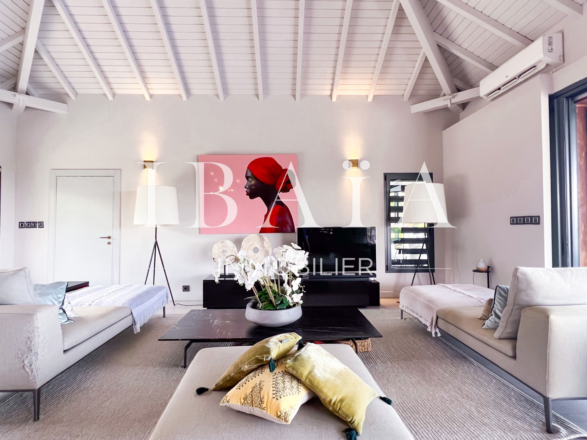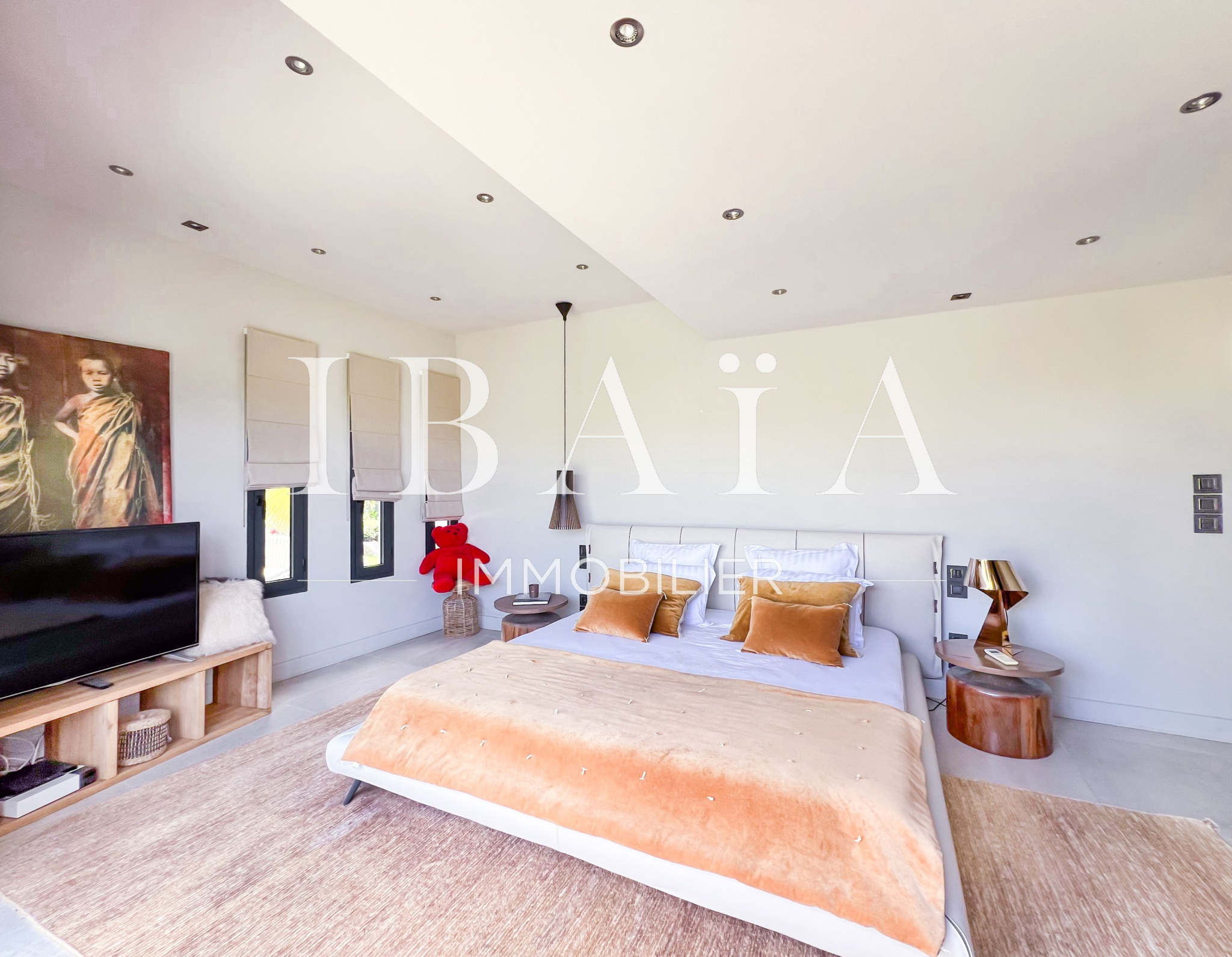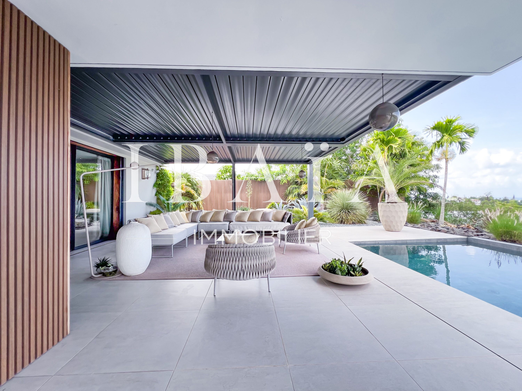 IBAÏA IMMOBILIER a le privilège de vous proposer à la vente cette somptueuse villa d’architecte d’environ 270 mètres carrés, vendue entièrement meublée, et bénéficiant d’une vue imprenable sur la mer et un environnement verdoyant.