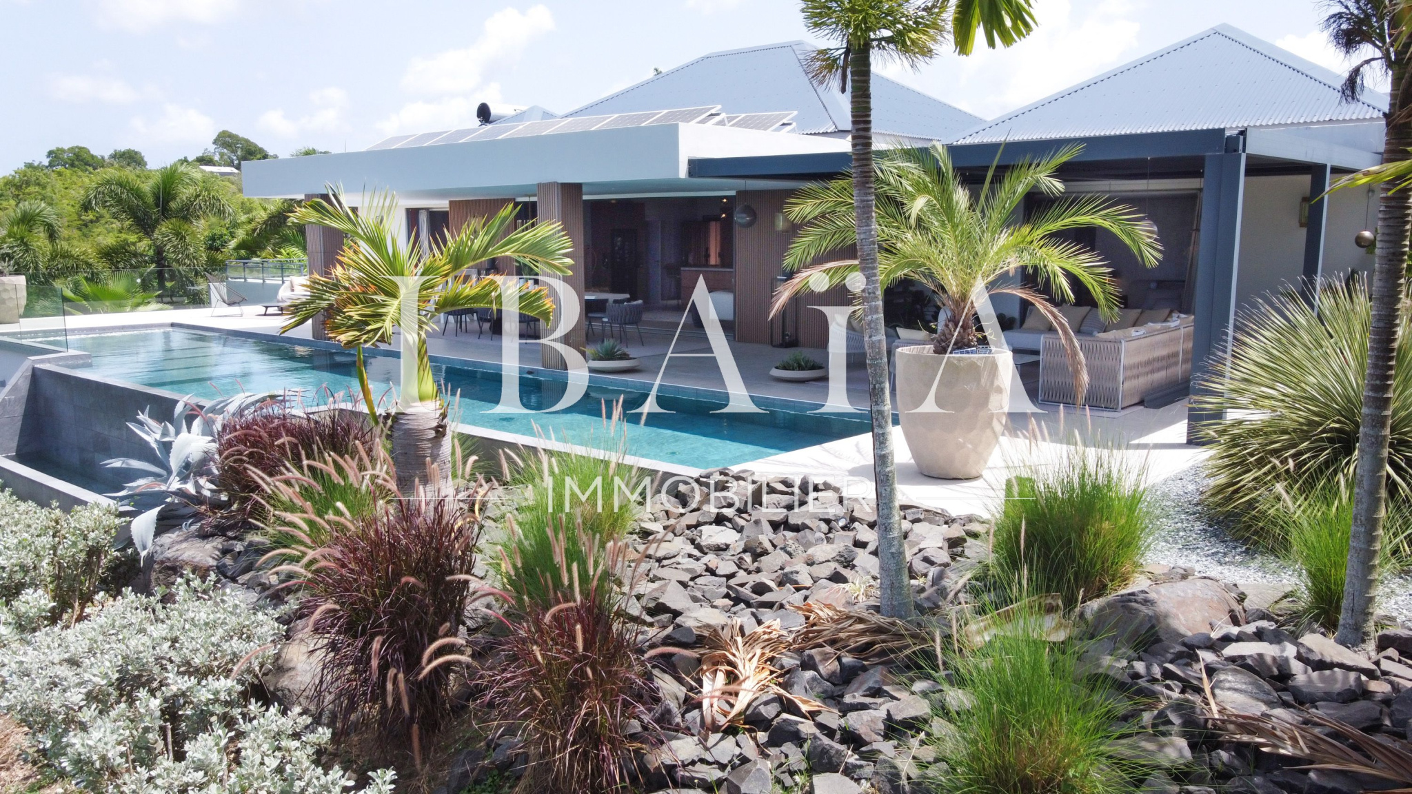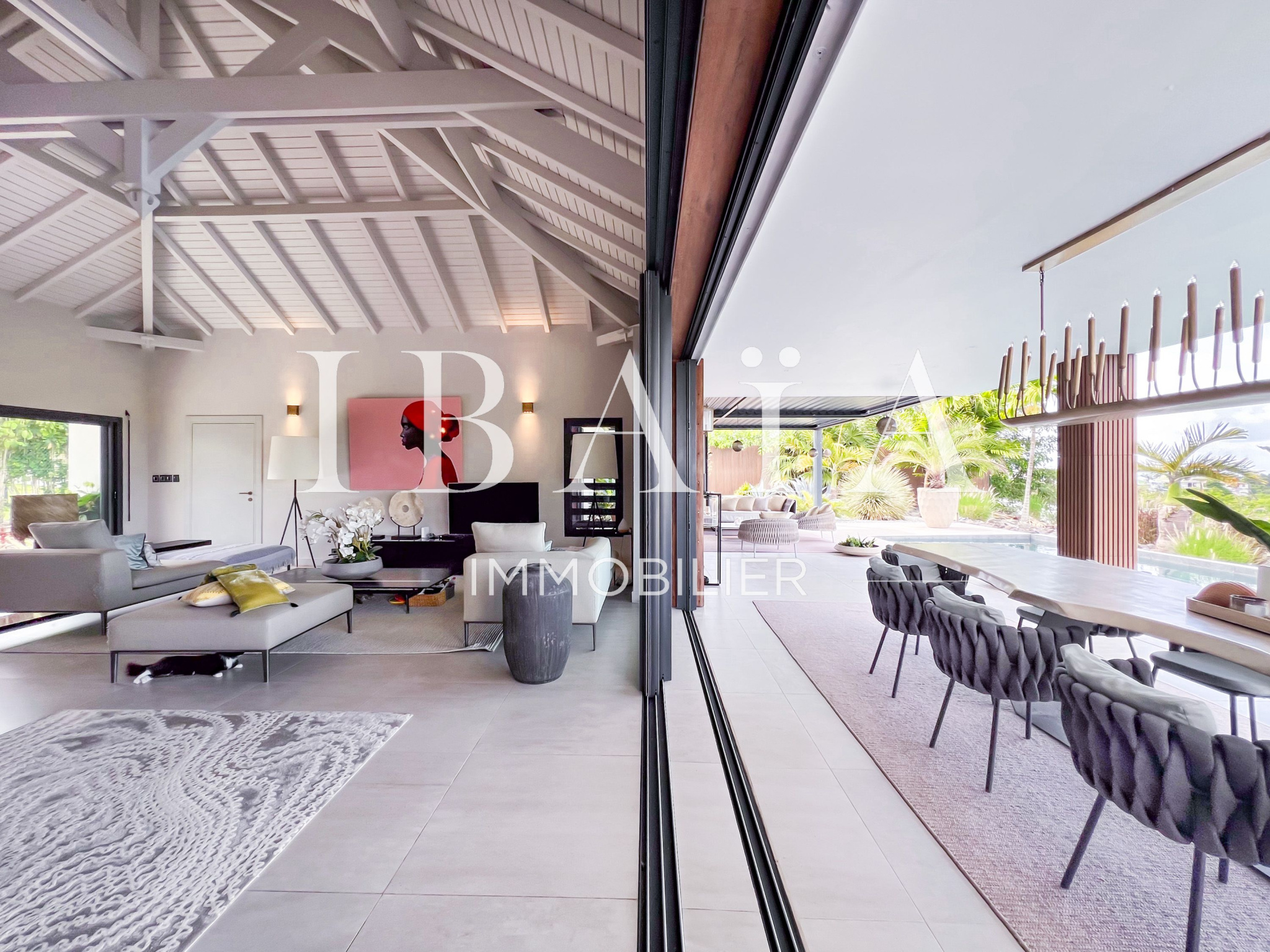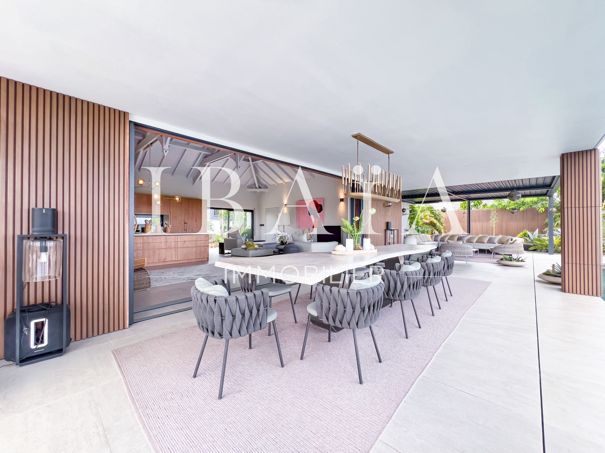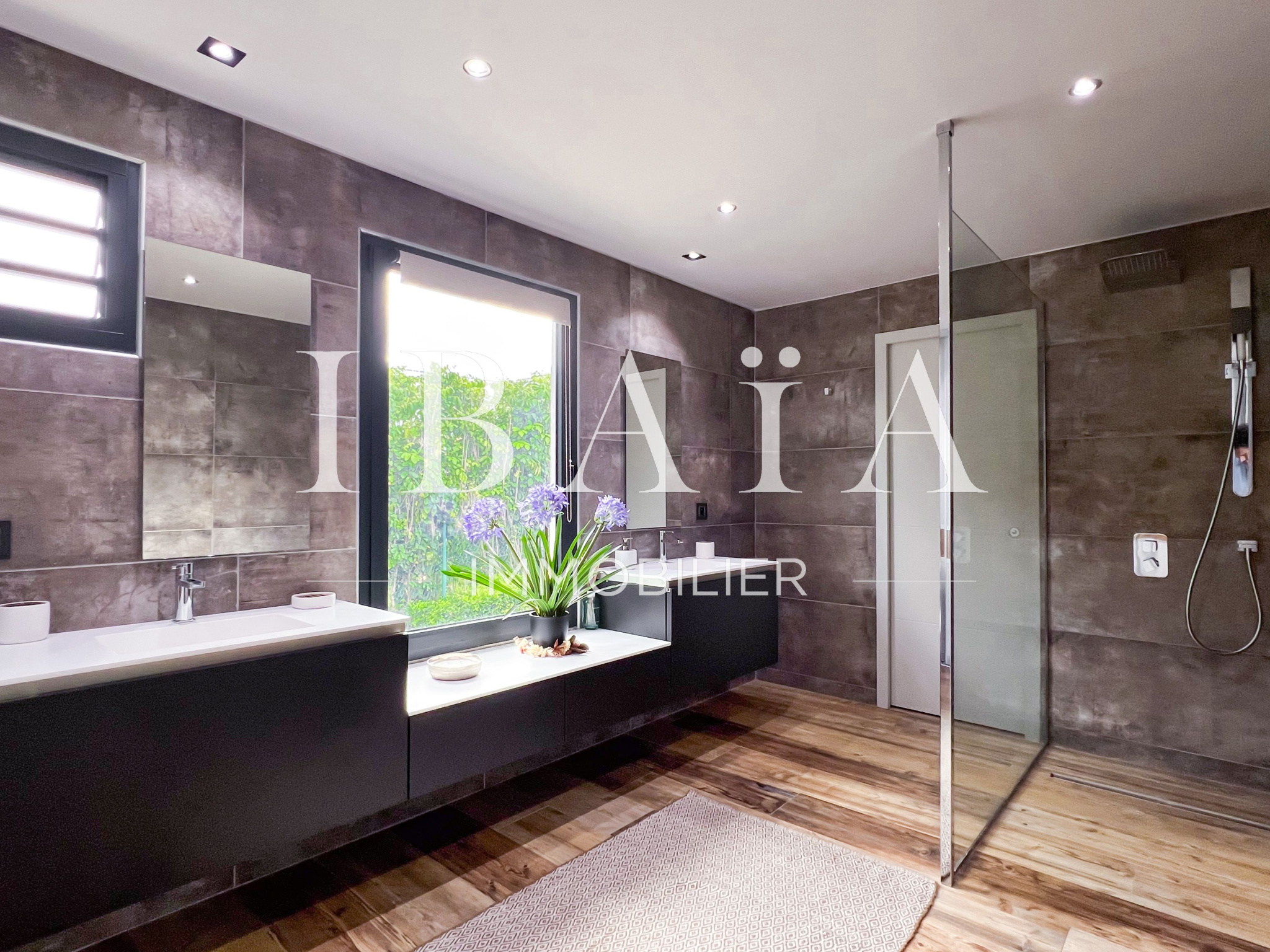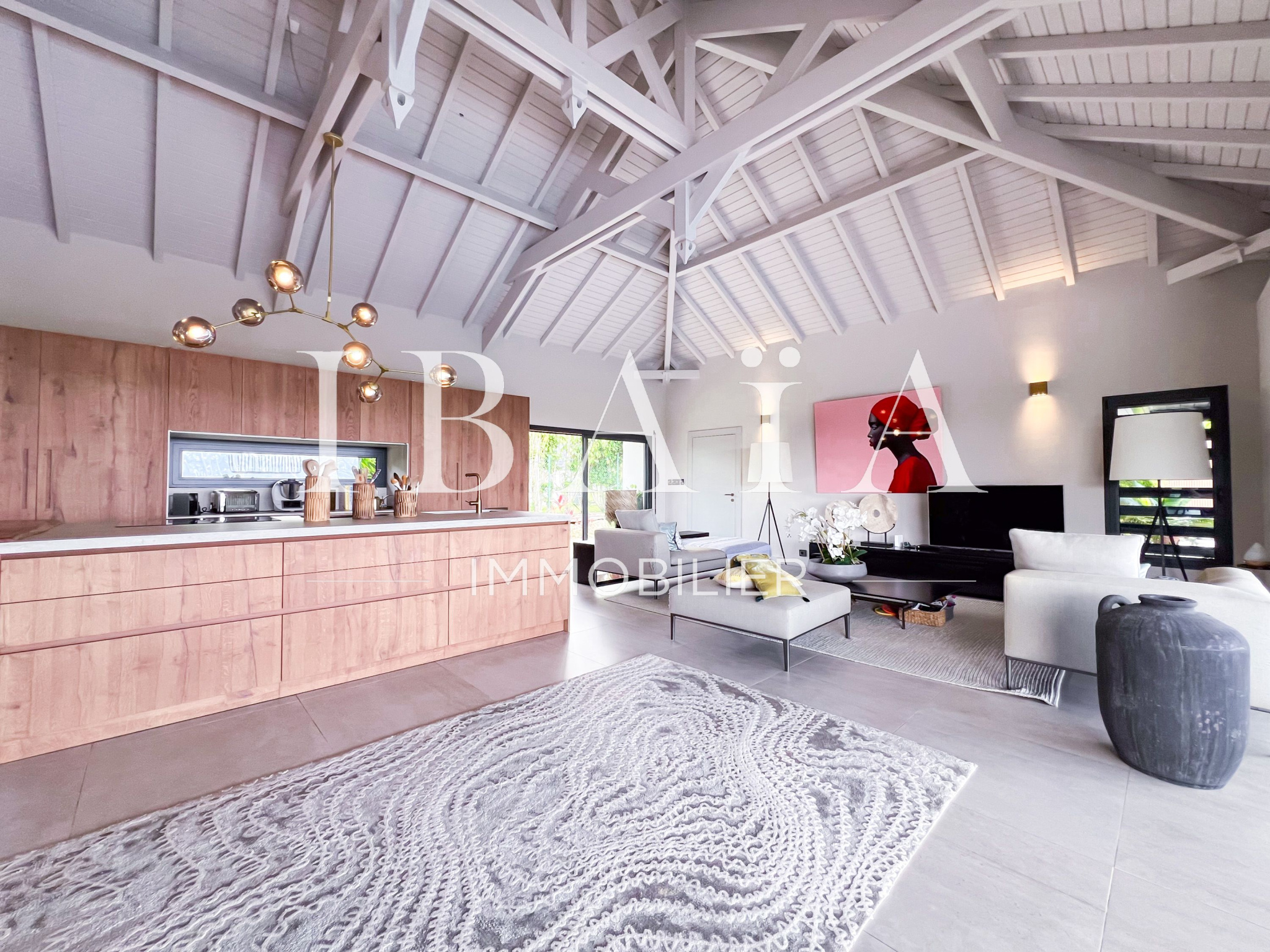 IBAÏA IMMOBILIER a le privilège de vous proposer à la vente cette somptueuse villa d’architecte d’environ 270 mètres carrés, vendue entièrement meublée, et bénéficiant d’une vue imprenable sur la mer et un environnement verdoyant.