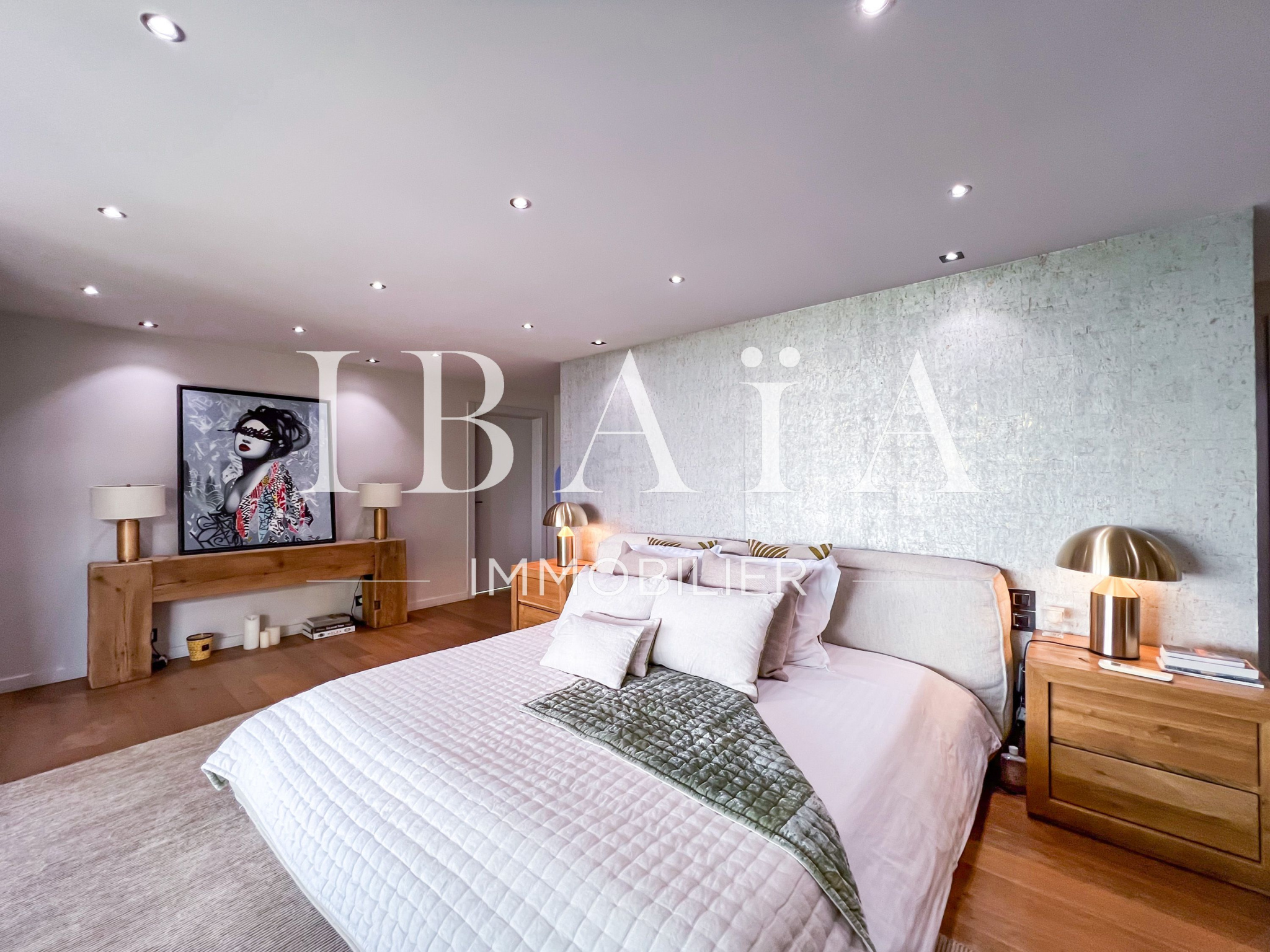 La suite principale, véritable havre de paix, est quant à elle équipée d’un dressing sur-mesure qui ne manquera pas de séduire les amateurs d’élégance et de confort.