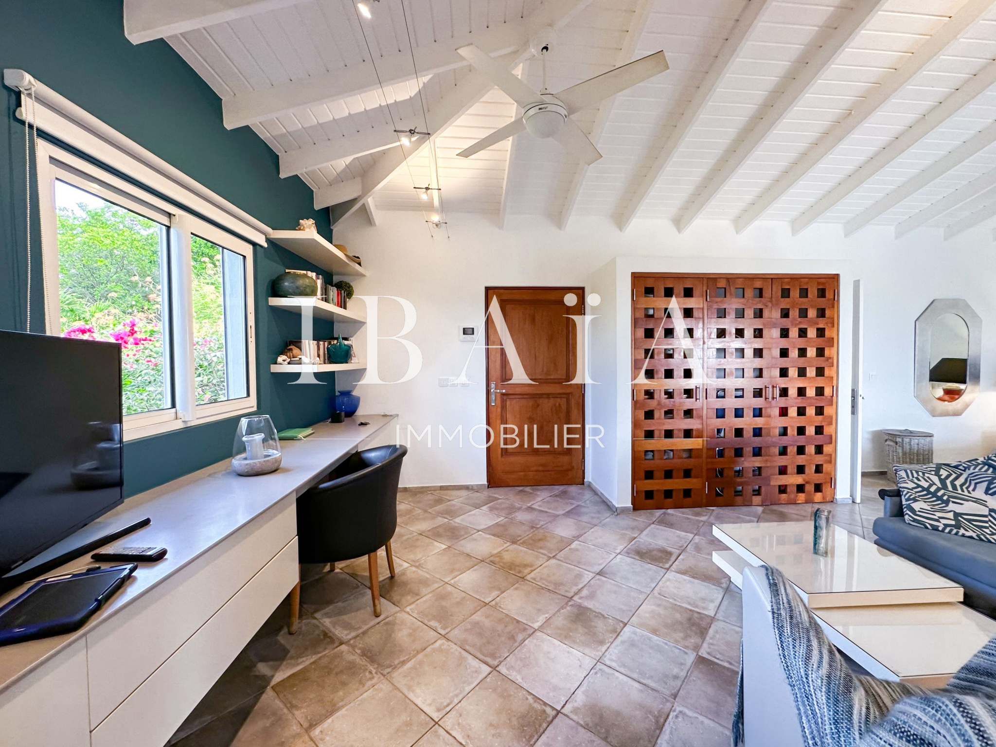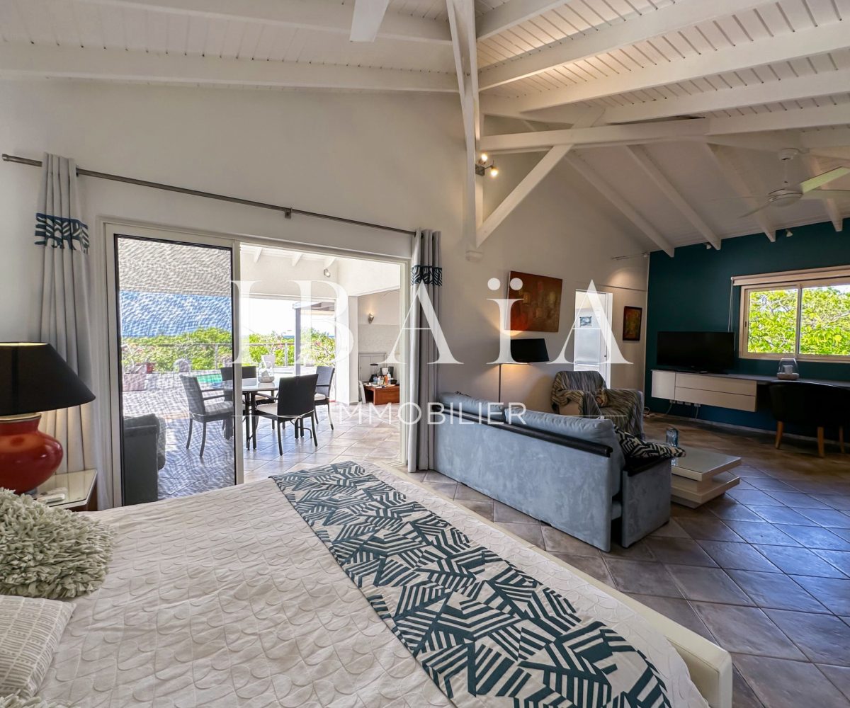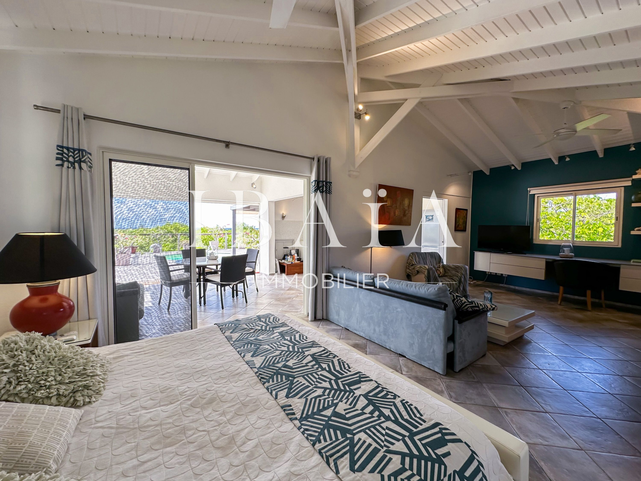 La master bedroom, majestueuse avec ses 63 m2, offre un cadre intime et spacieux, idéal pour se ressourcer. La cuisine de 31 m2, parfaitement agencée, est un véritable lieu de vie, propice à la convivialité et à la créativité culinaire. Le double séjour de 73 m2, lumineux et aéré, invite à la détente tout en offrant une vue imprenable sur la mer et l’île de Saba.