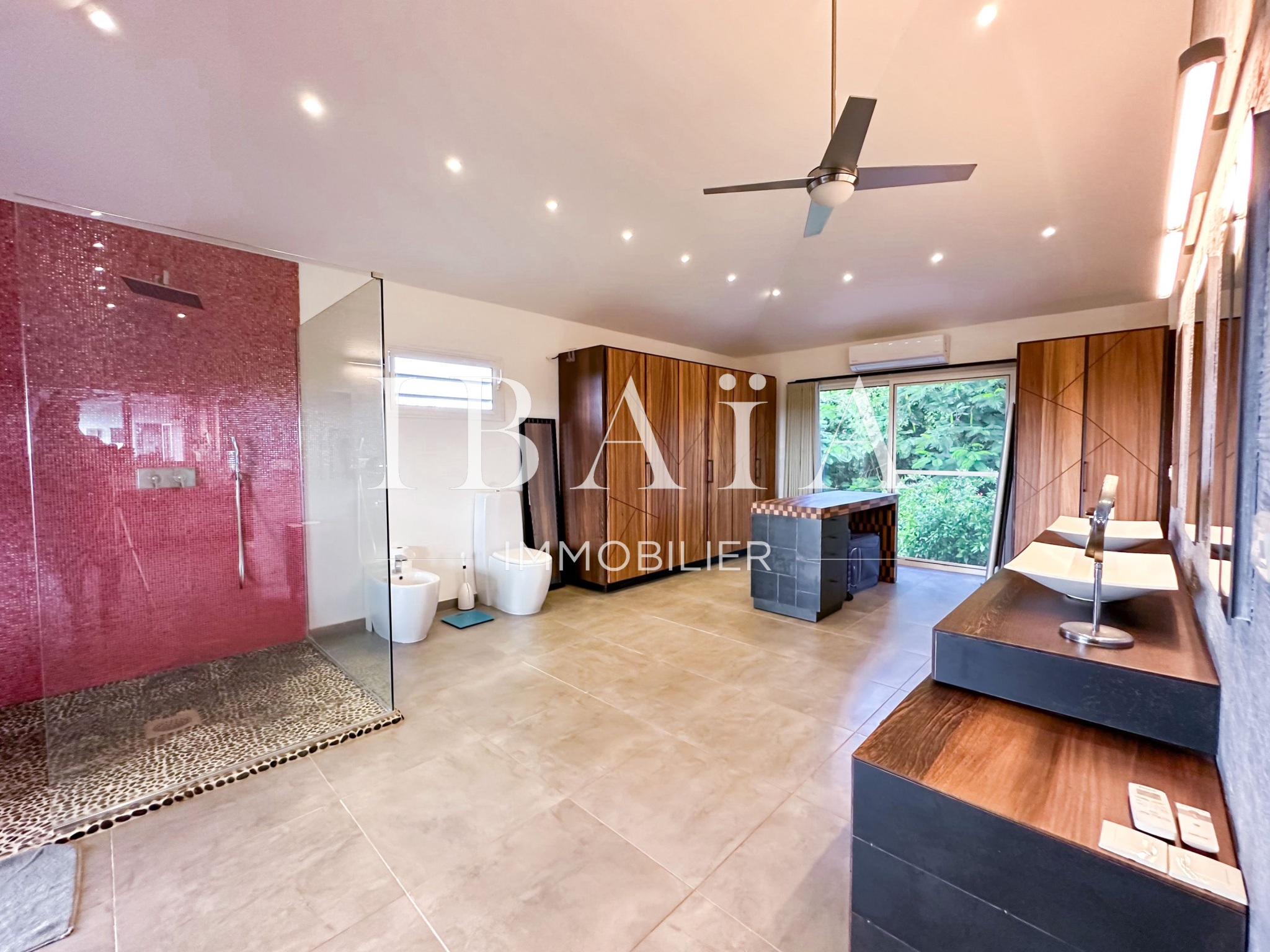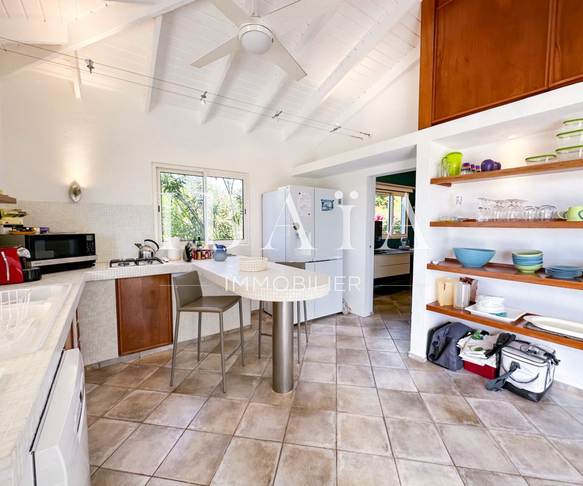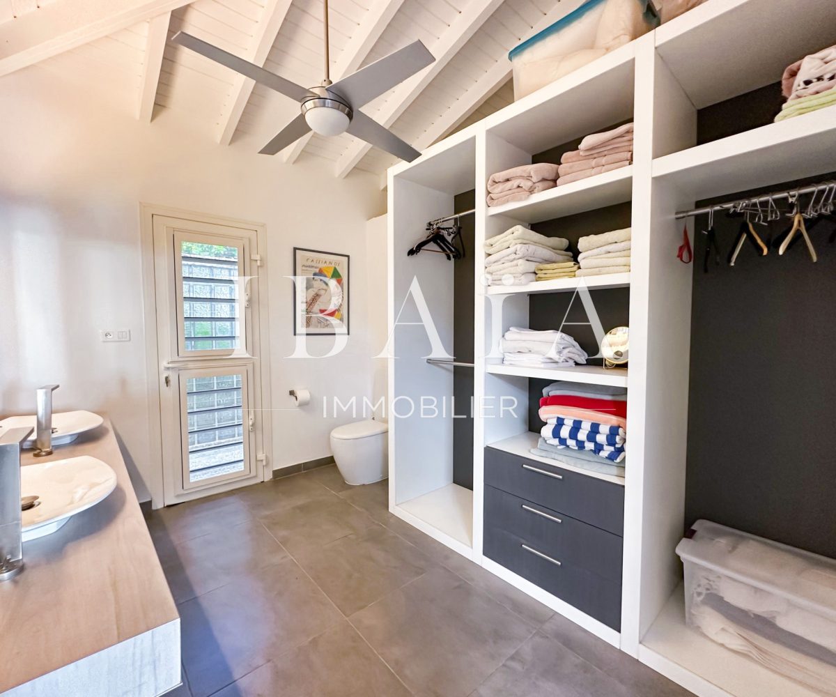 La master bedroom, majestueuse avec ses 63 m2, offre un cadre intime et spacieux, idéal pour se ressourcer. La cuisine de 31 m2, parfaitement agencée, est un véritable lieu de vie, propice à la convivialité et à la créativité culinaire. Le double séjour de 73 m2, lumineux et aéré, invite à la détente tout en offrant une vue imprenable sur la mer et l’île de Saba.