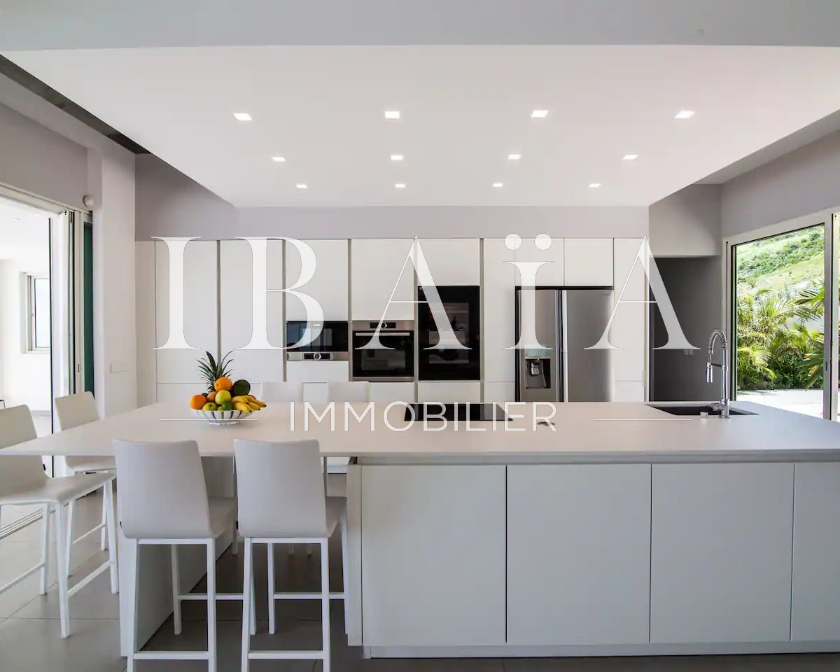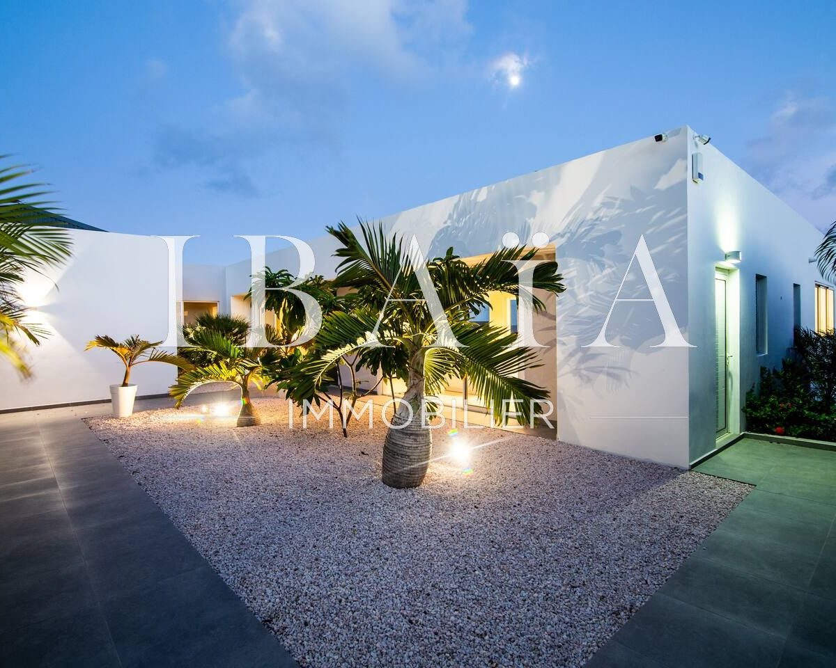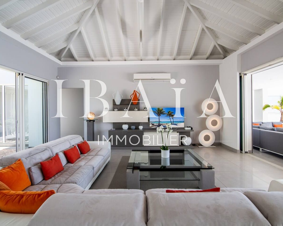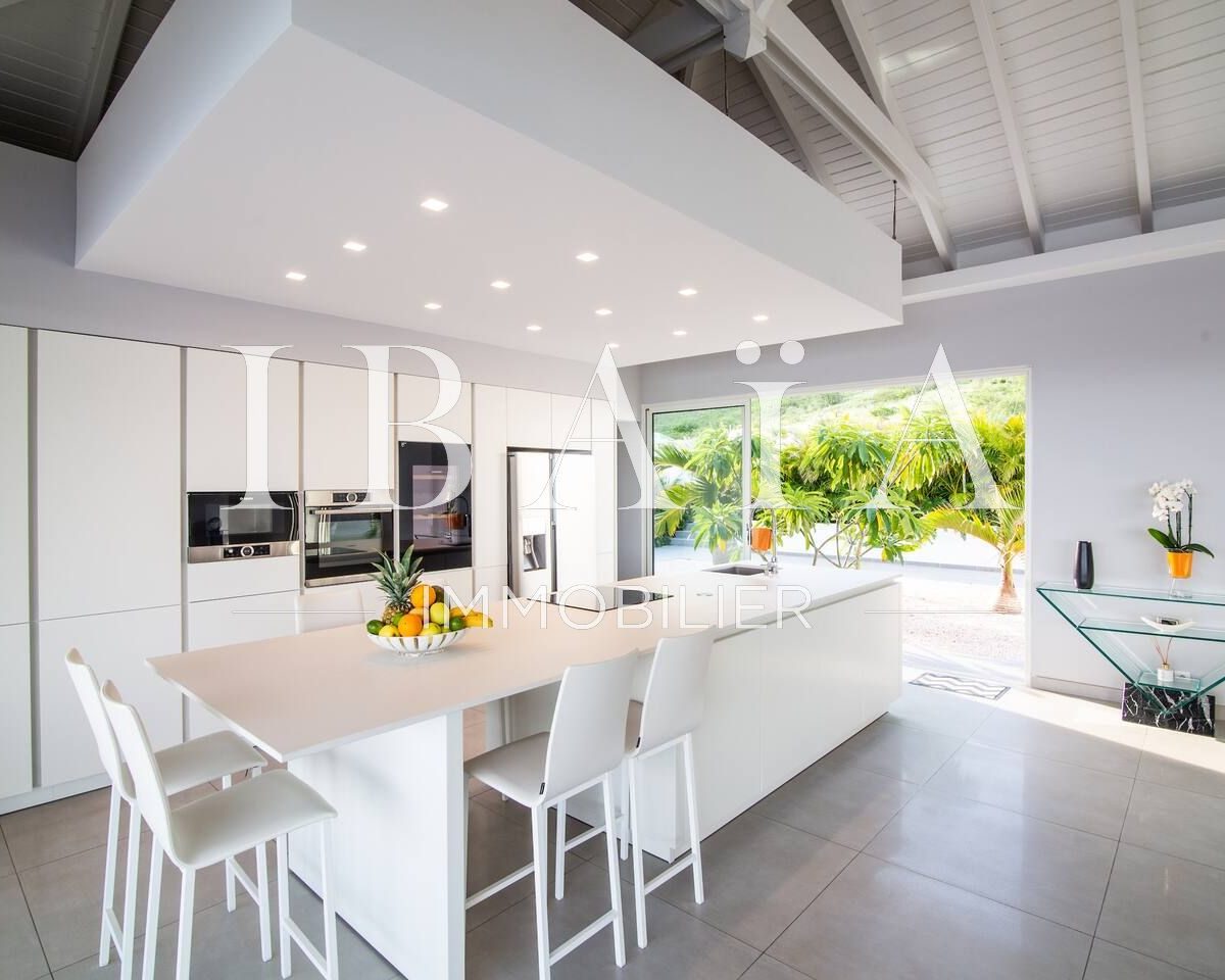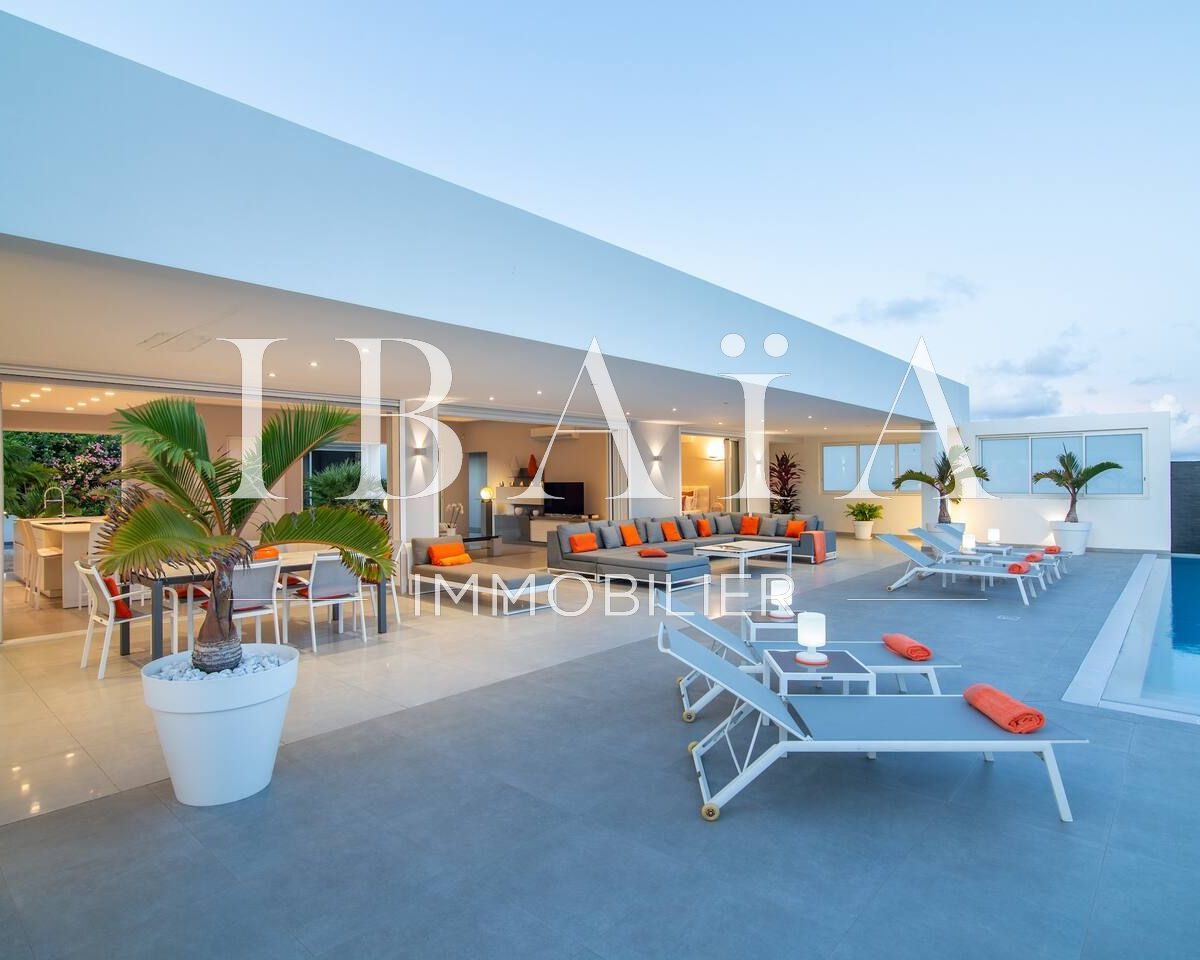 Entrez dans cette somptueuse villa contemporaine de 350 m2 et laissez-vous séduire par une vue à couper le souffle sur la mer des Caraïbes et l’île de Saint-Barthélemy.
