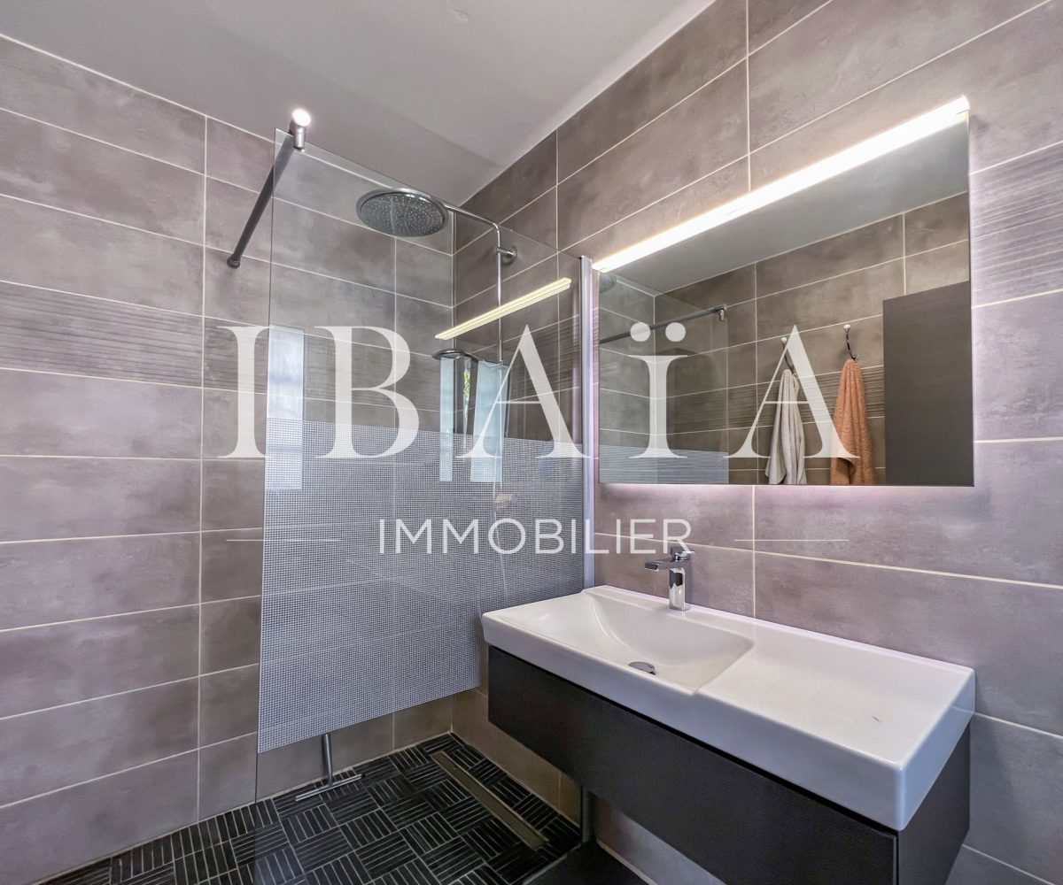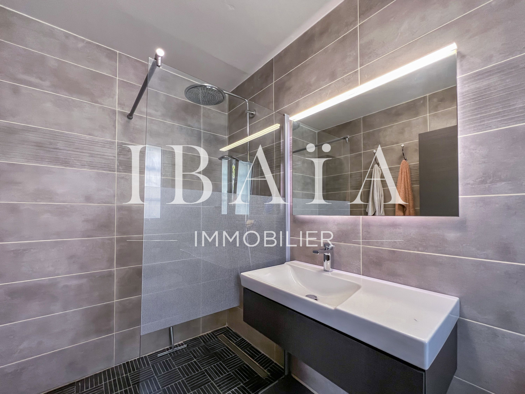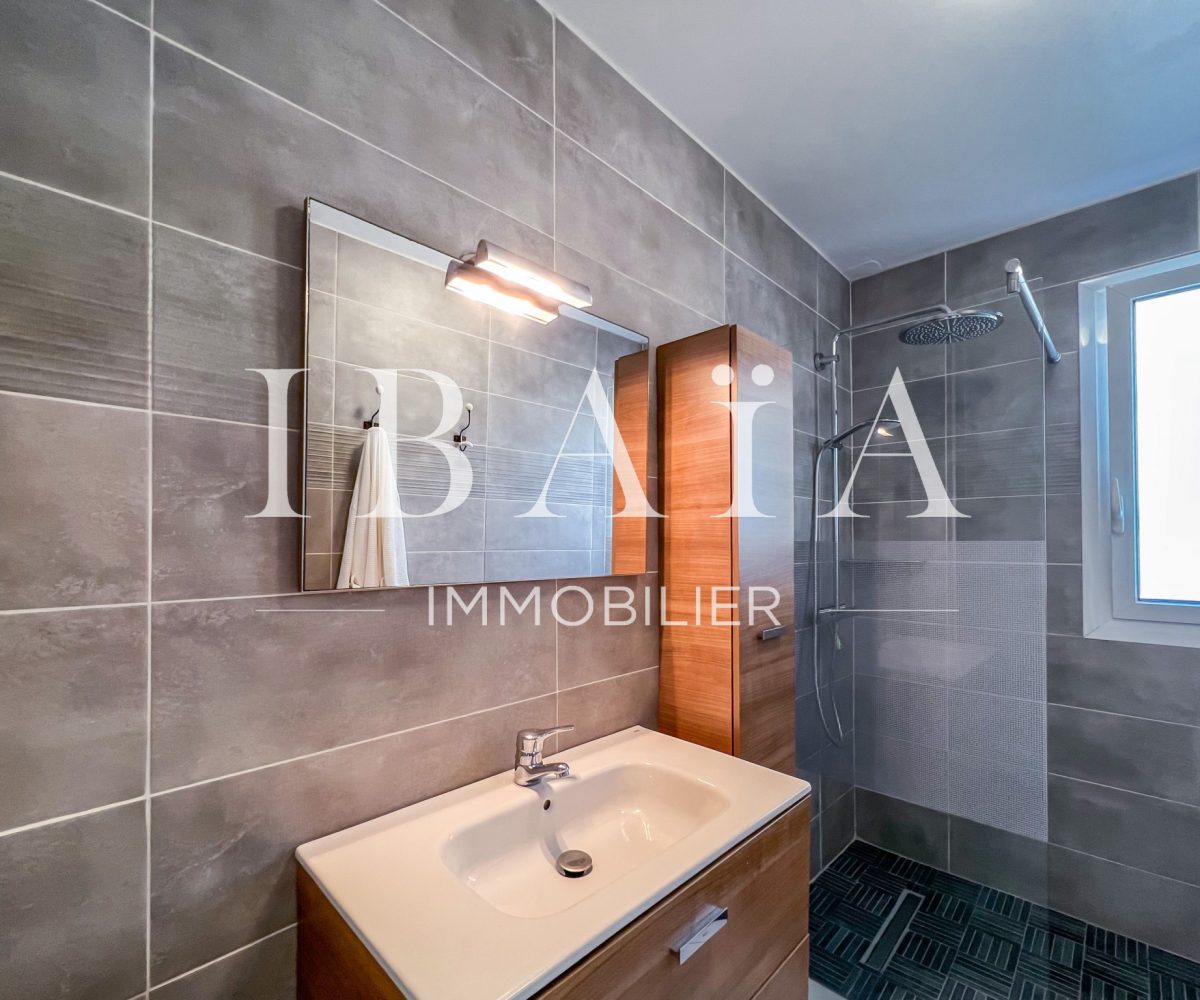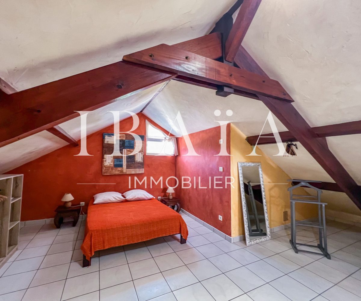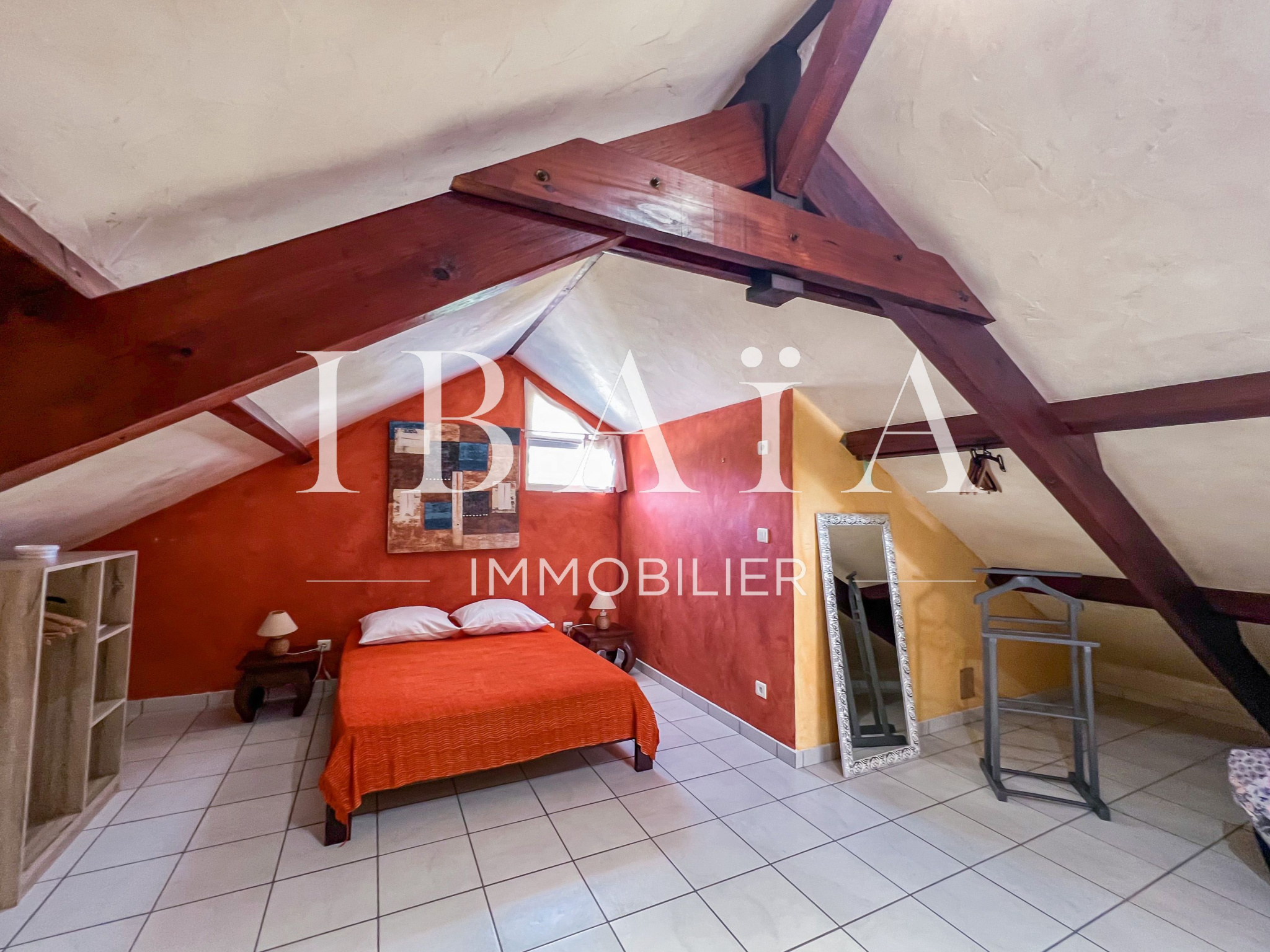 Une autre partie des combles a également été aménagée en appartement indépendant. Celui-ci bénéficie d’une entrée et d’un stationnement privatif, permettant une mise en location totalement indépendante de la villa principale. Il s’agit d’un appartement d’environ 38 m2 de surface au sol (16,17 m2 loi Carrez).