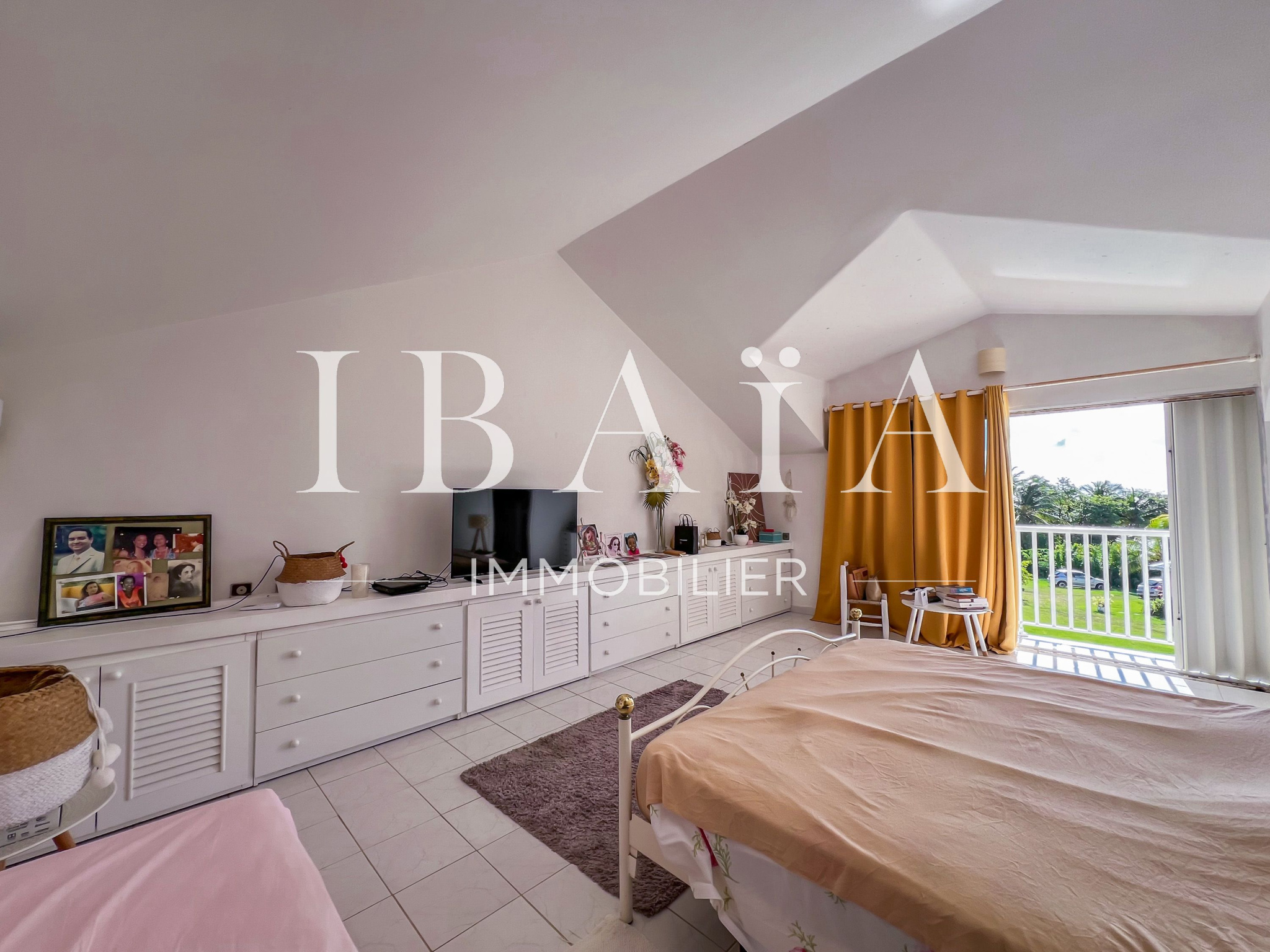 La villa se compose d’une vaste terrasse, d’une entrée, d’une cuisine équipée traversante ouverte sur un séjour partiellement cathédrale, l’ensemble donnant sur une grande piscine.